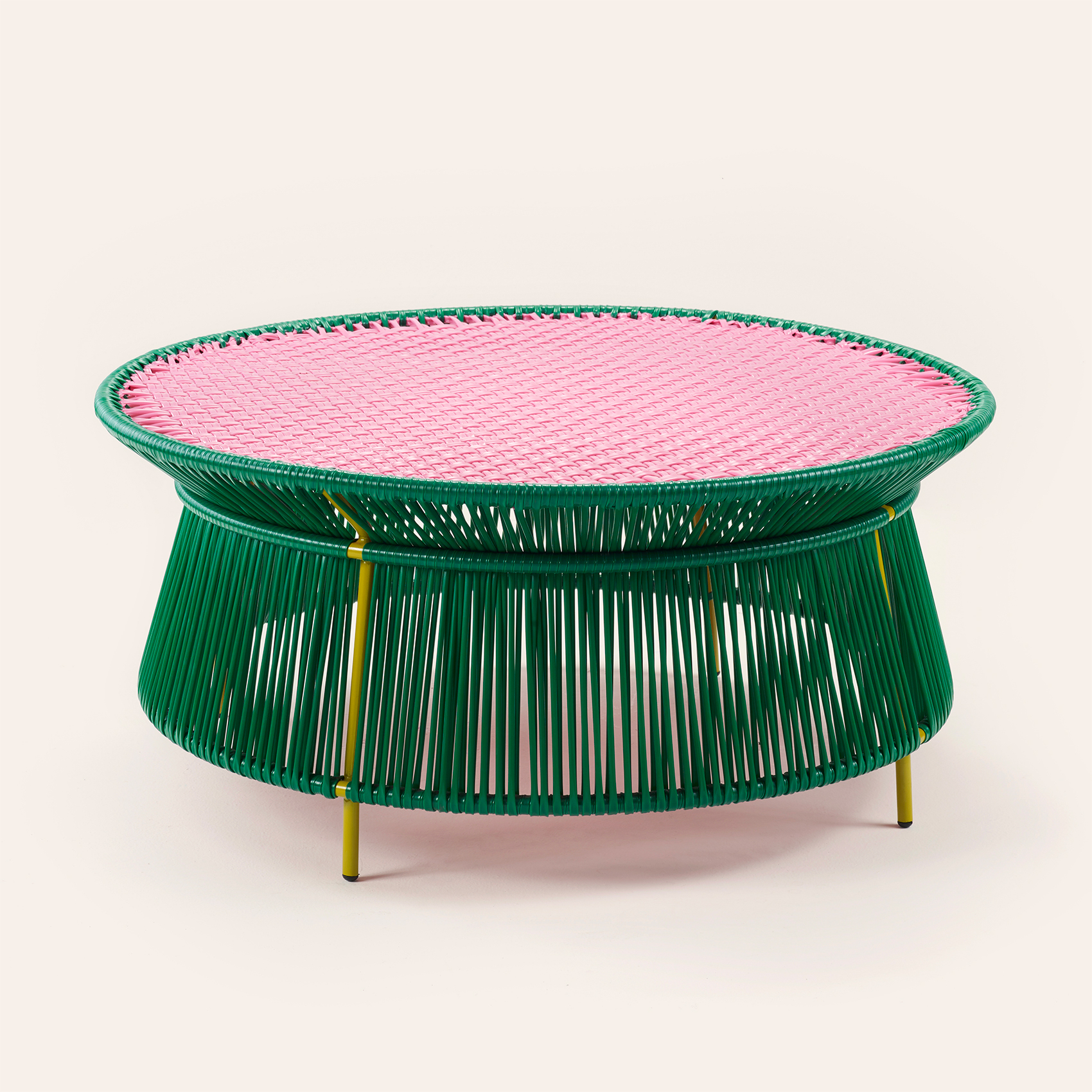 Alman tasarımcı Sebastian Herkner’in ames markası için tasarladığı bu sehpa, Karayip esintilerini renk, ritim ve ustalıkla buluşturan Caribe koleksiyonunun neşeli ve havalı oyuncularından biri. Koleksiyonun yaratım süreci, Herkner’in ames’in kurucusu Ana Maria Calderon-Kayser’le birlikte Kolombiya’ya yaptığı ilham dolu yolculukla başlıyor. Bu keşifte ülkenin sıcak ruhu, zanaat gelenekleri ve sahil yaşamının hafifliği, modern tasarımın diline dönüşüyor. Kolombiya'nın Karayip kıyılarındaki artizanlar, geri dönüştürülmüş PVC ipleri galvanizli çelik iskelet üzerine Momposino tekniğiyle örüyor; dokusunda geçmişin izi, formunda bugünün ifadesi var. Biraz özenle, uzun yıllar boyunca ilk günkü enerjisini korur. Zsa Zsa Zsu’nun renkli evreninde parıldayan bu sehpa, geleceğe miras bırakılacak ikonik bir tasarım.