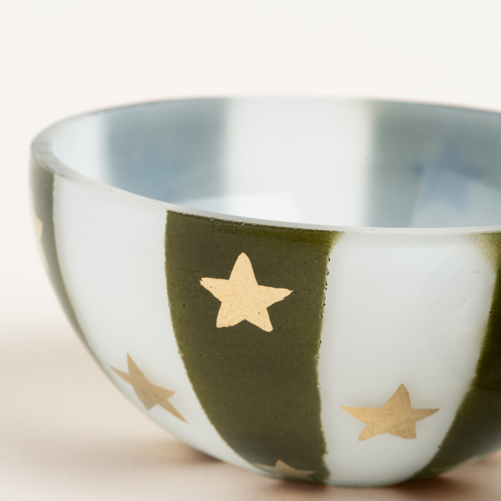 Yıldızlı göklerden ilham alan Aravali cam dekoratif obje, hayatınıza estetik bir zarafet ve özgünlük katacak. Hindistan’ın geleneksel cam işçiliğini modern bir yorumla buluşturan bu el yapımı cam tasarım, altın yıldız desenleri ve yeşilin huzur veren tonlarıyla gökyüzünün sonsuz derinliğini yaşam alanlarınıza taşıyor. El yapımı camın özgünlüğünü taşıyan ve detaylı el boyamasıyla hazırlanan obje, hem masa üstlerinde zarif bir vurgu hem de raflarda dikkat çekici bir odak noktası olarak kullanılabilecek şekilde tasarlandı. Yıldız motifleri, neşenin ve hayal gücünün birer simgesi olarak objeye canlılık katarken, yeşilin sakin tonları dekorasyona dengeli bir dokunuş ekliyor. Evinizde yıldızları parlatmak ve her köşeye anlam yüklemek katmak istiyorsanız Aravali tam size göre!