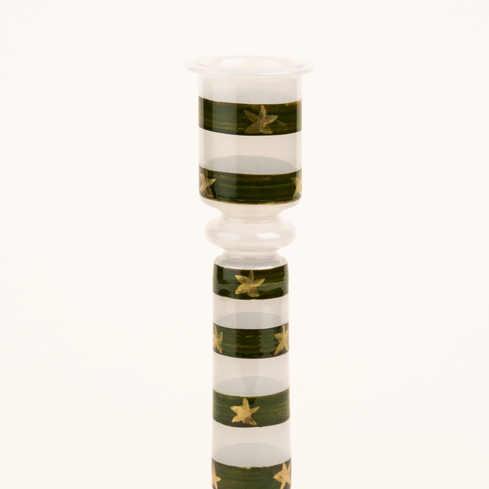 Aravali el boyaması cam şamdan, Hindistan’ın eşsiz zanaatkârlık mirasını modern bir zarafetle buluşturuyor. Otantik yeşil tonu ile bu şamdan, sanki tropik bir ormandan bir anı yakalayıp yaşam alanınıza taşımış gibi bir his uyandırıyor. Altın dokunuşlu desenleri, yıldızlı bir gökyüzünün parıltısını andırıyor; fakat bu kez, doğanın derin yeşil tonlarında saklı. Yüksek bir rafta, bir yemek masasının ortasında ya da bir pencerenin köşesinde yer aldığında, her ortamı dönüştürebilecek güce sahip. Aravali cam şamdan, yaşam alanınızı gündüzün sakin doğasıyla ve gece gökyüzünün ışıltısıyla harmanlıyor. Işığın dansına tanıklık ederken kutlama hissini yaşamak istiyorsanız Aravali cam şamdan sizin için hazır.