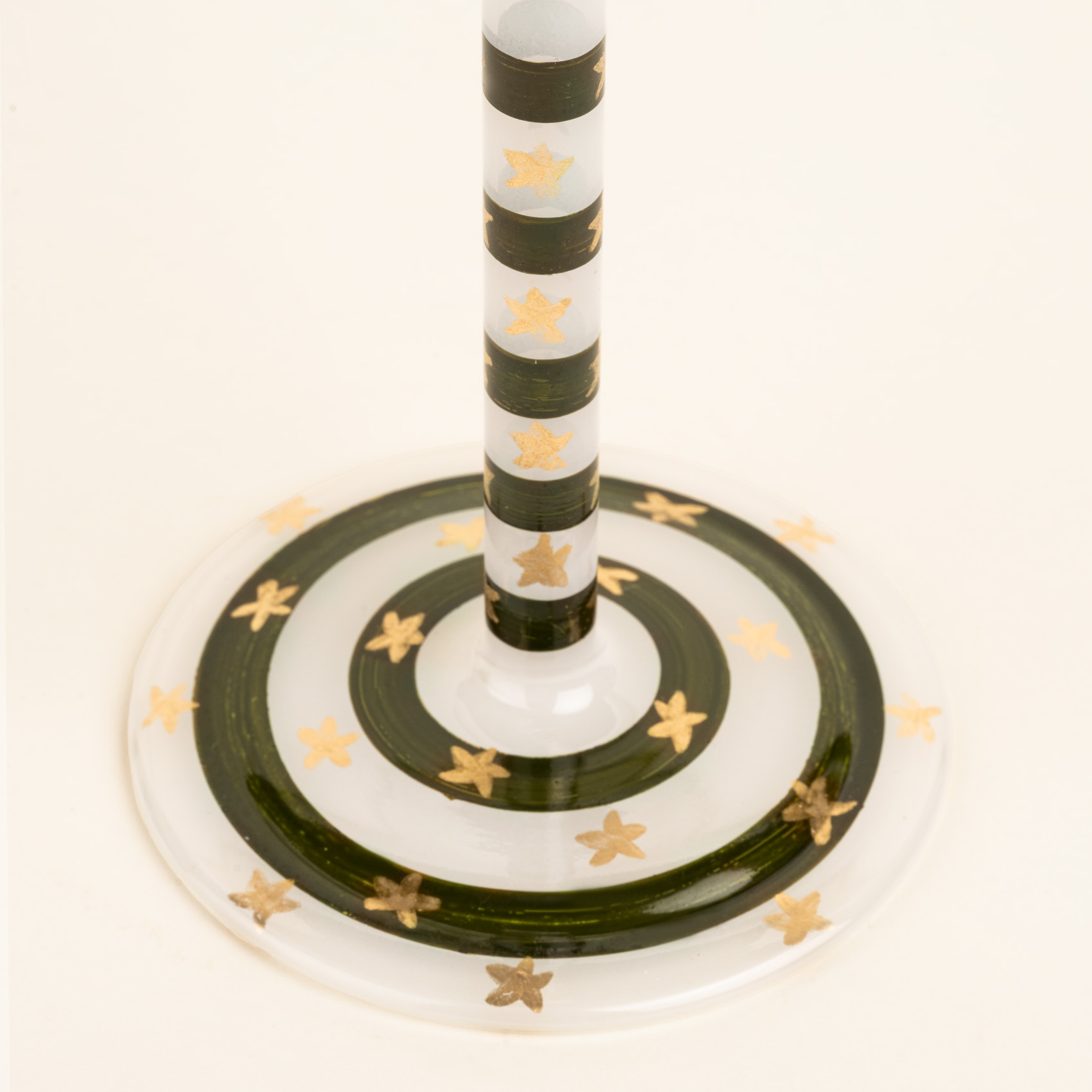 Aravali el boyaması cam şamdan, Hindistan’ın eşsiz zanaatkârlık mirasını modern bir zarafetle buluşturuyor. Otantik yeşil tonu ile bu şamdan, sanki tropik bir ormandan bir anı yakalayıp yaşam alanınıza taşımış gibi bir his uyandırıyor. Altın dokunuşlu desenleri, yıldızlı bir gökyüzünün parıltısını andırıyor; fakat bu kez, doğanın derin yeşil tonlarında saklı. Yüksek bir rafta, bir yemek masasının ortasında ya da bir pencerenin köşesinde yer aldığında, her ortamı dönüştürebilecek güce sahip. Aravali cam şamdan, yaşam alanınızı gündüzün sakin doğasıyla ve gece gökyüzünün ışıltısıyla harmanlıyor. Işığın dansına tanıklık ederken kutlama hissini yaşamak istiyorsanız Aravali cam şamdan sizin için hazır.