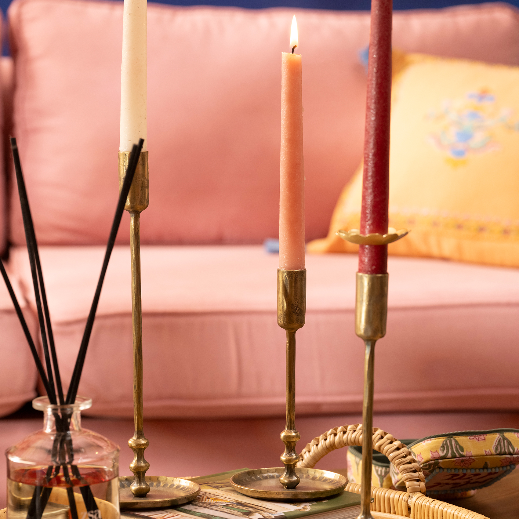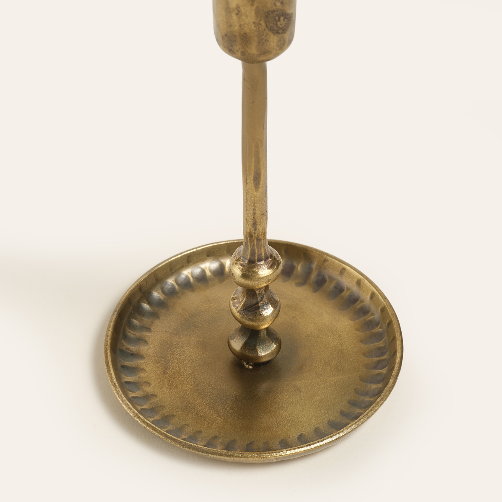 Her detayda, zanaatkârlığın ve ince işçiliğin izleri var. Heritage koleksiyonunda yer alan Bijnor metal şamdan, Hindistan’ın köklü demir işçiliği geleneğinden ilham alarak, 200 yıllık geleneksel dövme teknikleriyle üretildi. Usta ellerde ateşle buluşan demir, kızıl sıcaklığa ulaştığında el çekiçleriyle dövülerek sanatla fonksiyonun mükemmel dengesi yarattı. Pirinç kaplamayla tamamlanan Bijnor şamdan, tamamen el yapımı olduğundan eşi benzeri yoktur. Bakım önerisi: Bu ikonik şıklığı korumak için sudan ve nemden uzak tutun, sadece kuru bir bezle silin.
