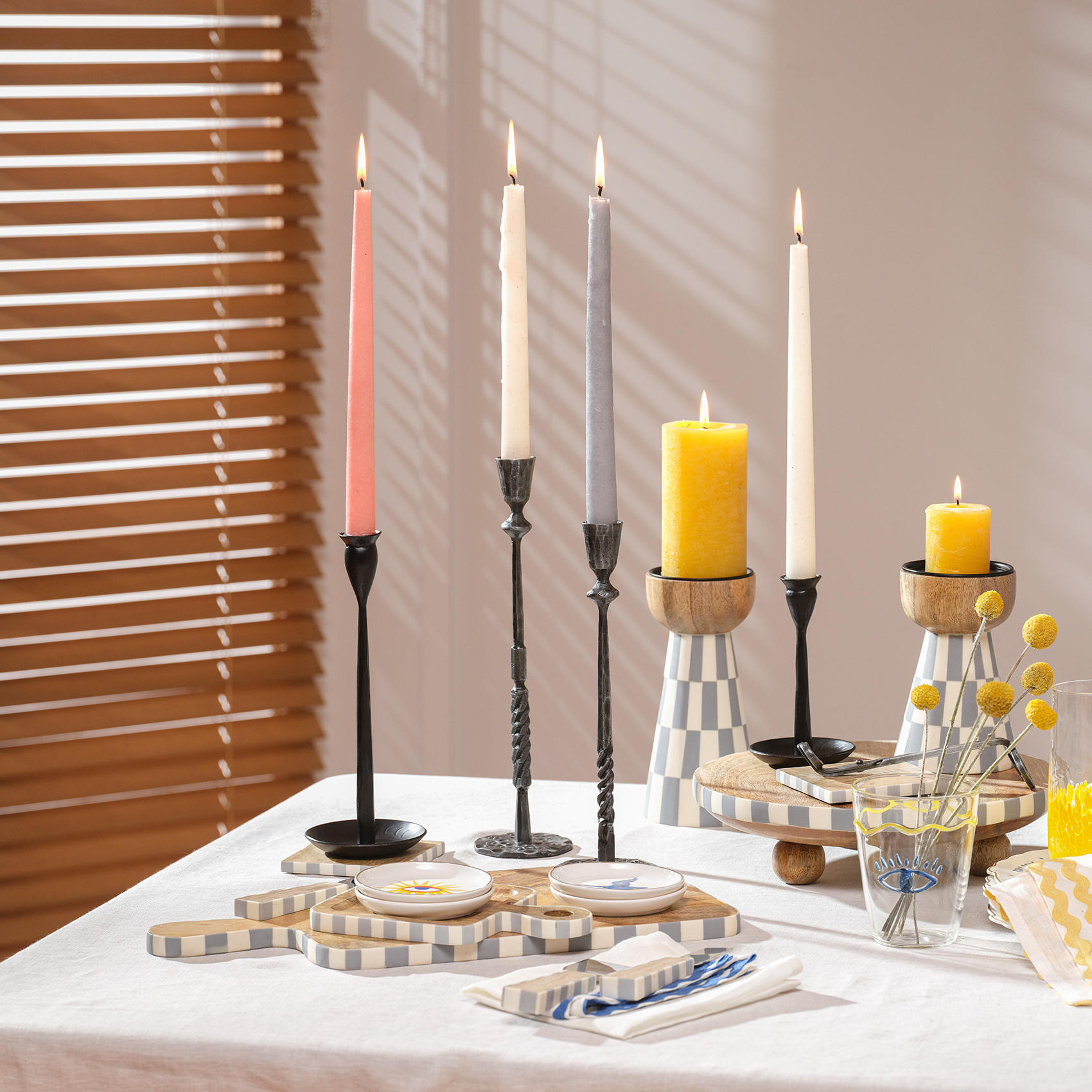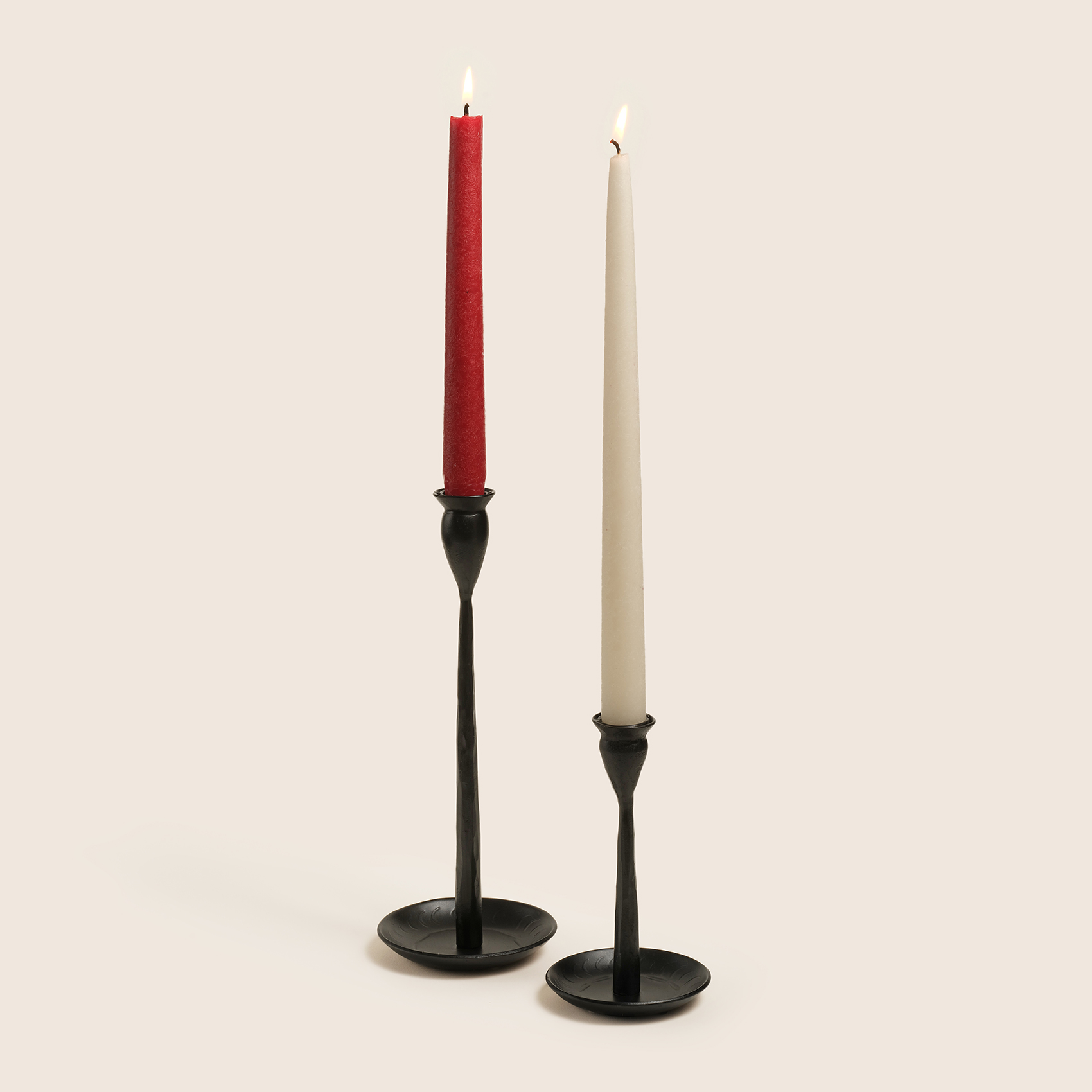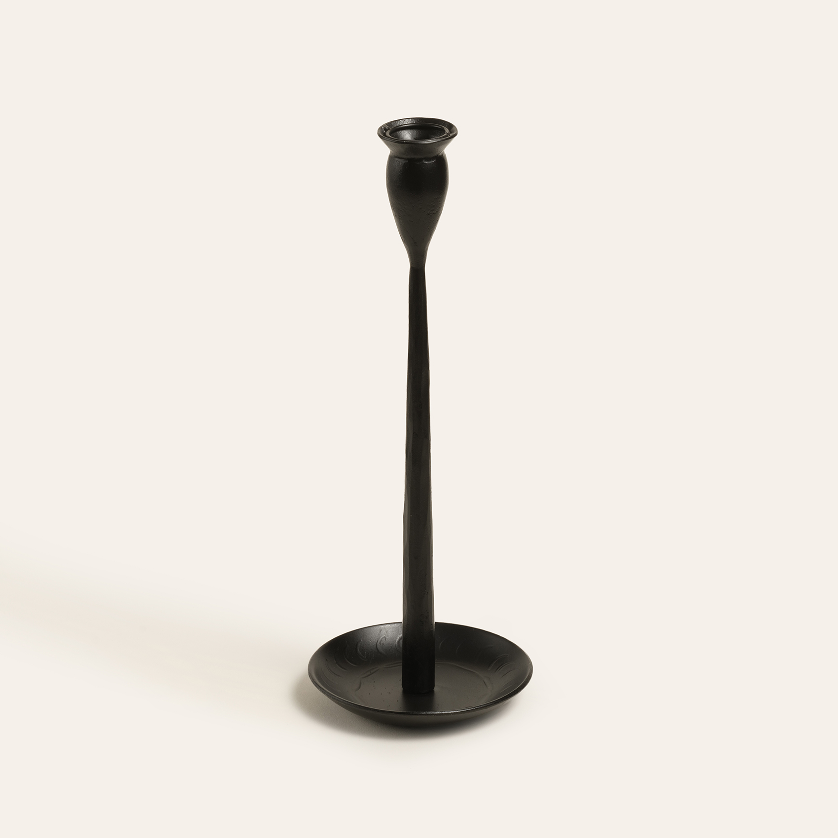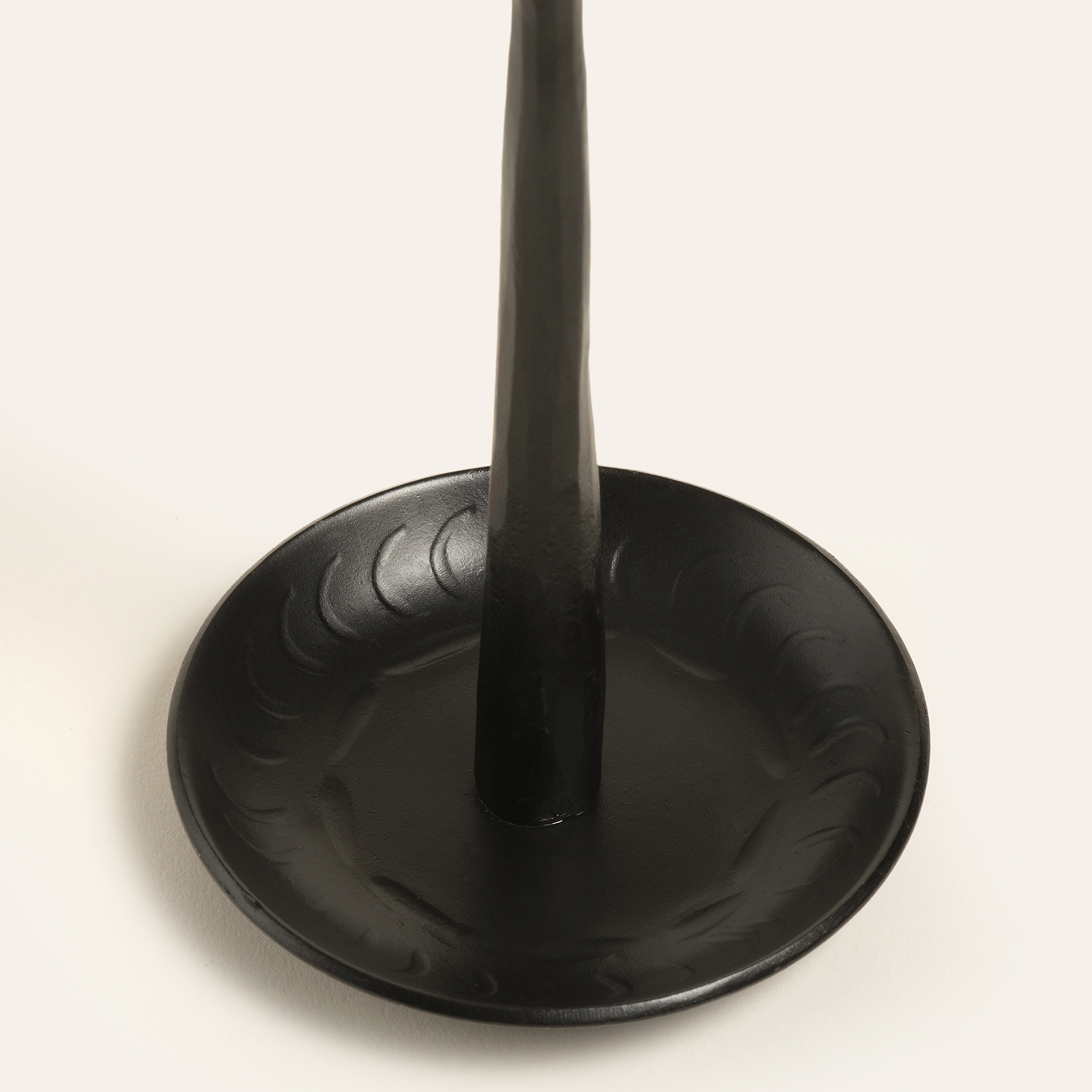 Bijnor metal şamdan, Hindistan’ın usta demircileri tarafından ateşin ve el işçiliğinin büyüsüyle şekillendirildi. Geleneksel dövme tekniğiyle üretilen bu şamdan, mat siyah dokusuyla gizemli, sofistike ve iddialı bir duruş sergiliyor. Minimal ama etkileyici… Biraz da endüstriyel bir tarafı var. Dövme tekniğiyle şekillendirildiğinden eşsizdir. Bakım önerisi: Bu ikonik şıklığı korumak için sudan ve nemden uzak tutun, sadece kuru bir bezle silin.