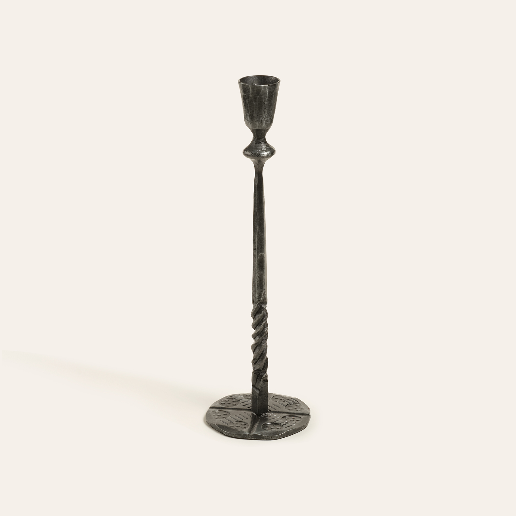Bazı parçalar sadece bir işlevi karşılamak için değil, kendine ait bir hikâye anlatmak için vardır. Tıpkı Bijnor metal şamdan gibi. Hindistan’ın usta demircileri tarafından, ateşle şekillendirilen ve el işçiliğiyle ruh kazanan bu tasarım, mekânınıza hem güçlü hem de büyüleyici bir dokunuş katıyor. Antik gri tonu, zamansız bir çekicilik sunarken; dövme demirin karakteristik dokusu, onu ikonik bir tasarıma dönüştürüyor. Bijnor şamdan, el dövme teknikleriyle üretildiğinden eşsizdir. Bakım önerisi: Bu ikonik şıklığı korumak için sudan ve nemden uzak tutun, sadece kuru bir bezle silin.