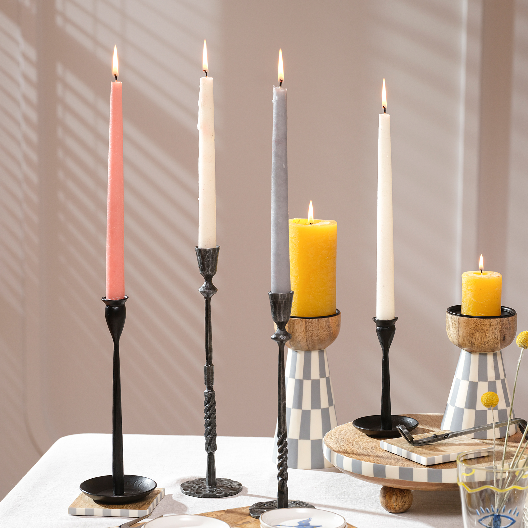 Bazı parçalar sadece bir işlevi karşılamak için değil, kendine ait bir hikâye anlatmak için vardır. Tıpkı Bijnor metal şamdan gibi. Hindistan’ın usta demircileri tarafından, ateşle şekillendirilen ve el işçiliğiyle ruh kazanan bu tasarım, mekânınıza hem güçlü hem de büyüleyici bir dokunuş katıyor. Antik gri tonu, zamansız bir çekicilik sunarken; dövme demirin karakteristik dokusu, onu ikonik bir tasarıma dönüştürüyor. Bijnor şamdan, el dövme teknikleriyle üretildiğinden eşsizdir. Bakım önerisi: Bu ikonik şıklığı korumak için sudan ve nemden uzak tutun, sadece kuru bir bezle silin.