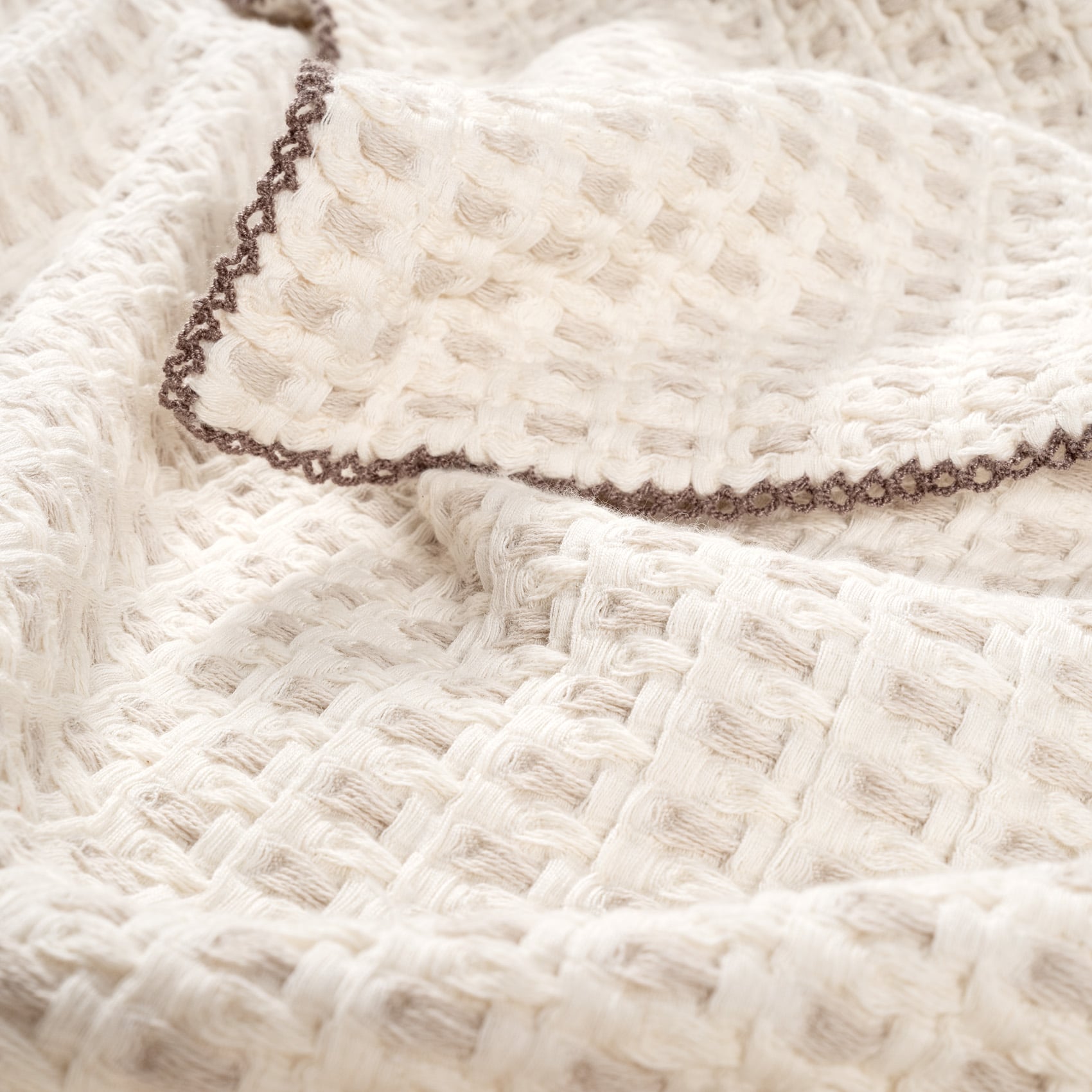 Costa Kenar İşlemeli İplik Boyalı Çift Kişilik Pamuk %100 Pamuk Pike 200x220 Cm Natural