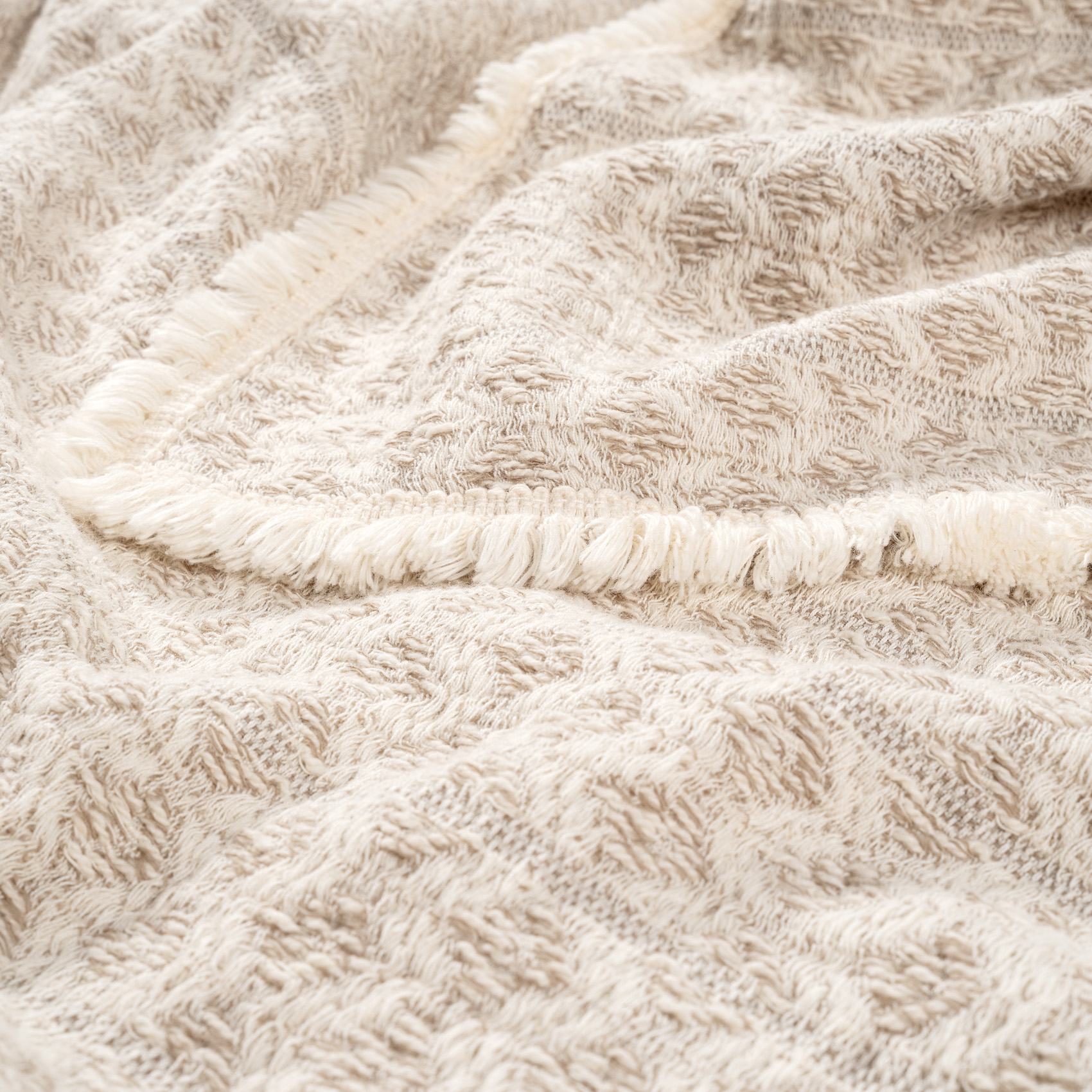 Costa Saçaklı İplik Boyalı Çift Kişilik Pamuk %100 Pamuk Pike 200x220 Cm Bej