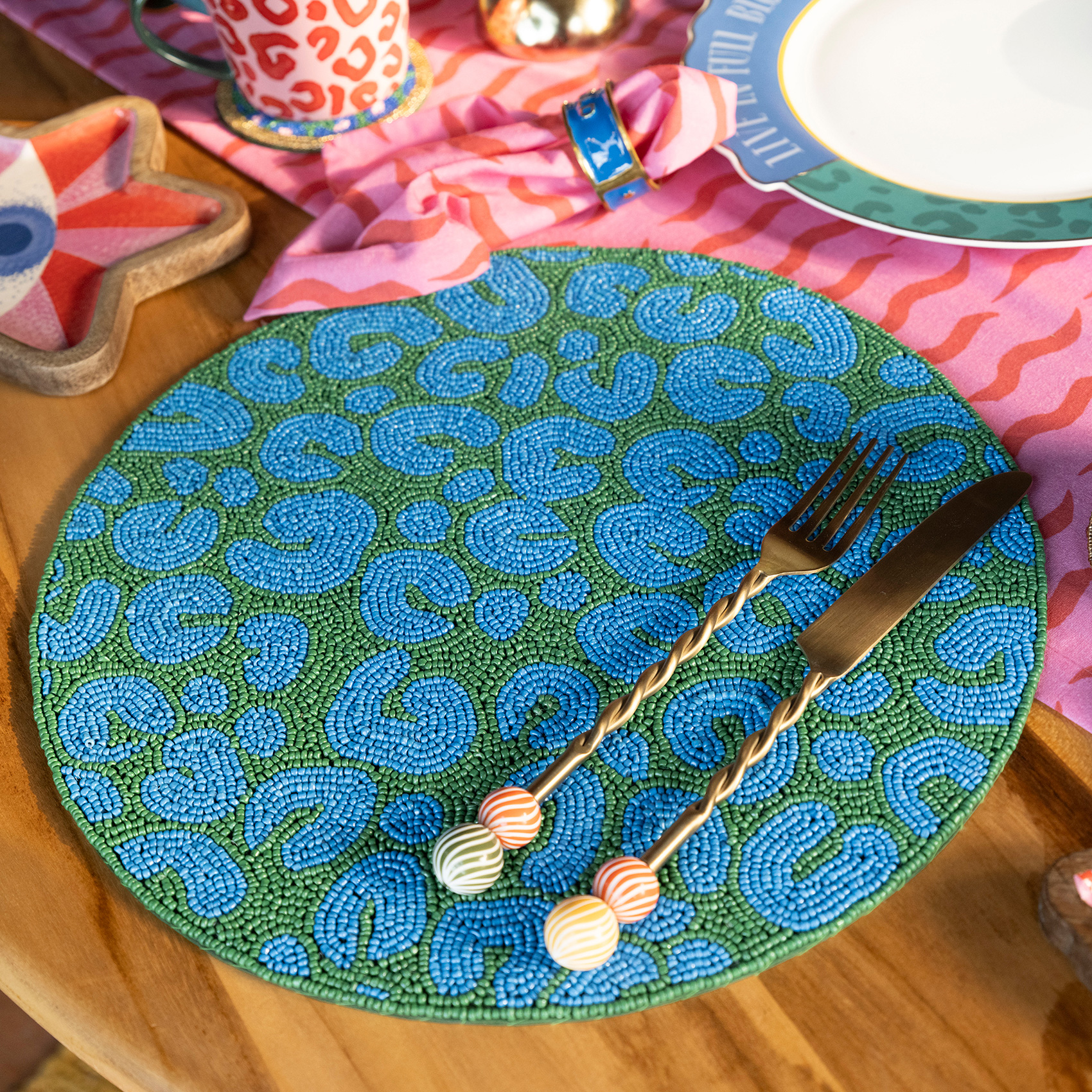 Masada sıradanlığa yer yok. 35 cm çapındaki Dadri Amerikan servis, Hindistan’daki ustaların tek tek dizdiği cam boncuklarla tamamen el yapımı olarak tasarlandı. Renkli ve coşkulu dokusuyla sofralara enerji katıyor, Maximalist koleksiyonunun oyunbaz ruhunu masanıza taşıyor. El işçiliğinin değerini yansıtan bu özel boncuklu Amerikan servis, Zsa Zsa Zsu’nun özgür ve neşeli evreninin ayrılmaz bir parçası.