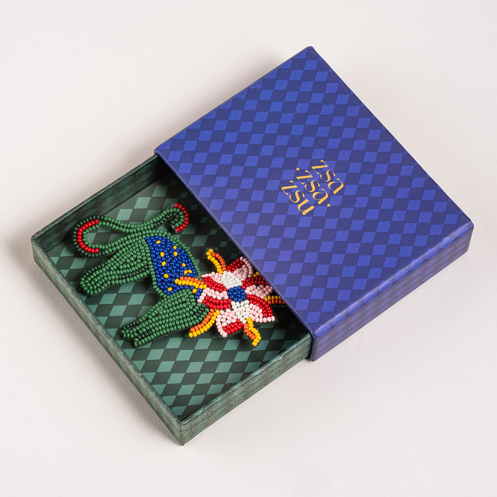 Bir masalın sayfalarından fırlamış gibi. Hindistan’da ustaların tek tek dizdiği cam boncuklarla el emeğiyle hazırlanan Dadri boncuklu broş, Maximalist koleksiyonun hayal gücüyle dolu evreninden çıkan en sıra dışı karakterlerden biri. Leopar gövdesi ve yıldız göz formuyla merak uyandırıyor, taktığınız anda görünümünüze ışıltılı ve beklenmedik bir hava katıyor. Ceketin yakasında, elbisenin üzerinde ya da boynunuza doladığınız bir fuların ucunda ışıldayan bu artizan parça, koleksiyon değerinde eşsiz bir obje olarak modunuzu yükseltiyor.