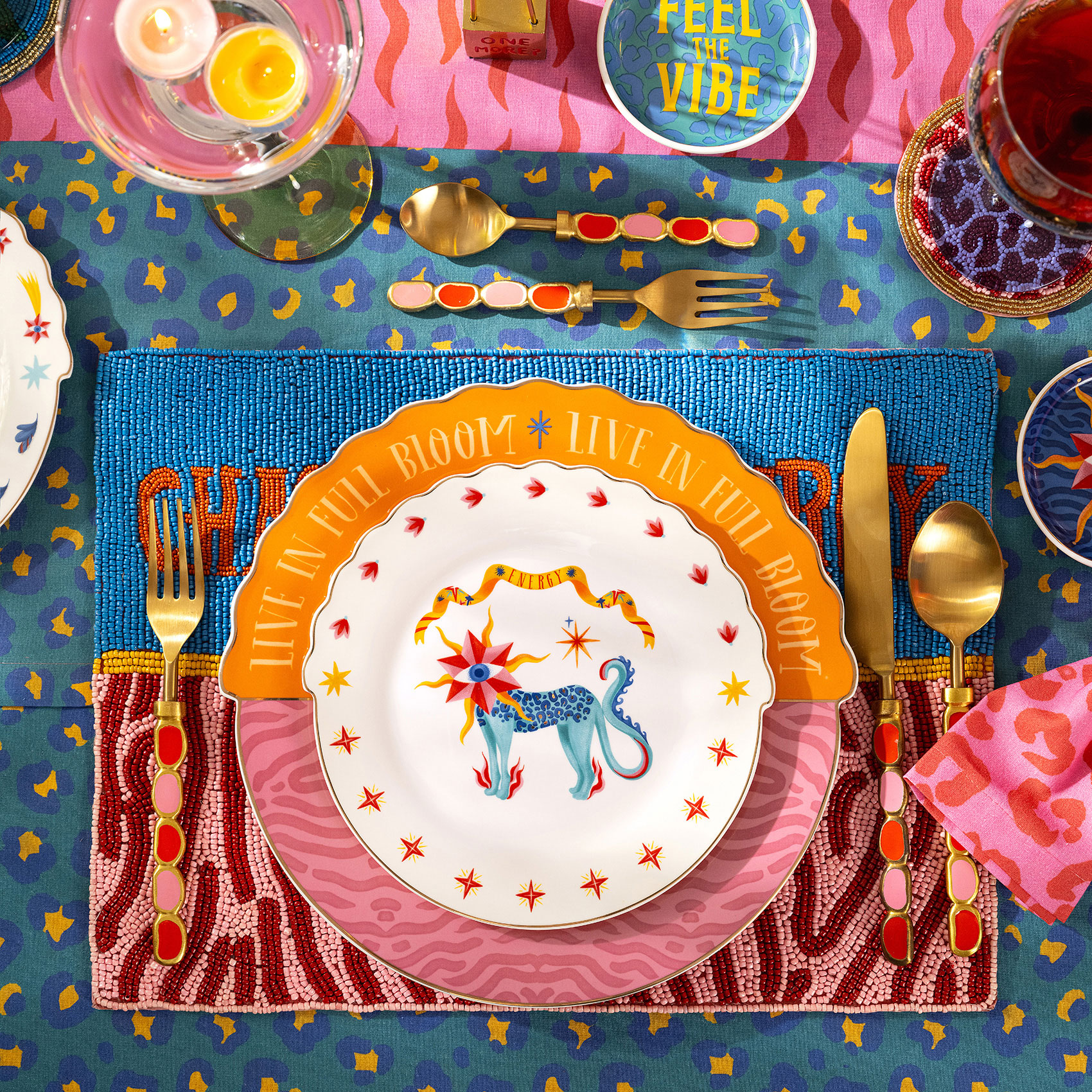 Maximalist koleksiyonunun özgür ruhunu sofranıza taşıyan bu el yapımı Amerikan servis, Hindistan’da ustaların tek tek dizdiği cam boncuklarla hayat buluyor. 30x40 cm ölçüsündeki bu özel parça, parlak renkleri ve cesur desenlerinin yanında size bir davet sunuyor: enerjinizi kovalamaya, hayatı tüm canlılığıyla kucaklamaya, sıradanlığa meydan okumaya çağırıyor. Zsa Zsa Zsu tasarımcılarının imzasını taşıyan Dadri, her sofrayı yaratıcılığın ve kutlamanın merkezine dönüştürüyor.