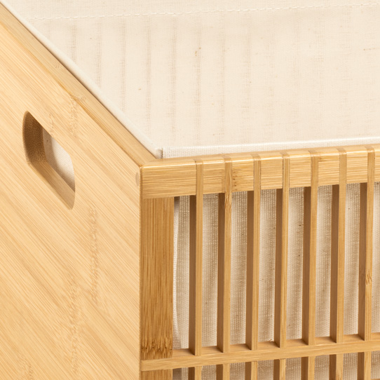 Doğal ve sürdürülebilir bambudan üretilen bu sepet, modern tasarım anlayışının tüm estetik ve işlevsel kodlarını taşıyor. Dikdörtgen şekliyle oldukça minimalist ve şık bir görünüm sunan sepetin dışı, bambu çıtalarla yapılmış ızgara deseniyle çevreleniyor, iç yüzeyinde ise açık renkli kanvas astar yer alıyor. Sepetin her iki yanında entegre tutma yerleri bulunuyor, bu da kolay taşınabilirlik sağlıyor. Doğal dokusu ve şık tasarımıyla fonksiyonel bir dekoratif öğe olan Dali sepet, Natural koleksiyonunda yer alıyor.