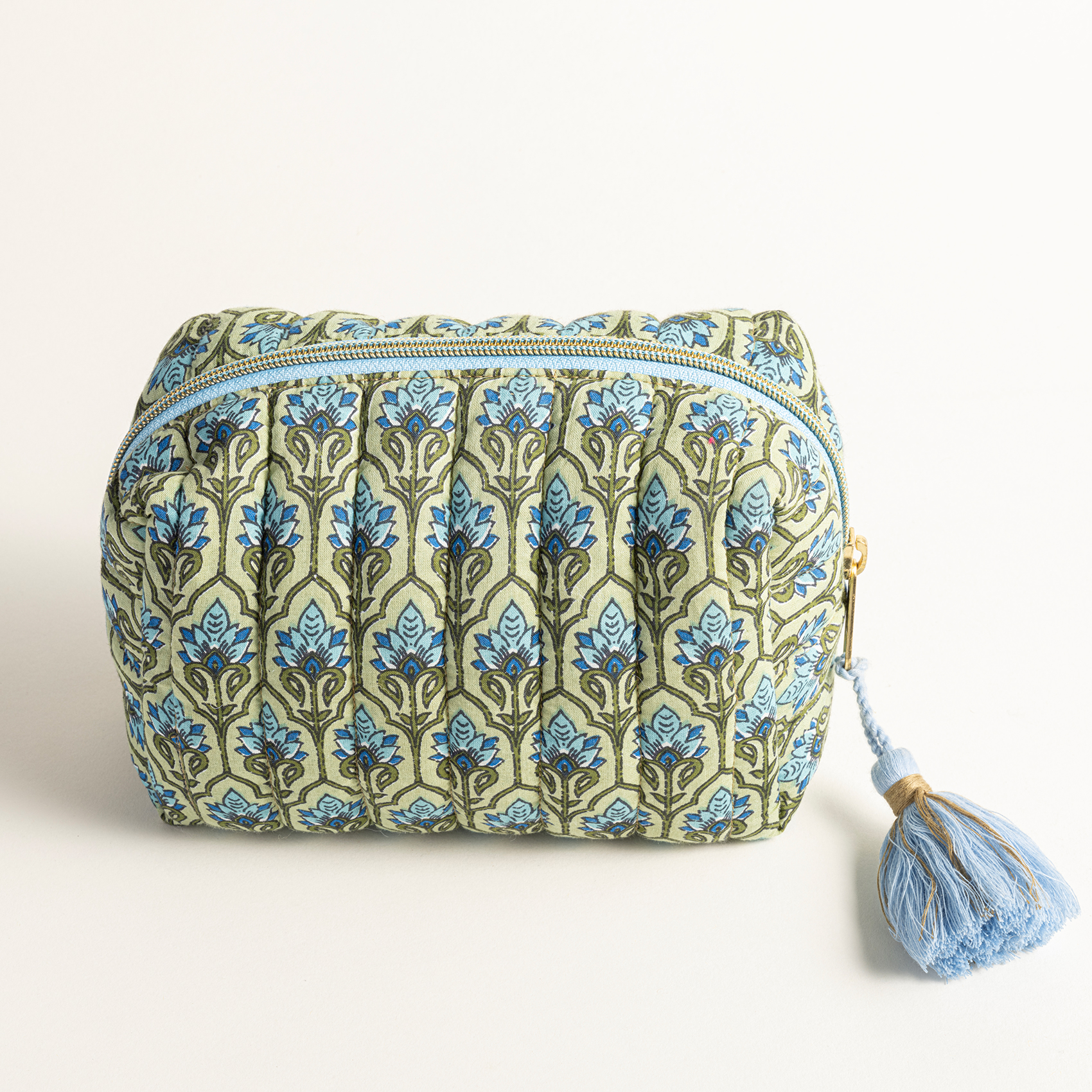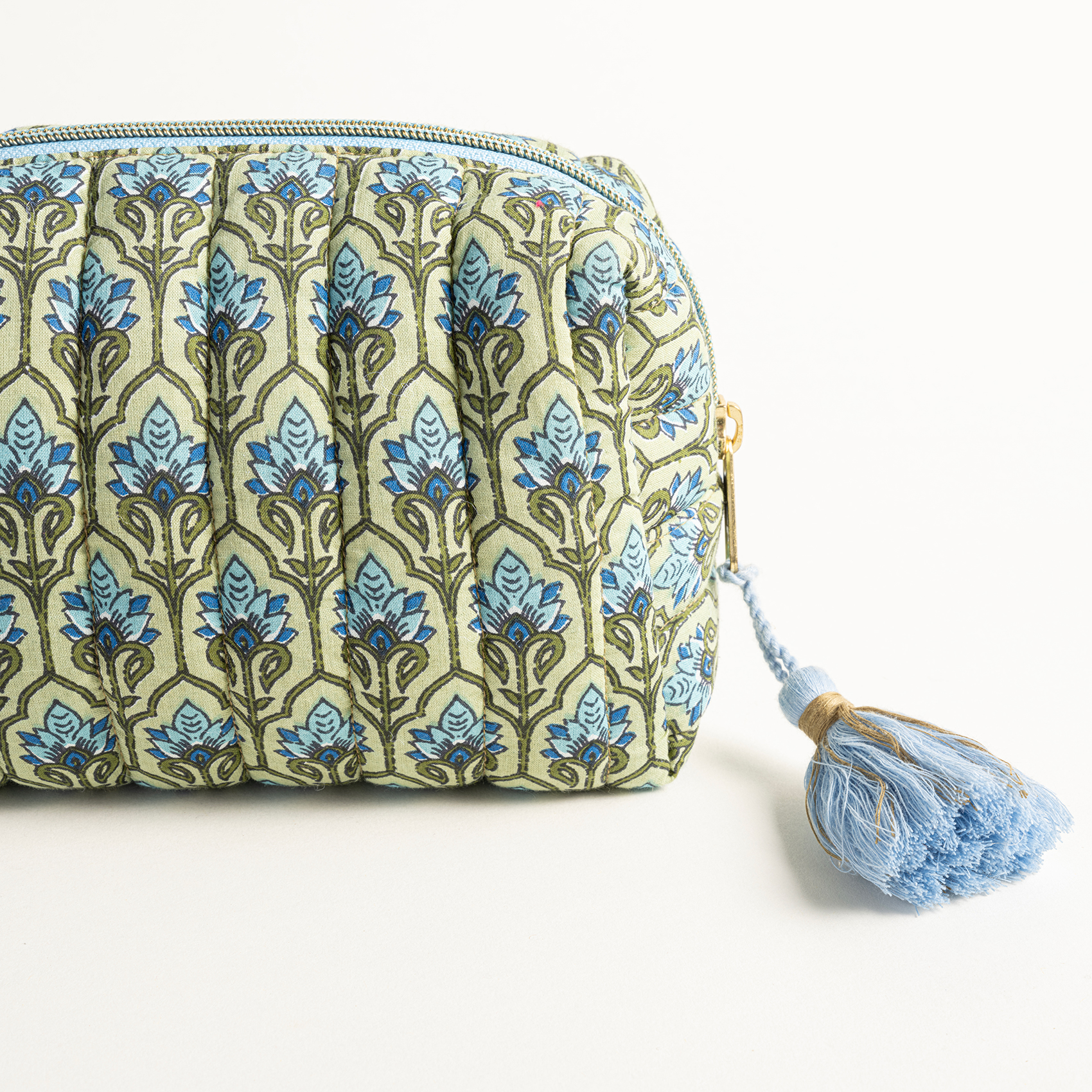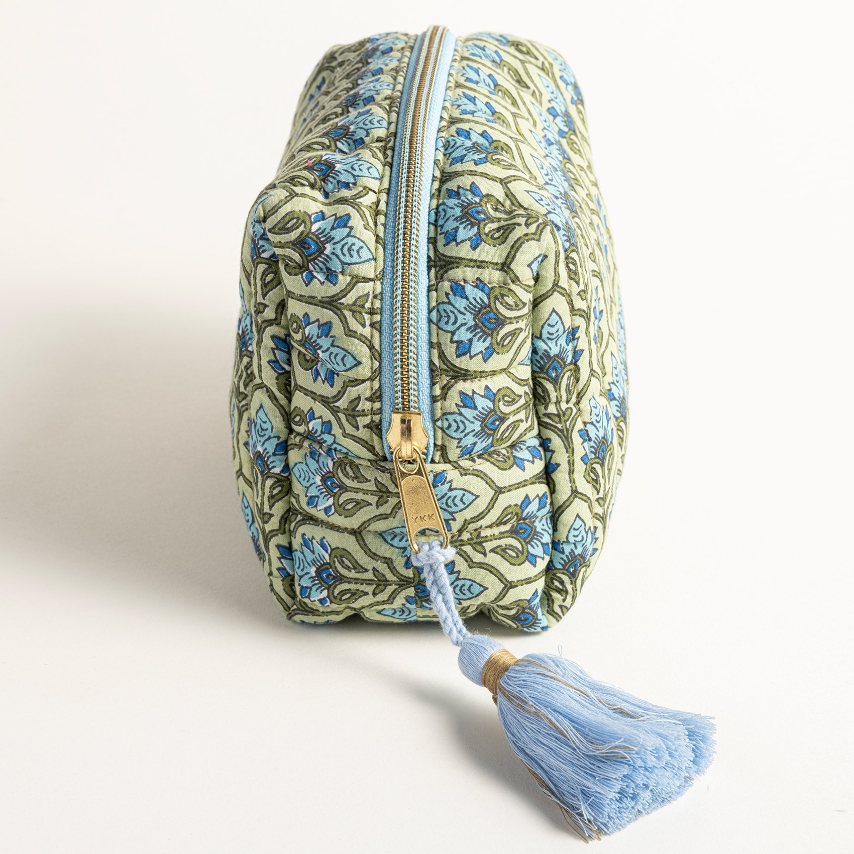 Heritage koleksiyonunun etnik dünyasını yansıtan Delhi makyaj çantasının desenleri, Hindistanlı zanaatkârların ahşap blok baskı tekniğinden ilham alınarak Zsa Zsa Zsu tasarımcıları tarafından çizildi. Dijital baskı tekniğiyle %100 pamuk kumaşa aktarılan otantik desenleriyle eklektik bir hava yaratan bu makyaj çantası, dokunduğunuzda yumuşak ve lüks bir his yaratan yüksek sayıda iplik kullanılarak üretilmiştir.