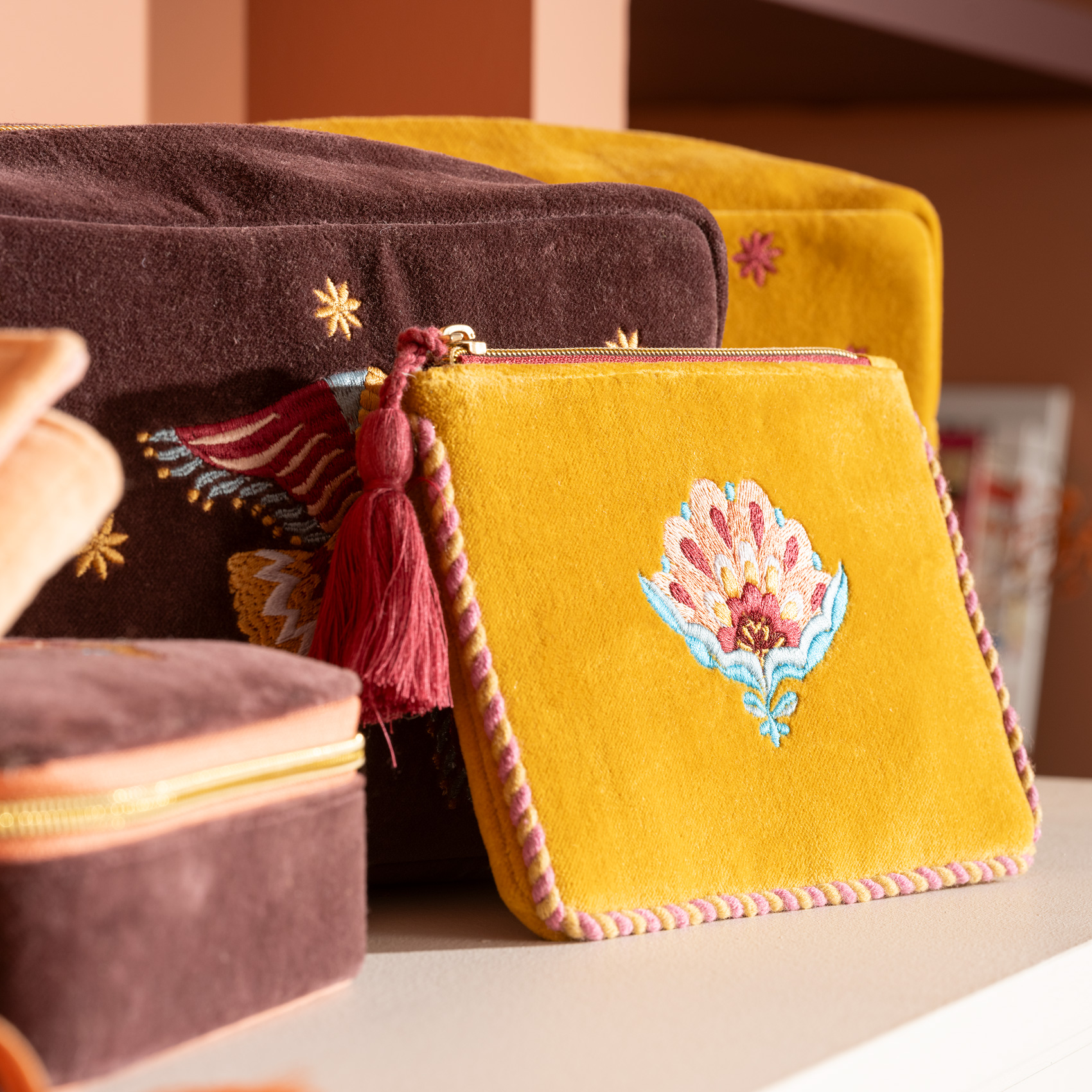 Delhi biyeli nakışlı makyaj çantası, renkli ve cesur tasarımıyla her anınıza canlılık katıyor. Hindistan’ın zengin el işçiliği geleneklerinden ilham alarak üretilen bu çanta, parlak biyeleri ve dikkat çekici nakışlarıyla şıklığı ve işlevselliği mükemmel bir şekilde buluşturuyor. Canlı renkleri ve göz alıcı detaylarıyla bu tasarım, stilinizi her ortamda ön plana çıkaracak. %100 pamuk malzemeden yapılmıştır.