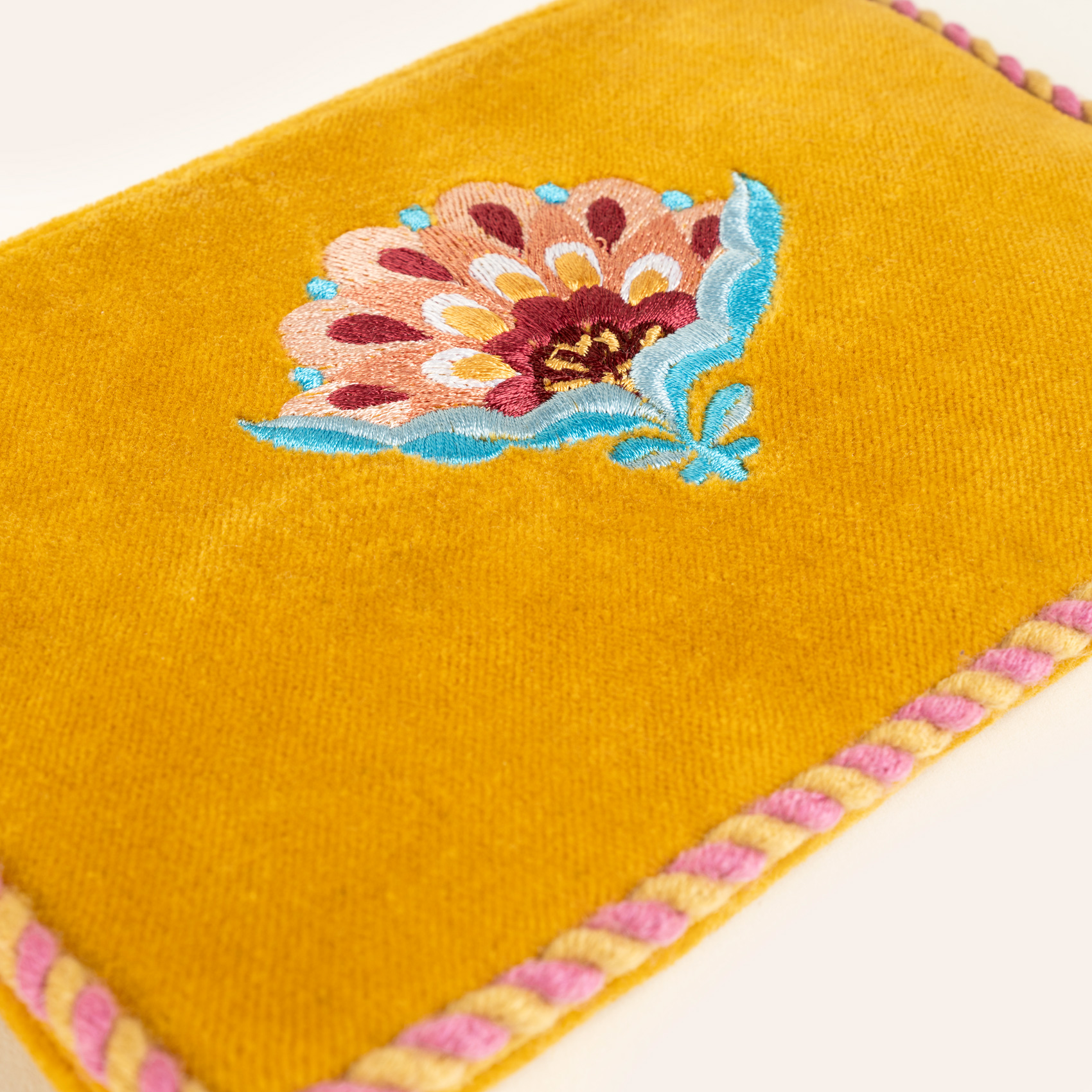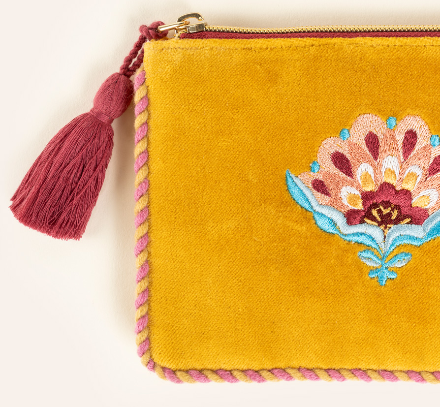 Delhı Biyeli Nakışlı Küçük Boy Pamuk Pamuk Makyaj Çantası 12x18 Cm Sarı
