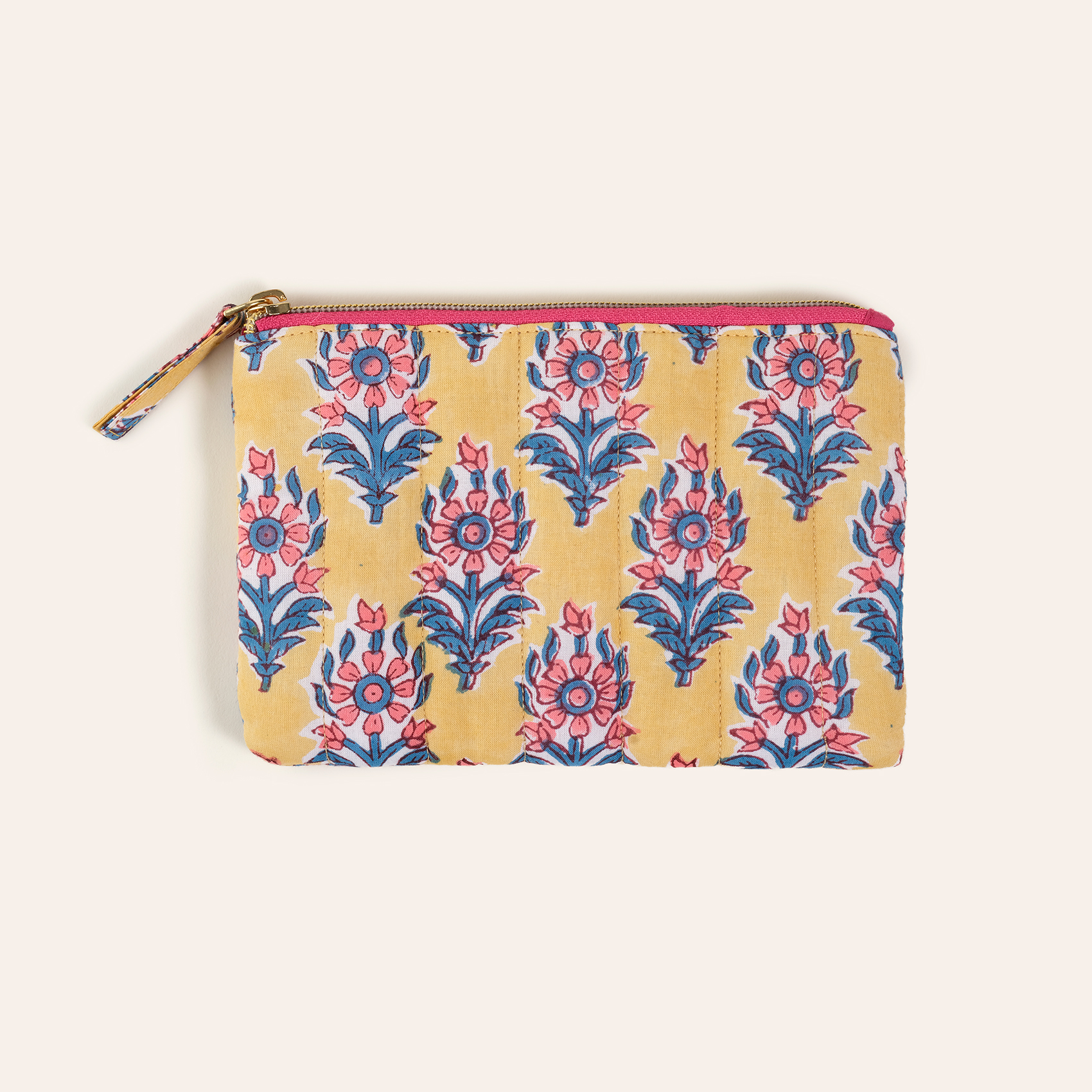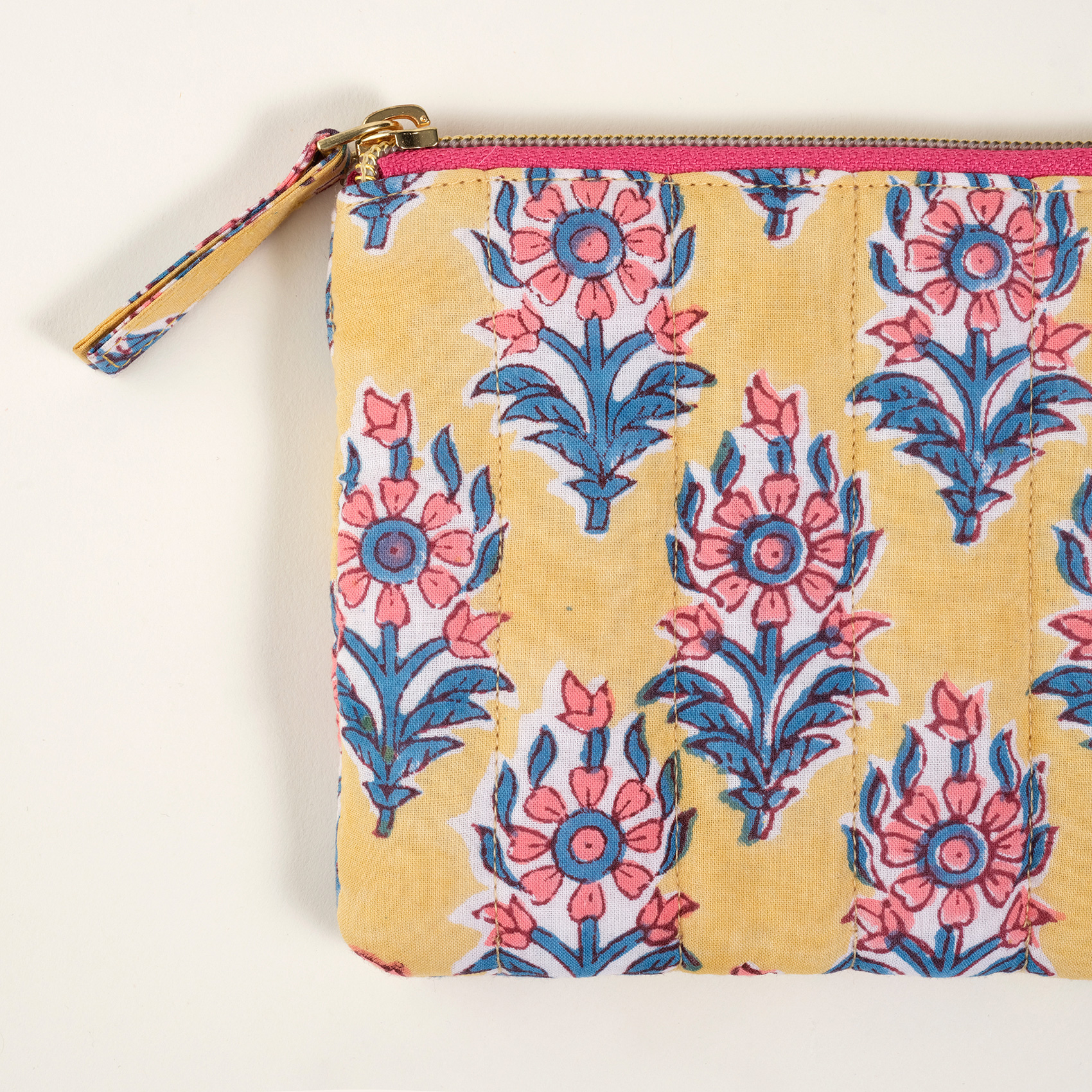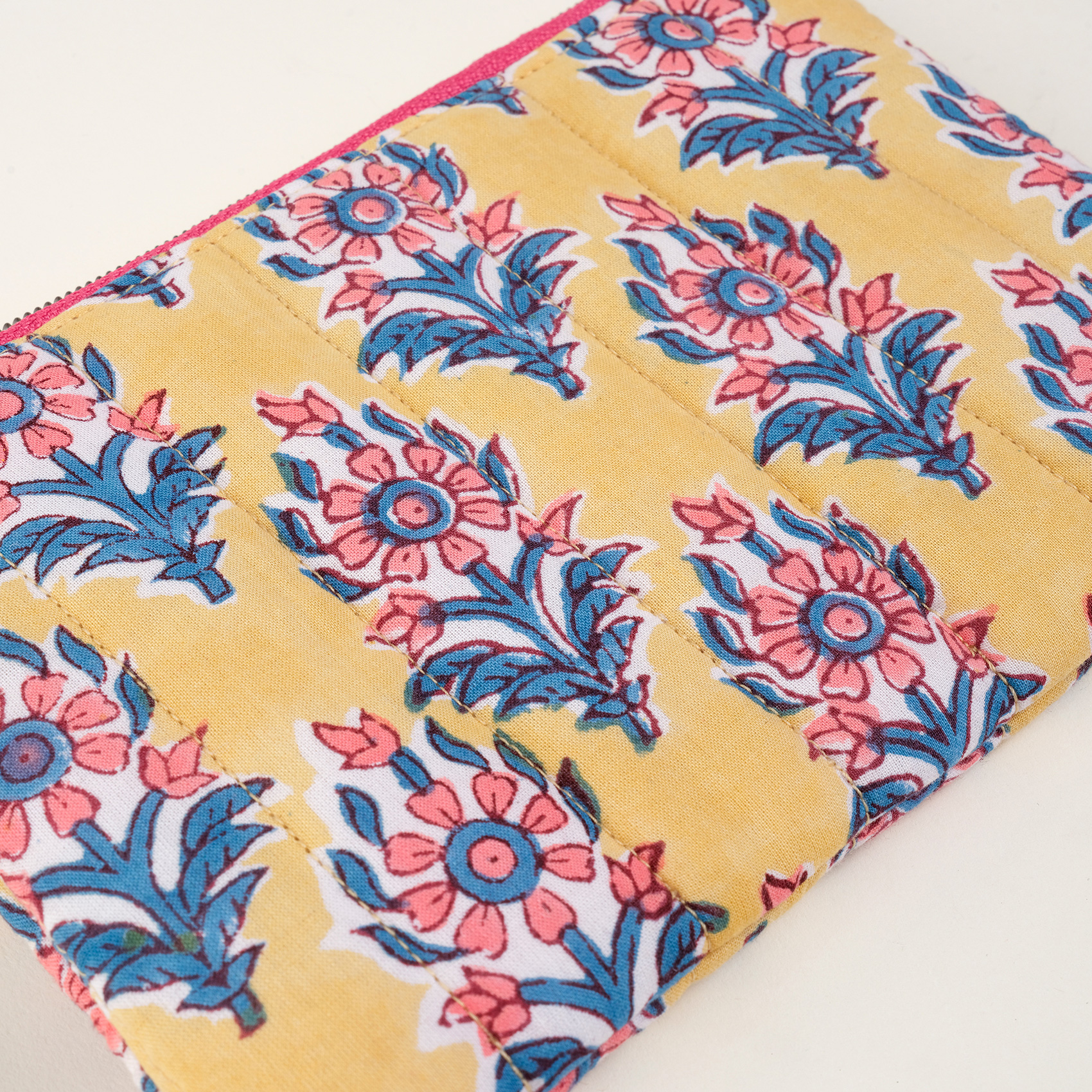 Delhı El Baskısı Pamuk Makyaj Çantası 12x18 Cm Sarı