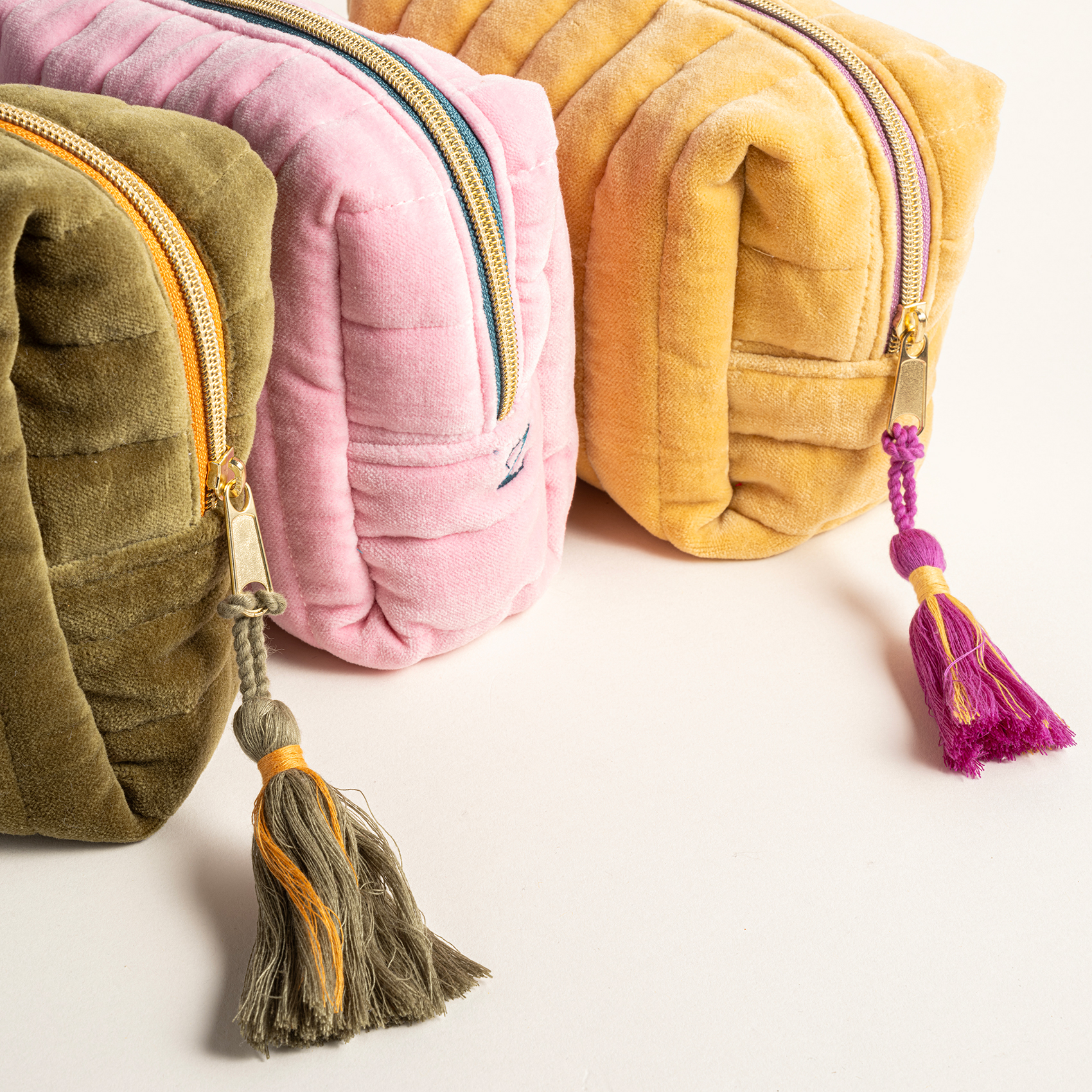 Maksimalist galaksisinin cesur renk paletini yansıtan bu makyaj çantası, işlevsel formu ve yumuşacık dokusuyla gerçek bir arzu nesnesi. Delhi makyaj çantasının dış yüzeyinde ve astarında %100 pamuk içerikli özel kumaşlar kullanılıyor.