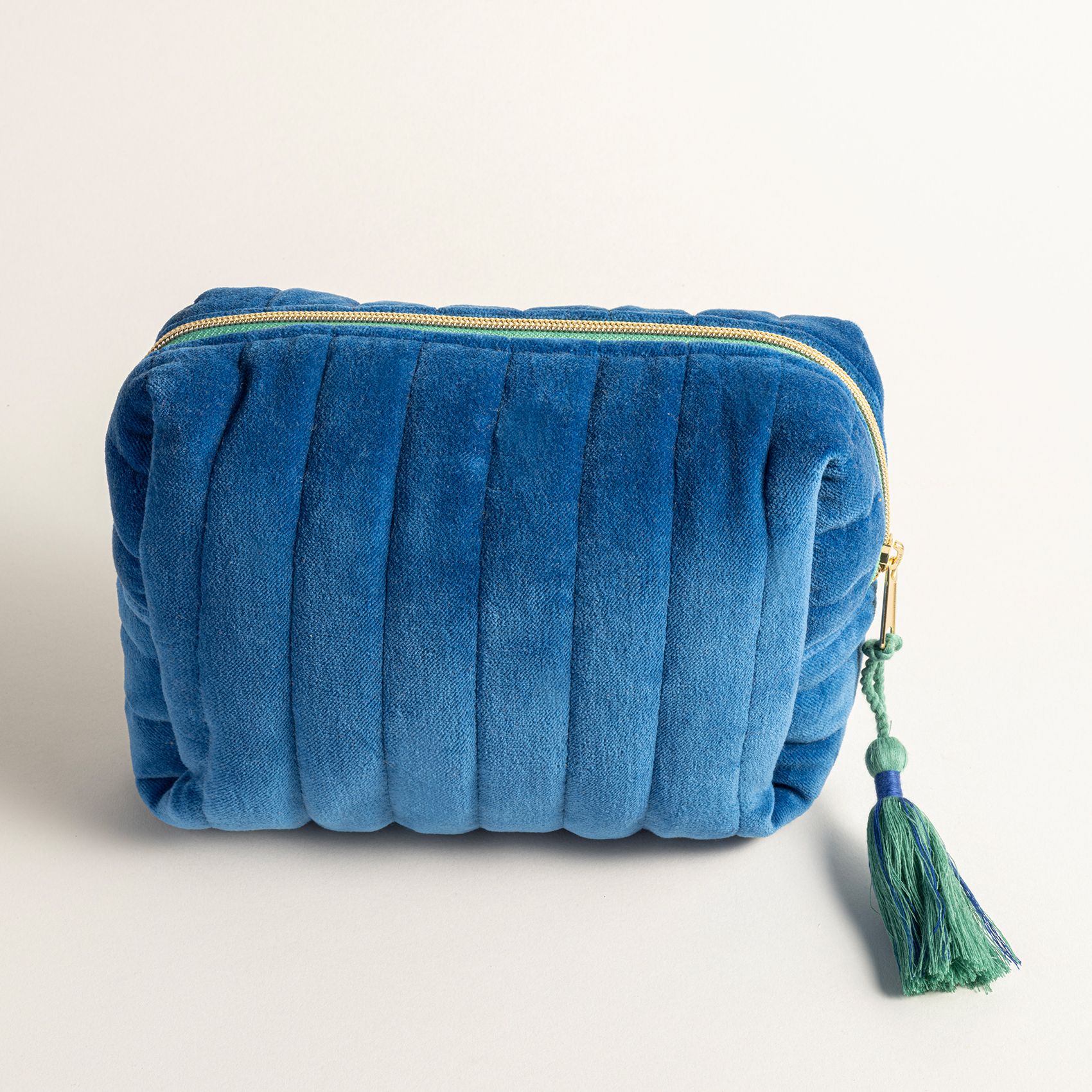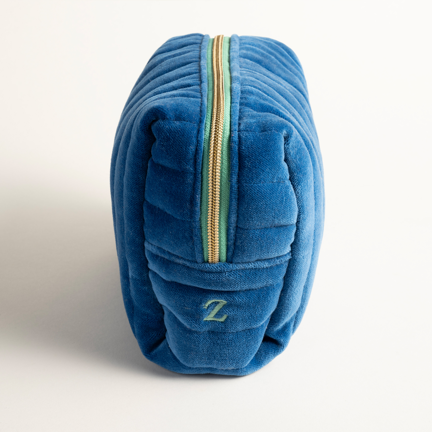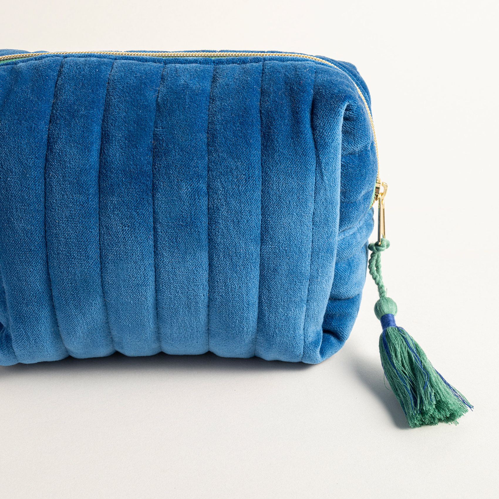 Delhı Kadife Orta Boy %100 Pamuk Makyaj Çantası 21x14x9 Cm Mavi