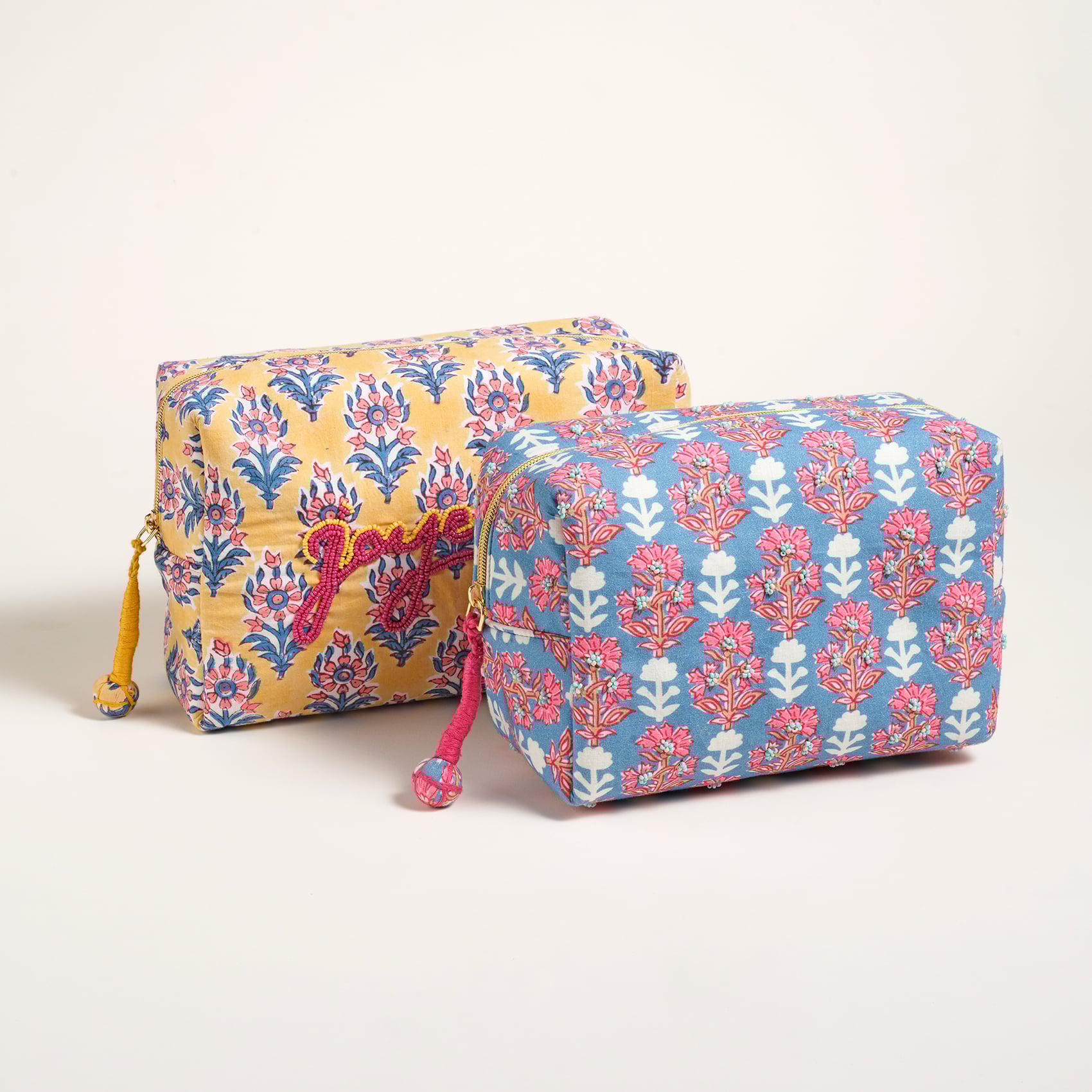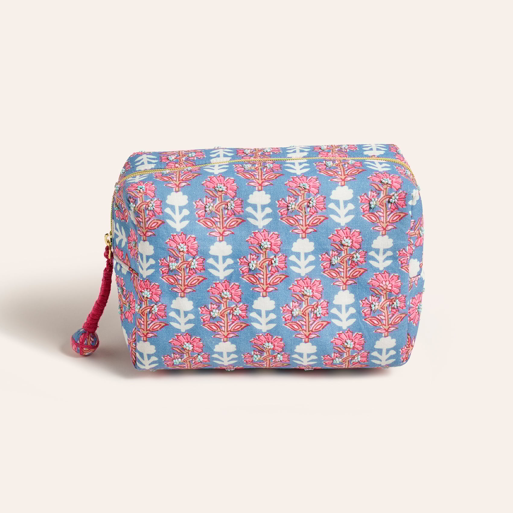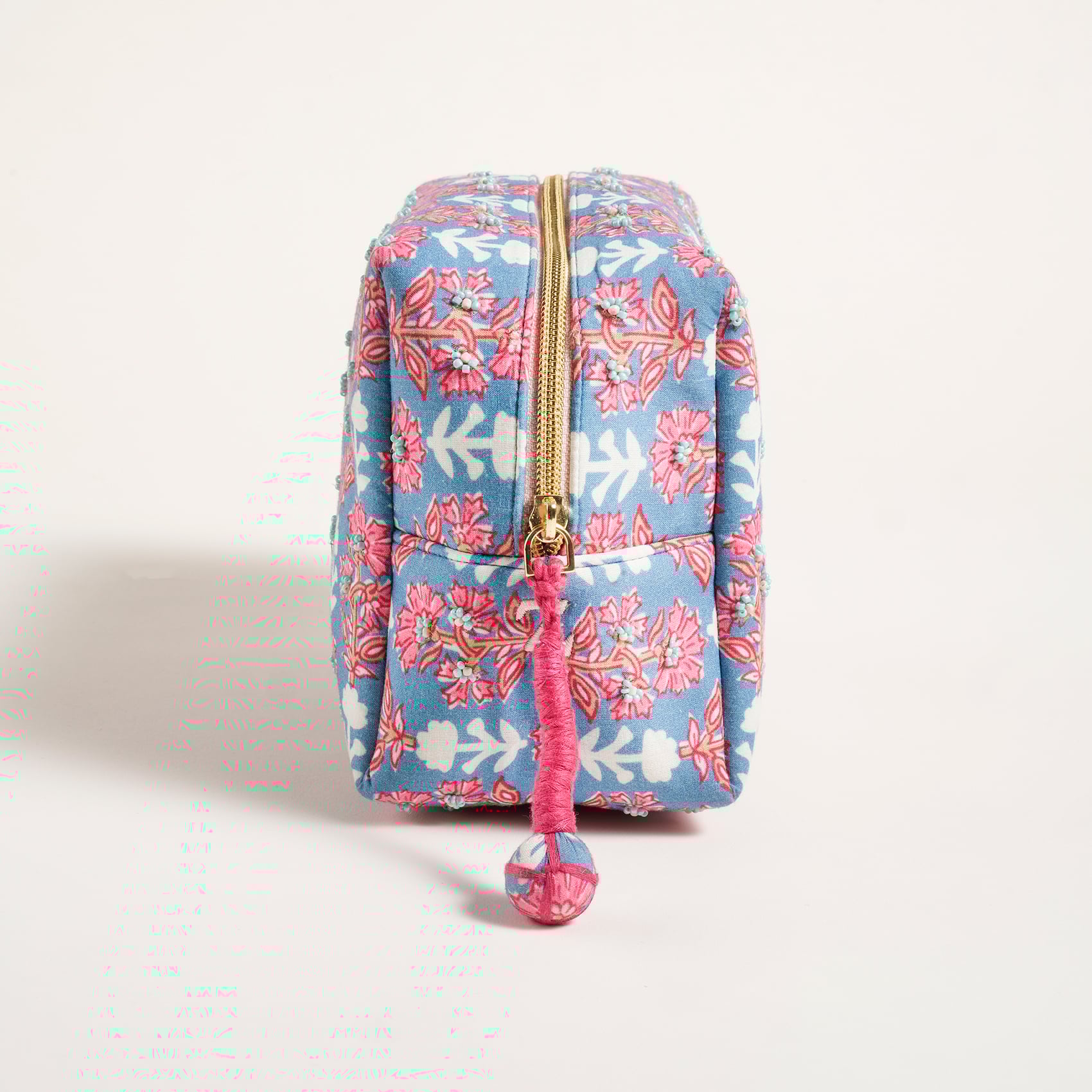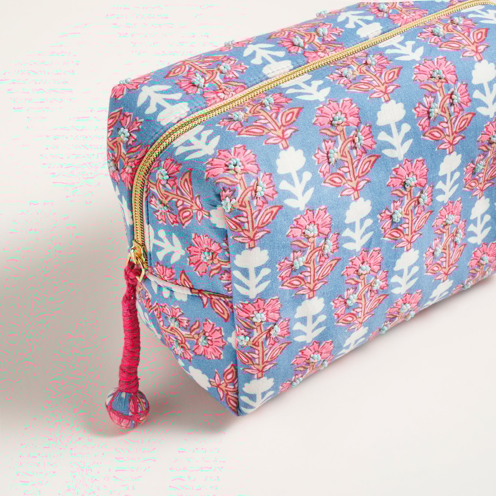 Delhı Nakışlı El Baskısı Pamuk Makyaj Çantası 21x14 Cm Mavi