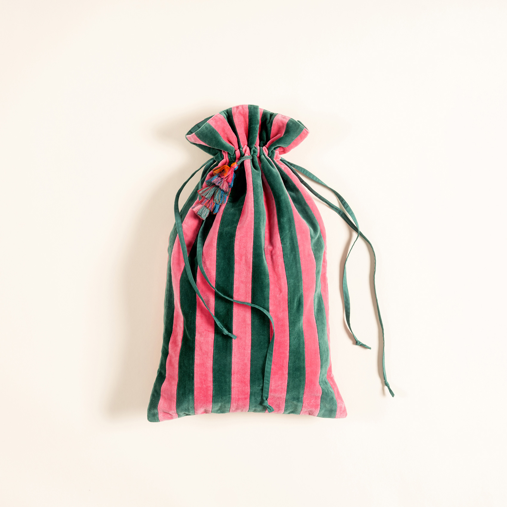 Delhı Püsküllü Çizgili Büyük Boy Pamuk Pamuk Dekoratif Kese 60x35 Cm Pembe - Yeşil