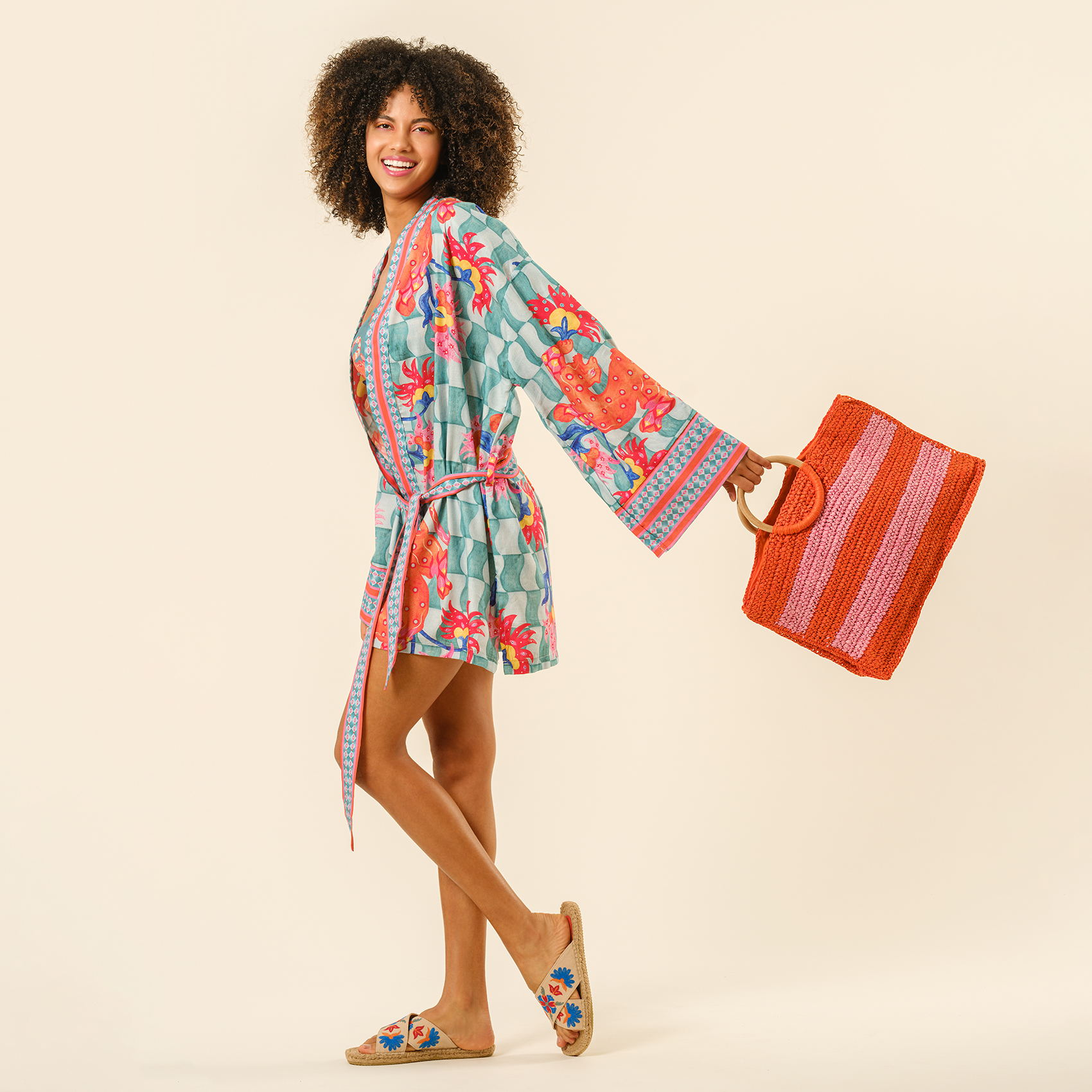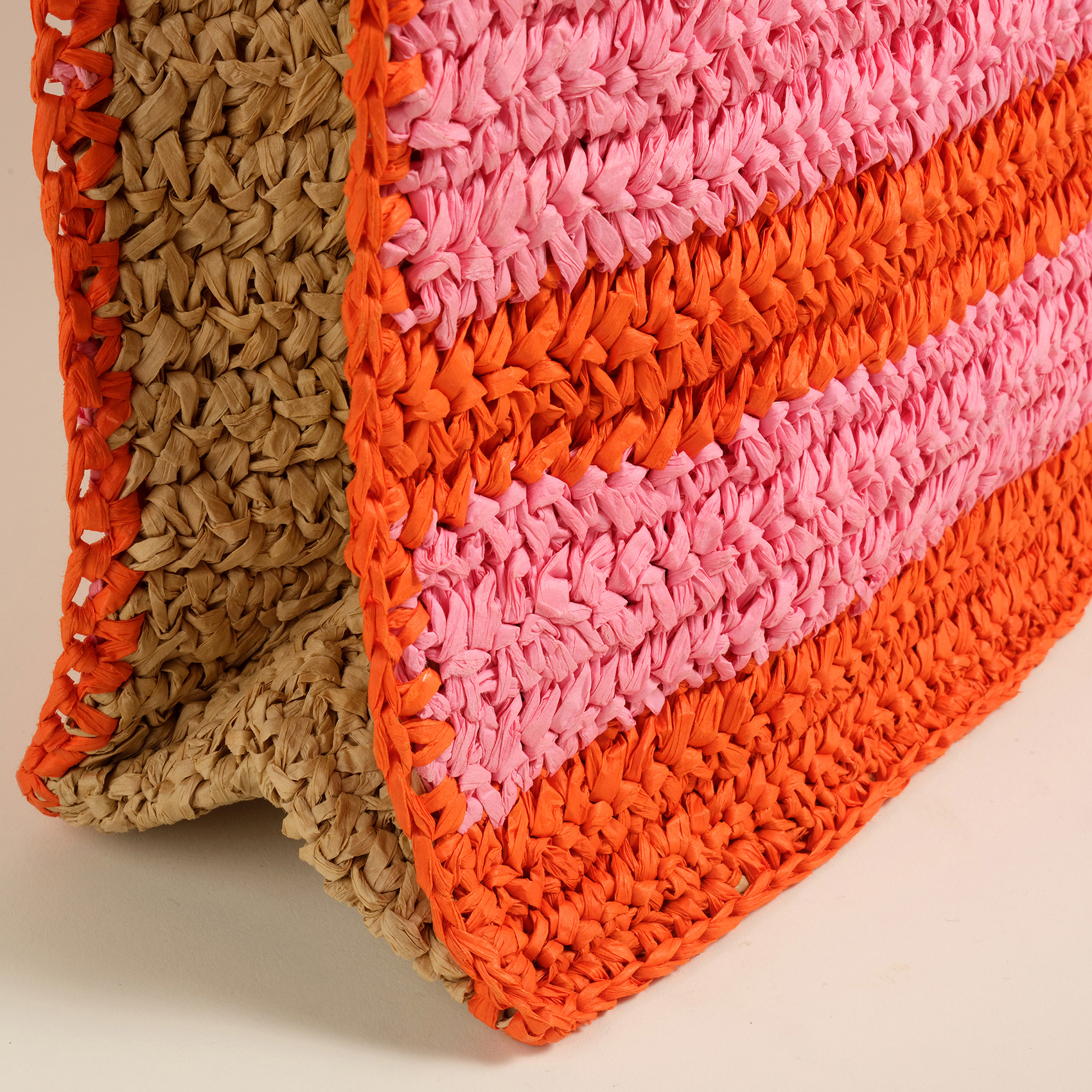 Delhı Rafya Omuz Çantası 43x35 Cm Turuncu - Pembe