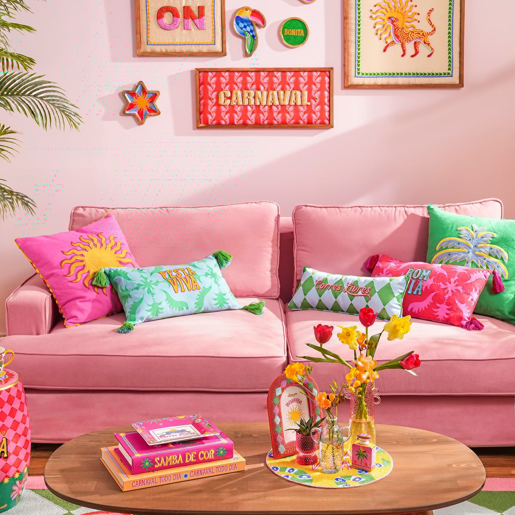 Zsa Zsa Zsu’nun Maximalist ruhu tropik bir heyecanla buluşuyor! Hansi kırlent, yazın hafifliğini ve renklerin verdiği kıpır kıpır duyguyu yaşam alanlarına taşıyan bir tasarım. Tropik esintilerle birleşen eğlenceli karakteri bulunduğu alana güneşli bir neşe yayıyor. %100 pamuk dokusu ve 50x50 cm ölçüsü rahatlığı artırırken dekorasyonu daha canlı bir hâle getiriyor. Zsa Zsa Zsu’nun yaratıcı ekibi tarafından hazırlanan bu özel parça Hindistan’da özenle üretildi.