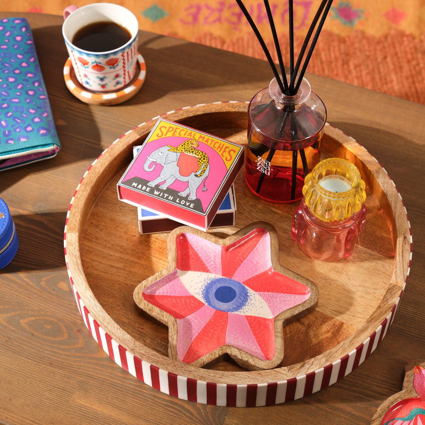 Elephant And Cheetah Ahşap Hediyelik Eşya 11x11x3 Cm Renkli