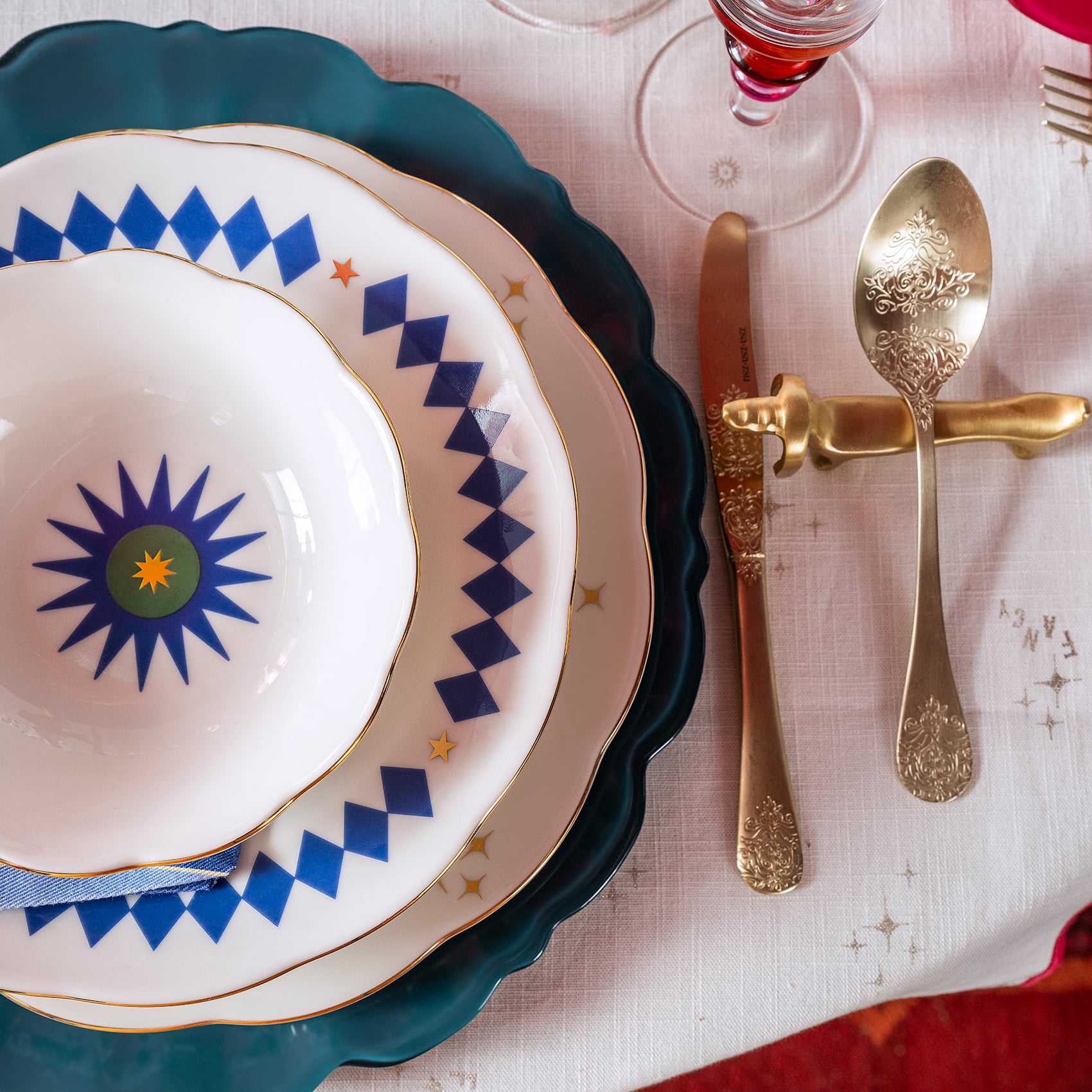 Sofranızın en havalı detayı burada! Bu kaseyle sıradan bir akşam yemeği, bir tasarım şölenine dönüşüyor. Funfair koleksiyonunun özgün ruhunu yansıtan Emet kâse, eğlenceli desen detaylarıyla sadece sofranızı değil, sohbetleri de aydınlatıyor. Altın rimleriyle lüks bir etki yaratırken her masaya rahatça uyum sağlıyor. Çorbanızı bile festival havasında sunmaya ne dersiniz?