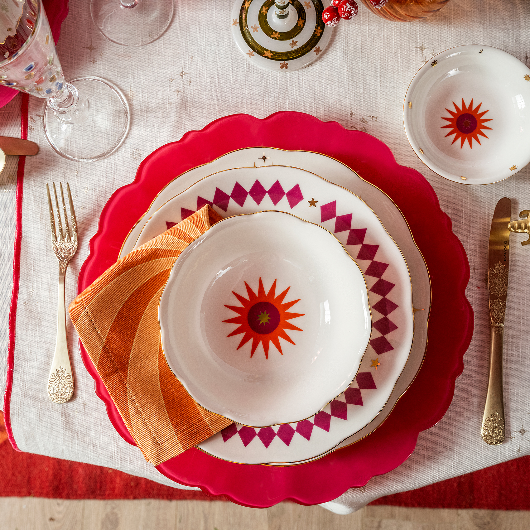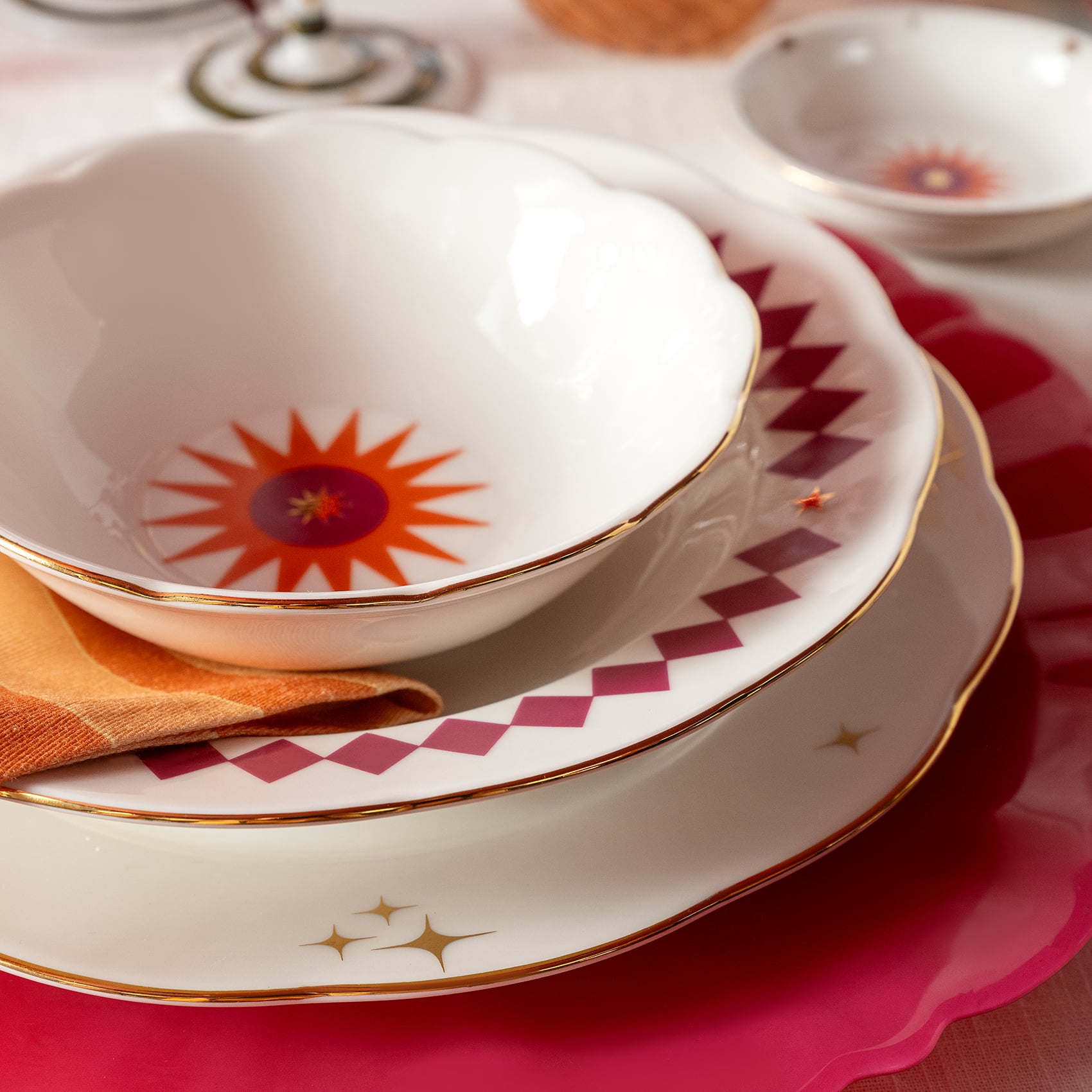 Sofranızın en havalı detayı burada! Bu kaseyle sıradan bir akşam yemeği, bir tasarım şölenine dönüşüyor. Funfair koleksiyonunun özgün ruhunu yansıtan Emet kâse, eğlenceli desen detaylarıyla sadece sofranızı değil, sohbetleri de aydınlatıyor. Altın rimleriyle lüks bir etki yaratırken her masaya rahatça uyum sağlıyor. Çorbanızı bile festival havasında sunmaya ne dersiniz?