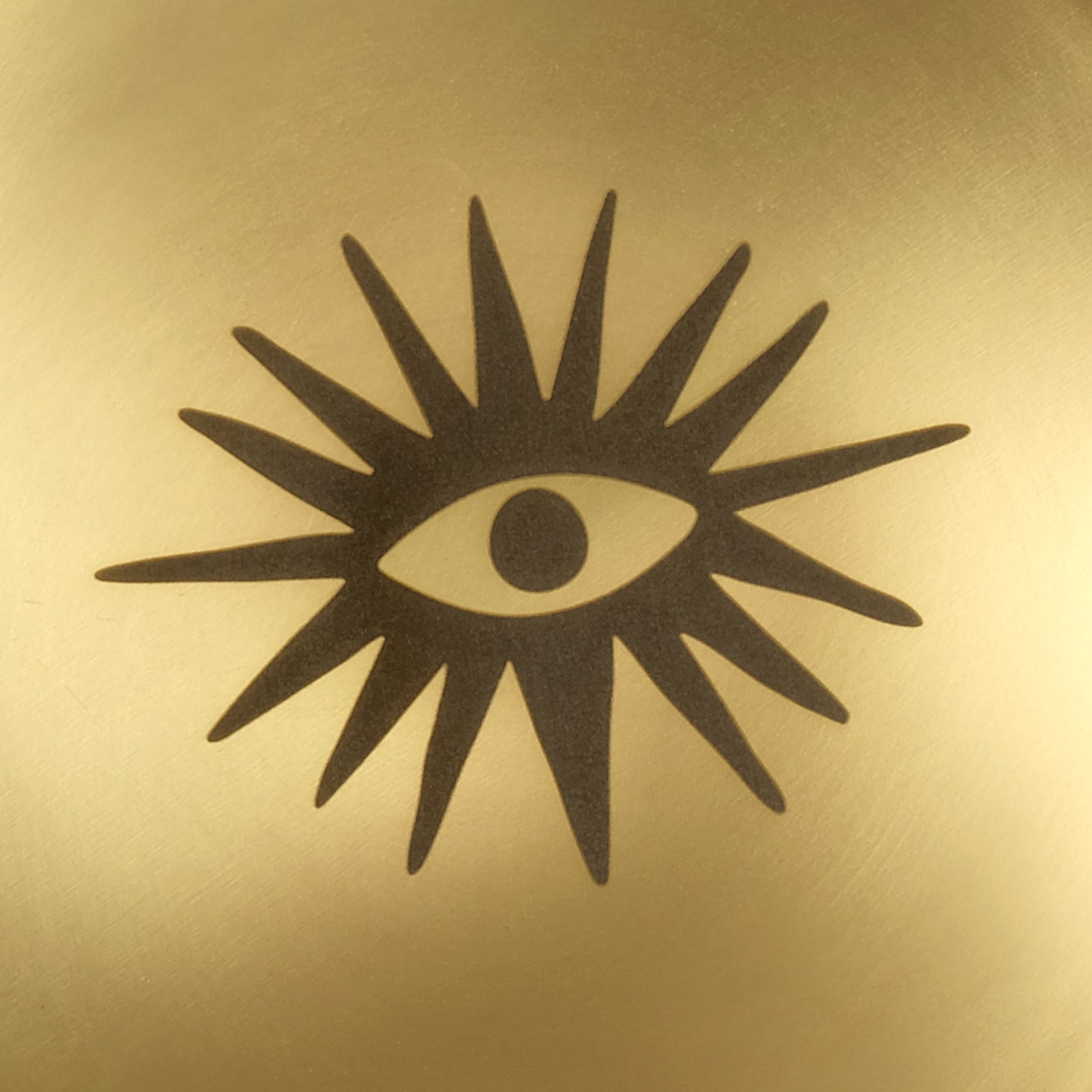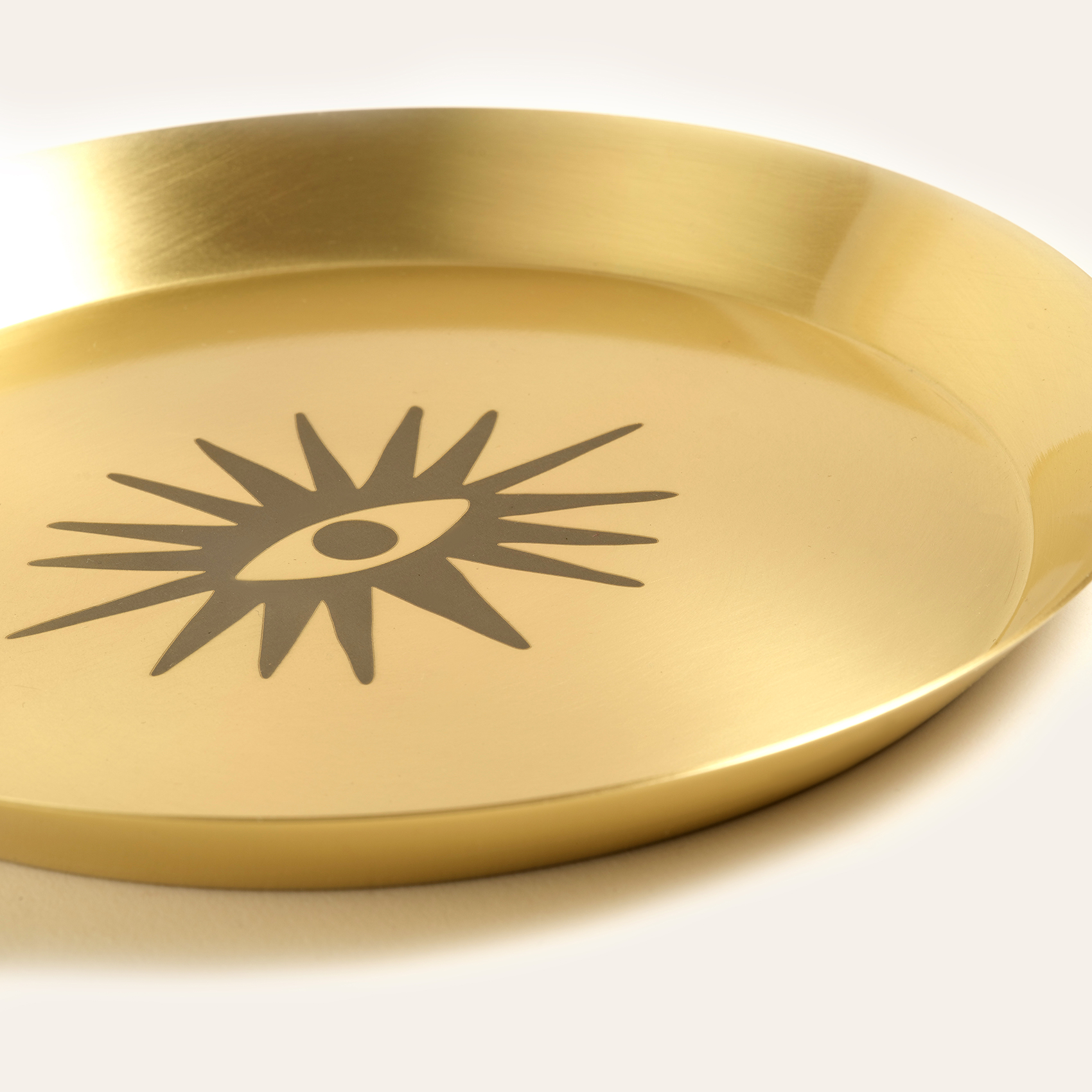 Blue koleksiyonunun ışıltılı karakteri, bu kez bir bakışla etkisini gösteriyor. Ortada, lazerin zarif dokunuşuyla altın yüzeye işlenmiş bir göz motifi var. Etrafına saçılan ışınlarla dikkat çekiyor, içsel bir ışığı ve sembolik gücü çağrıştırıyor. Zsa Zsa Zsu tasarım ekibinin özgün çizimi olan bu figür, sezgiyi, korumayı ve estetik duruşu aynı anda taşıyor. Emirgan pirinç tabak, için tasarlandı. Mat yüzeyi ışıkla dans ediyor, bulunduğu her alana canlılık ve karakter katıyor. Blue koleksiyonunun diğer parçalarıyla birleştiğinde sezgisel bir bütünlük kuruyor. Tek başına kullanıldığında ise enerjisiyle mekâna yön veren, stil sahibi bir objeye dönüşüyor.