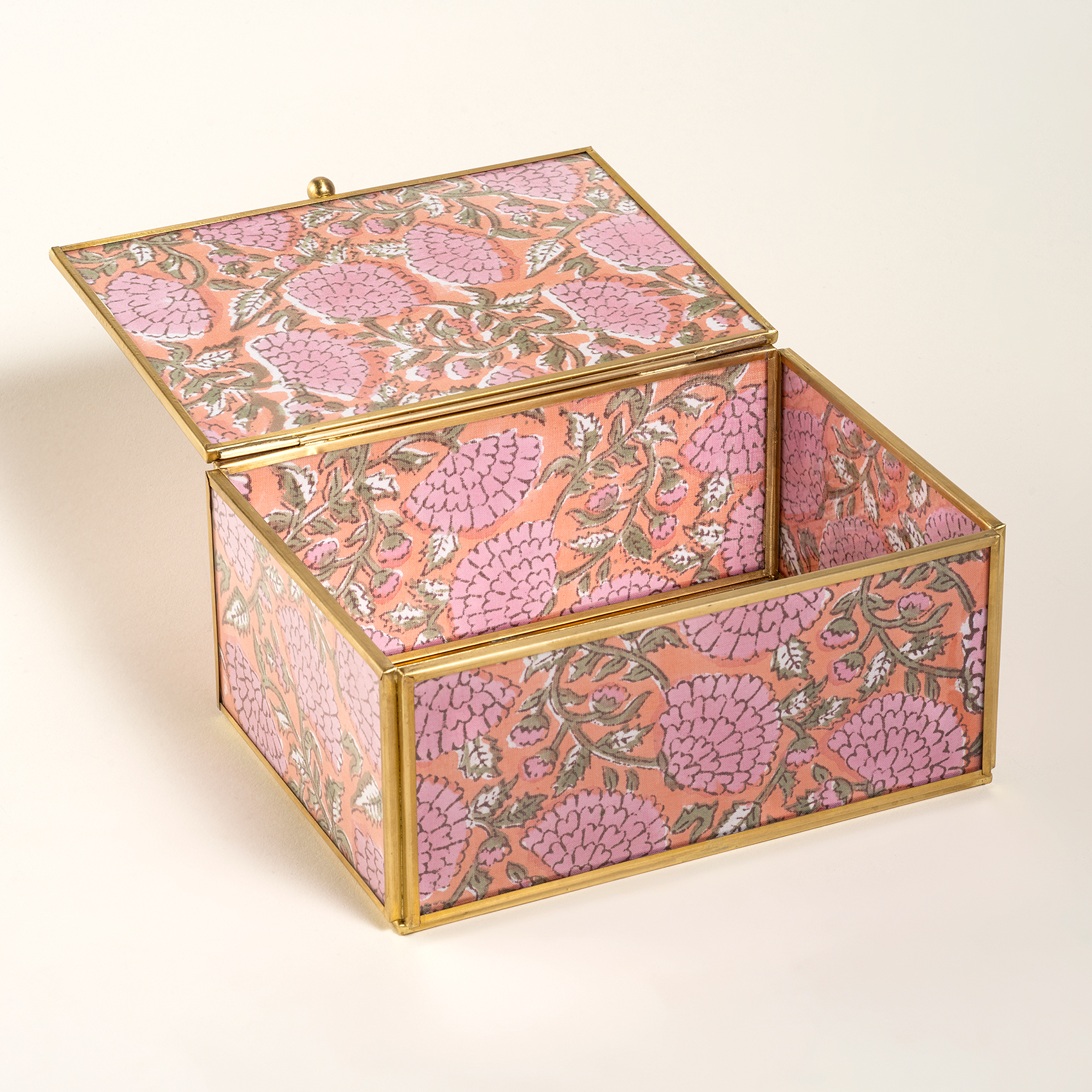 Heritage koleksiyonunun bir parçası olan Fagu cam dekoratif kutu, el işçiliği ve geleneksel Hint estetiğinin eşsiz bir birleşimini sunuyor. Pirinç, cam, kumaş ve aynanın uyumlu kullanımıyla üretilen bu zarif kutu, pembe-yeşil tonlarında çiçek desenleriyle süslenmiş kaplaması sayesinde yaşam alanlarınıza şıklık katıyor. Zanaatkarlığın nesiller boyu aktarılan ustalığı, bu kutunun her detayında kendini gösteriyor ve hem işlevsel hem de estetik bir obje olarak öne çıkıyor. Cam ve pirinç gibi dayanıklı malzemelerle üretilen bu dekoratif kutu, uzun yıllar boyunca kullanılabilir. Hint kültüründen ilham alan desenleri ve kumaş kaplaması, geçmişin hikayelerini bugünün modern dokunuşlarıyla buluşturuyor. İster takılarınızı saklamak ister özel anılarınızı bir arada tutmak için kullanın, bu kutu her zaman zarafetiyle göz alır. Ürünü doğrudan güneş ışığından ve nemden uzak tutarak koruyun. Temizliği yalnızca yumuşak, kuru bir bezle yaparak yüzeyindeki güzelliği muhafaza edin.