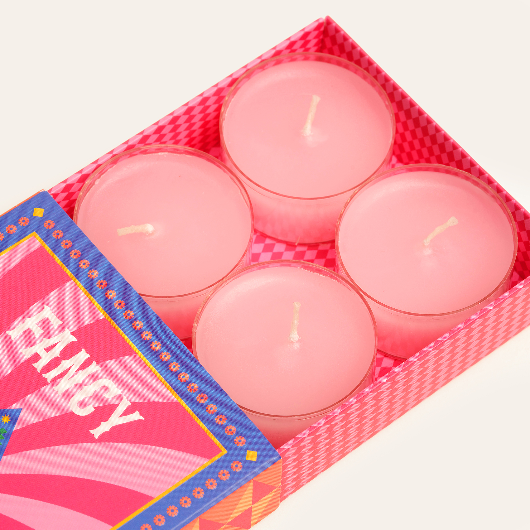 Fazladan bir dokunuş mu lazım? Fancy burada! Fancy 6’lı tealight mum, harika tasarımıyla ilk bakışta kendine aşık ediyor. Her biri 14 gr olan bu minik ama etkili mumlar, ideal koşullarda 5-6 saat boyunca ışıldayarak ortamınıza sofistike bir sıcaklık katıyor. Ama işin en eğlenceli kısmı: Fancy’nin kutusu! Funfair koleksiyonunun renkli ruhundan ilham alan bu capcanlı tasarım, pembe ve mavinin çılgın dansıyla hem retro hem modern bir enerji yayıyor. Sadece bir mum seti değil, adeta masanıza konuk olacak minik bir parti katılımcısı. Kaliteli parafinden üretilen Fancy tealight mum ile biraz eğlenceye, biraz da Zsa Zsa Zsu’ya ne dersiniz?