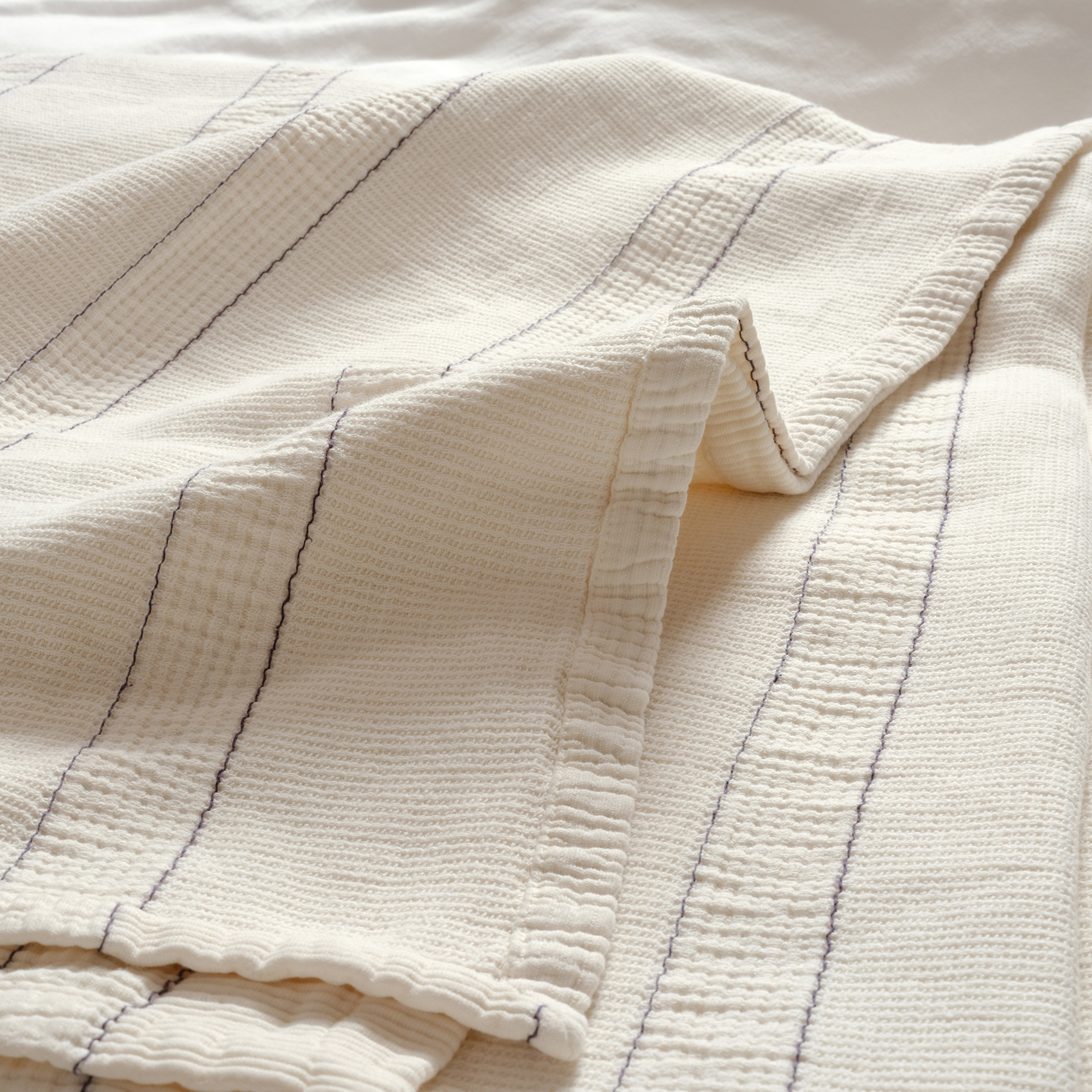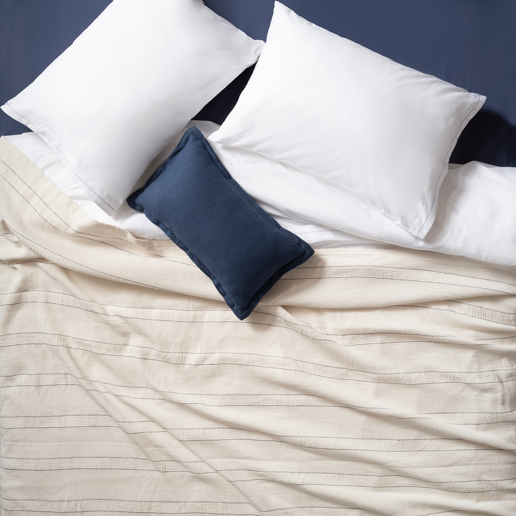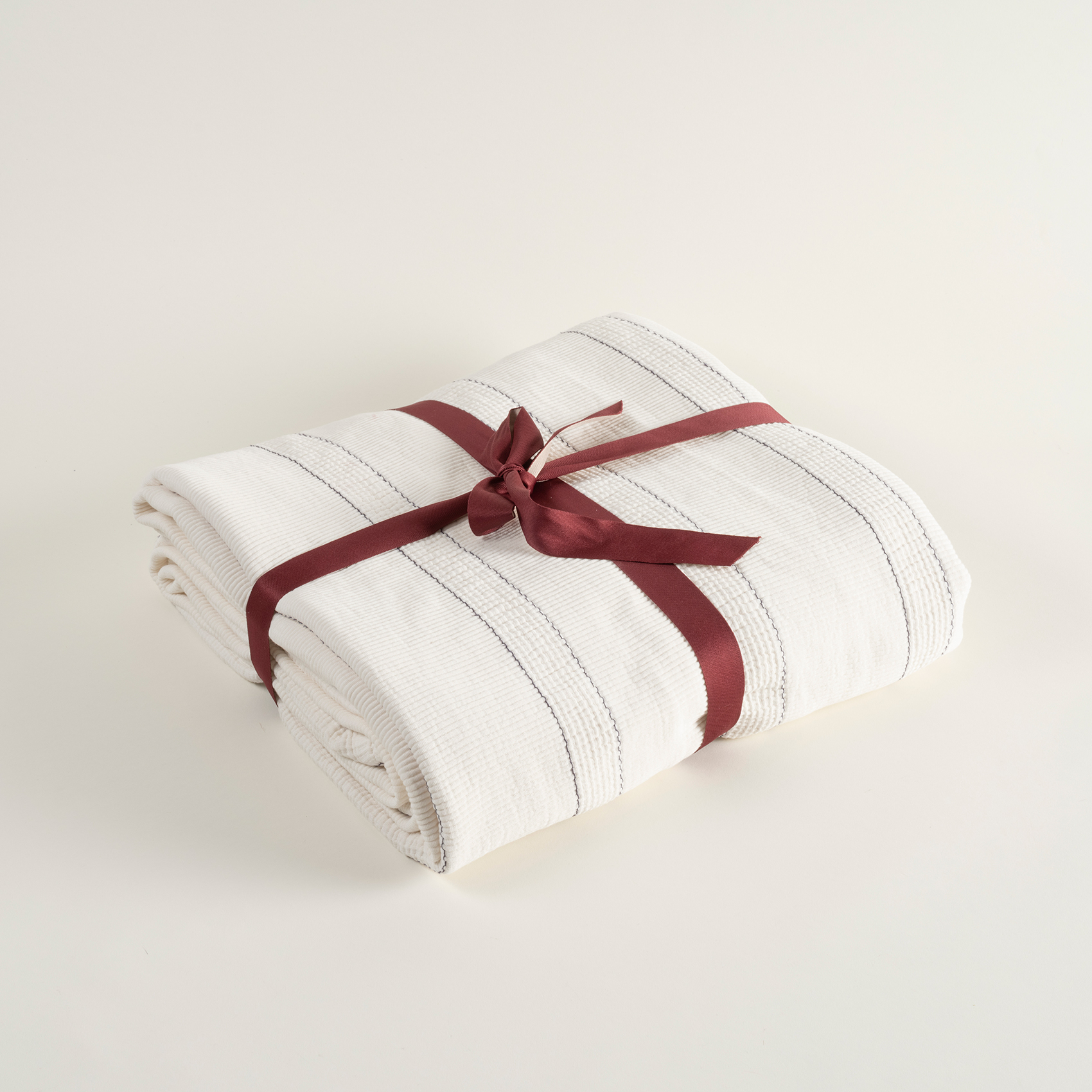 Faro İplik Boyalı Tek Kişilik Pamuk %100 Pamuk Yatak Örtüsü 160x240 Cm Beyaz - Lacıvert