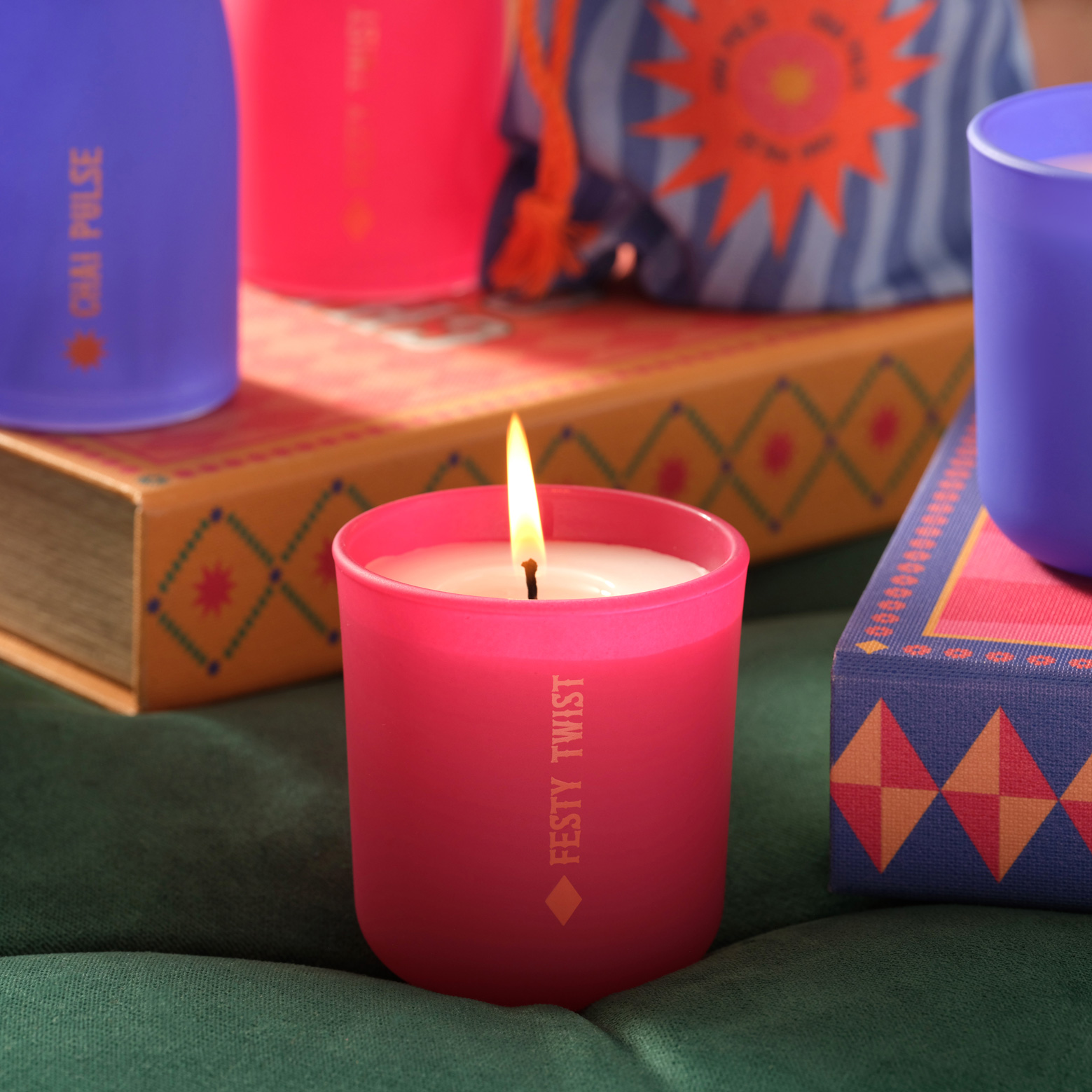 Festy Twist kokulu mum evinizi aydınlatırken kış festivali havasında bir atmosfer yaratıyor. Mumu yaktığınızda ilk olarak bergamot, mandalina ve lime’ın canlandırıcı kokusu ortamı dolduracak. Ardından vanilya ve orkidenin kremsi uyumu, etrafa tatlı bir sıcaklık yayacak. Miskin rahatlatıcı ve kalıcı dokunuşu ise evinize huzurlu bir kış masalı yaşatacak. Parafinden üretilen Festy Twist mum, yaklaşık 30 saat boyunca yanar; ancak ortam koşullarına göre yanma süresi değişiklik gösterebilir.