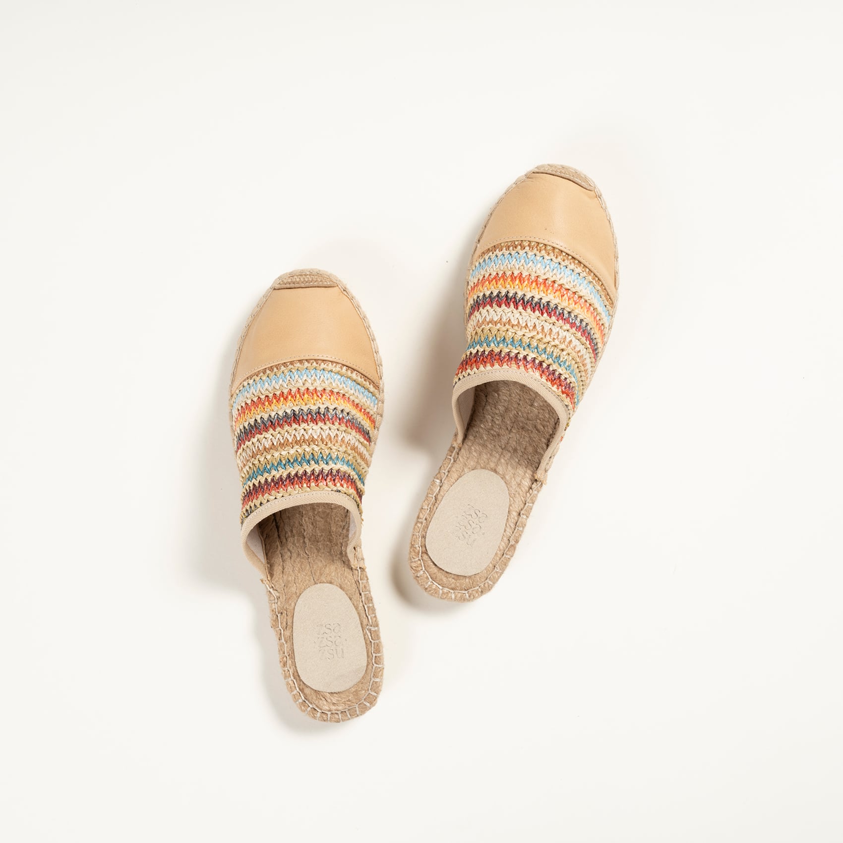 Florya terlik, usta zanaatkârlar tarafından üretiliyor. Terliğin rafya üst bölümünde yer alan ve Heritage koleksiyonunun eklektik stilini yansıtan renkli nakış desenler, yaz stilinize otantik bir dokunuş katmak üzere özel olarak tasarlandı. Florya, hafif jüt tabanı sayesinde gün boyu konforlu bir kullanım sunuyor.