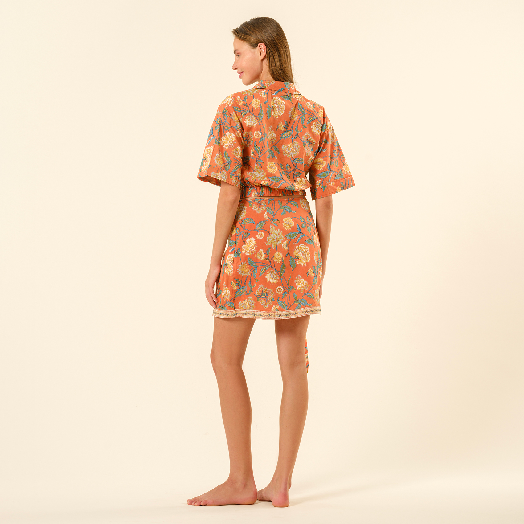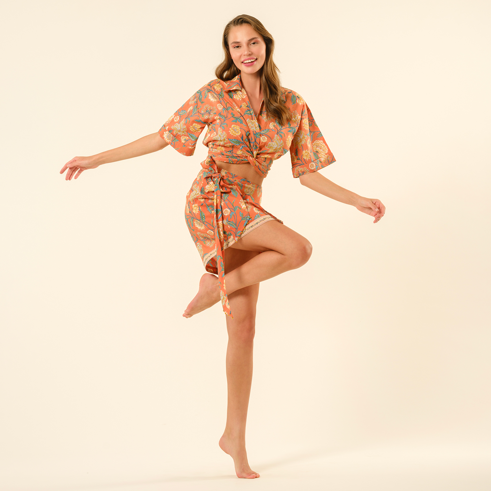 Gaya baskılı %100 pamuk mini etek, Hindistan’ın geleneksel blok baskı sanatından ilham alan desenleri ve cesur renkleriyle her adımda bir keşif hissi yaratıyor. Saf pamuk dokusu vücudu hafifçe sararken, capcanlı motifleri enerjinizi yükseltiyor. Gaya, sizi durağanlıktan uzaklaştırıp, rüzgarın ritmiyle hareket etmeye davet eden bir tasarım. Sabahın ilk ışıklarında hafif bir meltem gibi taze, gün batımında altın rengi bir özgürlük hissi kadar cesur. İster şehirde sanatsal bir mola, ister sahil kenarında spontane bir dans… Gaya, her anınıza ilham veren bir dokunuş katıyor.
