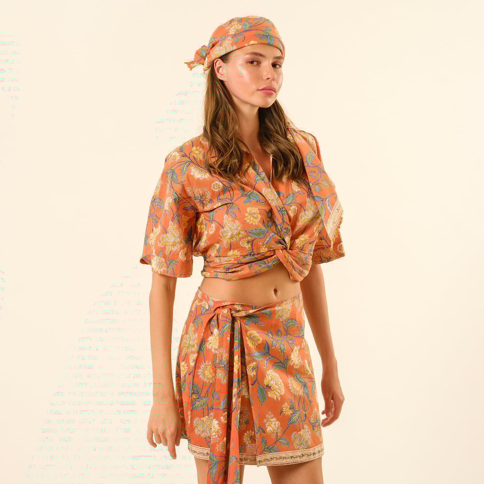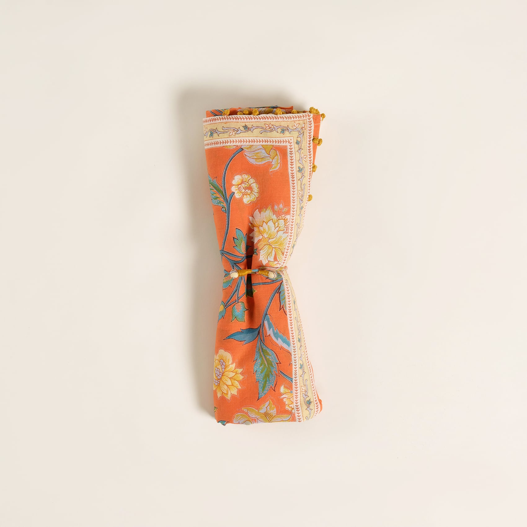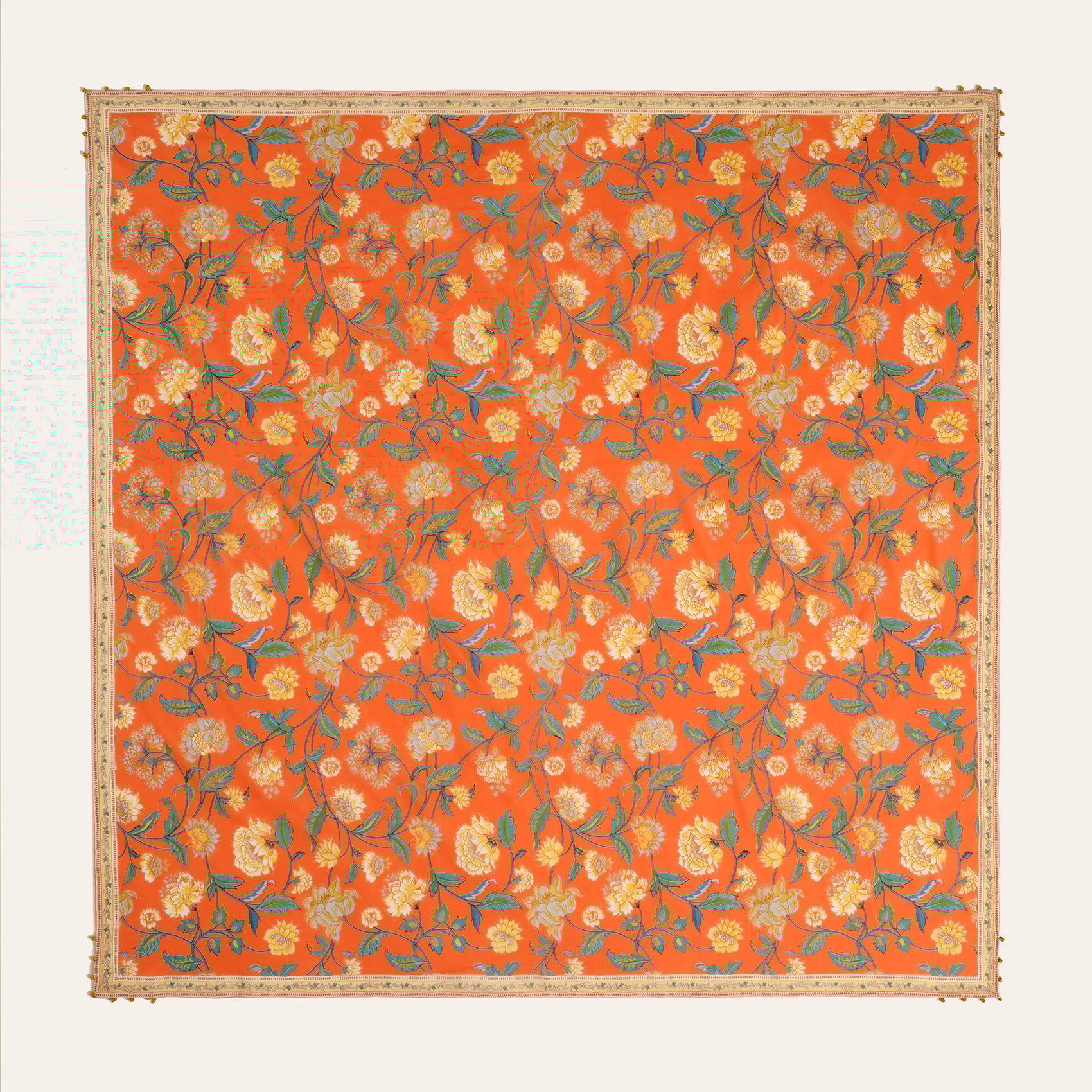 Gaya baskılı kenar ponponlu %100 pamuk şal, Hindistan’ın geleneksel block print sanatını alıp ona yepyeni bir ruh katıyor! Sıcak turuncu tonları ve el işçiliğiyle işlenen desenleriyle stilinize enerji, hafif pamuk dokusuyla gün boyu konfor getiriyor. Kenarlarını süsleyen ponponlar her hareketinizde ritme eşlik ederken, bu şalı omuzlarınıza atabilir, saçlarınıza bağlayabilir ya da belinize dolayarak kendi tarzınızı yaratabilirsiniz. Gaya, geçmişten ilham alırken anı yaşayanların, özgür ruhların ve stilinde eğlenceye yer açanların favorisi olmaya aday!