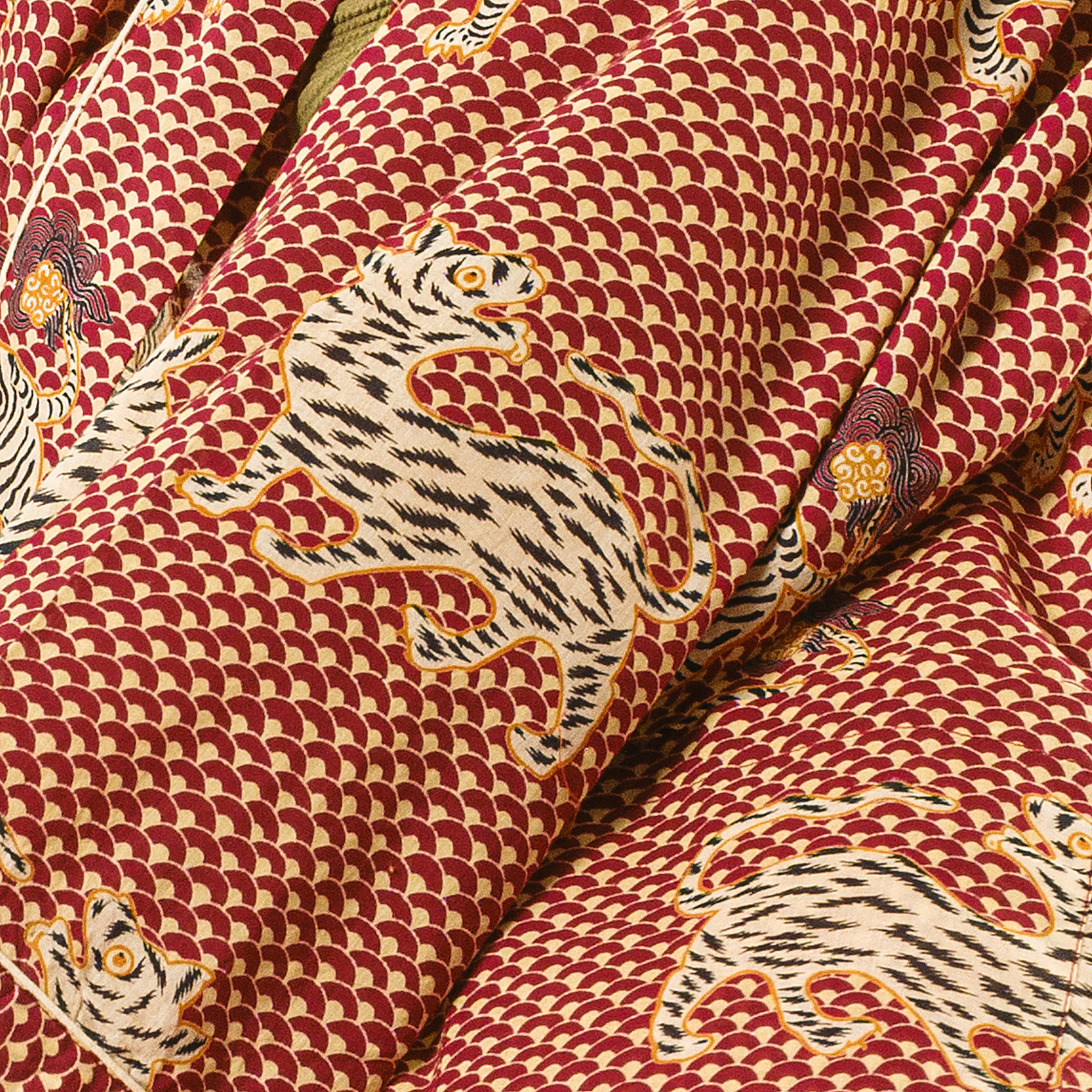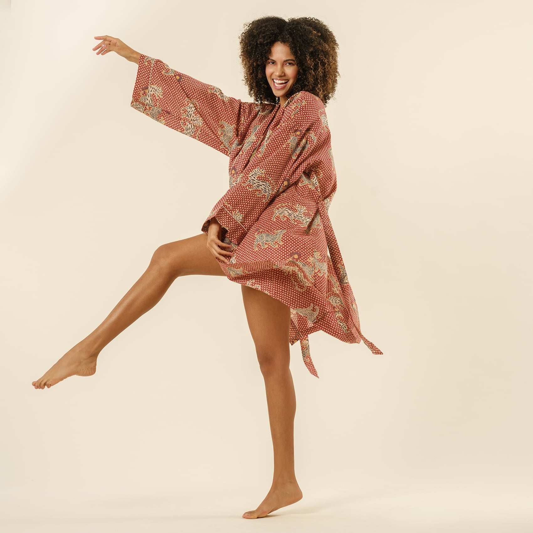 Gaya El Baskısı Pamuk Kimono Standart Beden Kırmızı