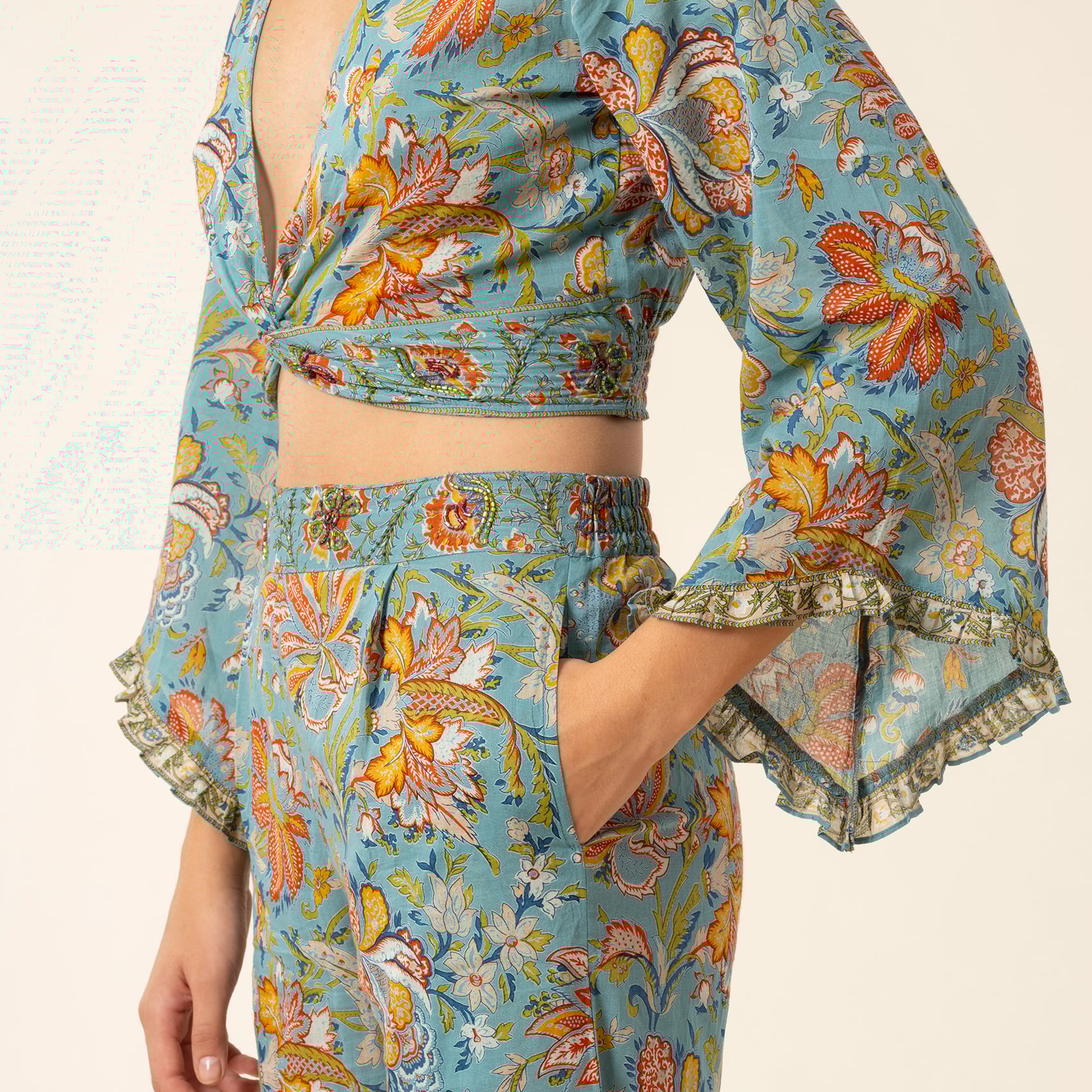 Gaya El Baskısı Pantolon - Turkuaz