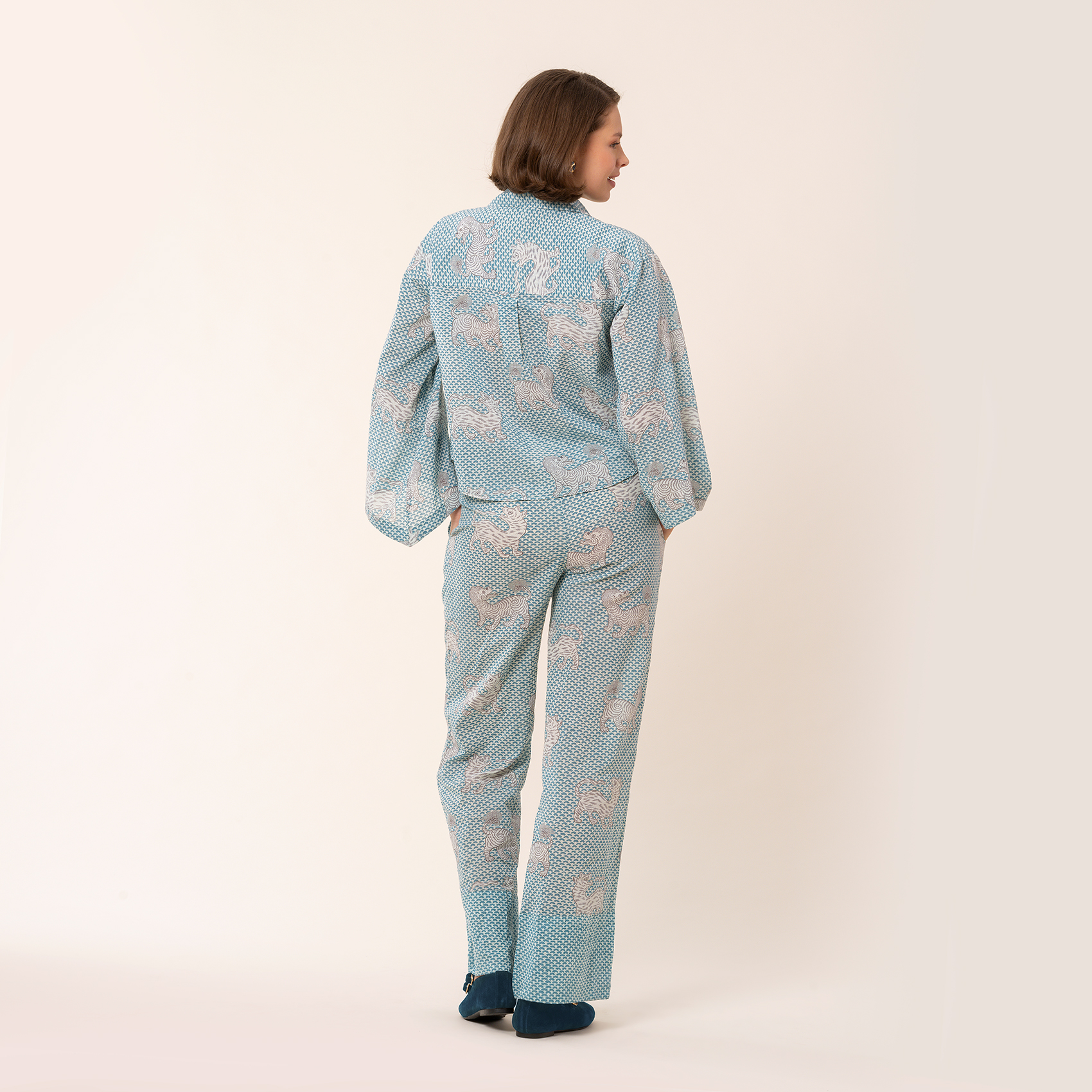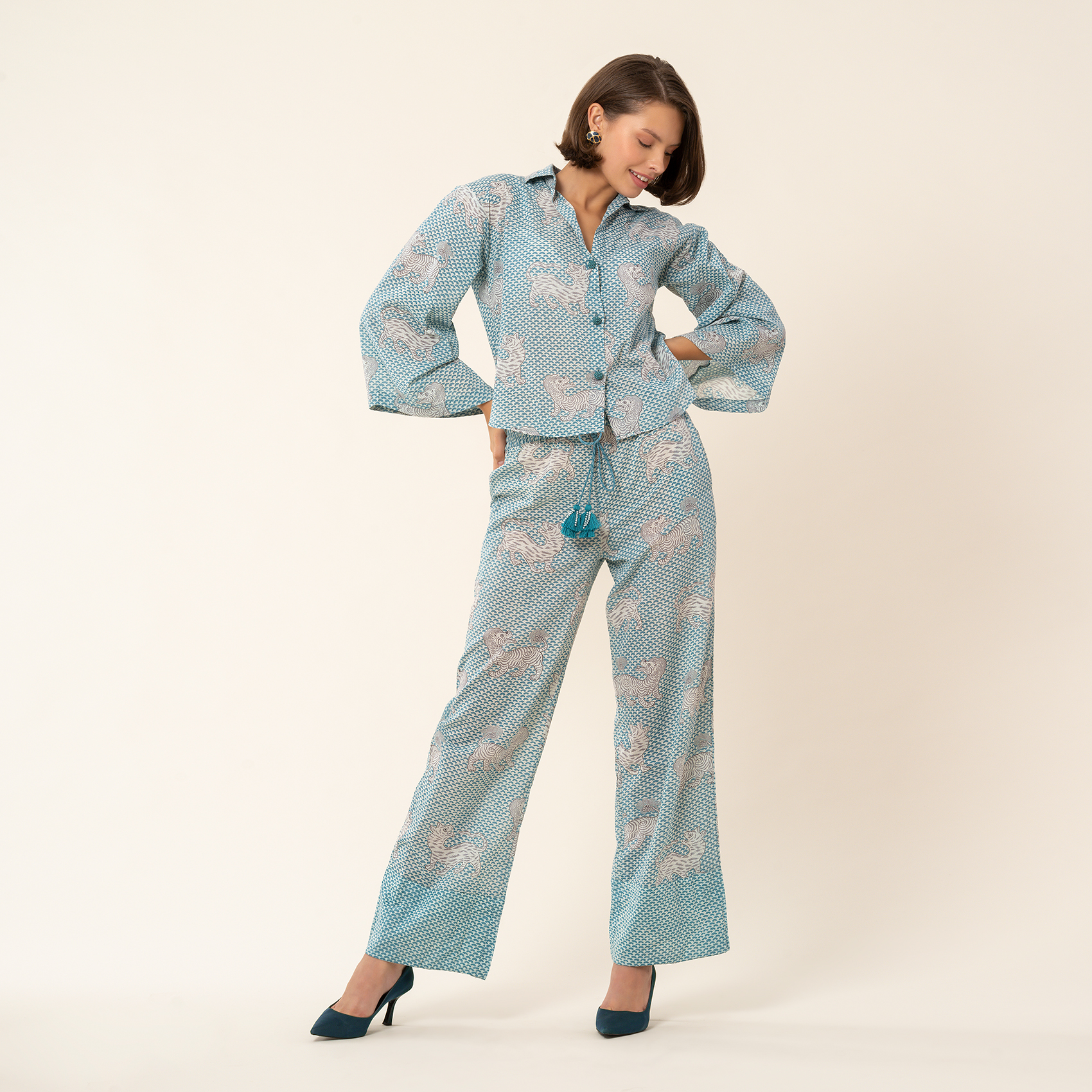 Heritage koleksiyonunun ruhunu yansıtan Gaya pantolon, Hindistan’ın otantik blok baskı geleneğiyle şekilleniyor. %100 pamuk kumaşın hafif ve nefes alan dokusu, gün boyu konfor sağlarken yeşil zemin üzerine işlenen desenler modern bir özgürlük ifadesine dönüşüyor. Rahat kesimi hareket alanınızı artırıyor, beldeki bağcık detayı ise stilinize enerjik bir dokunuş katıyor.