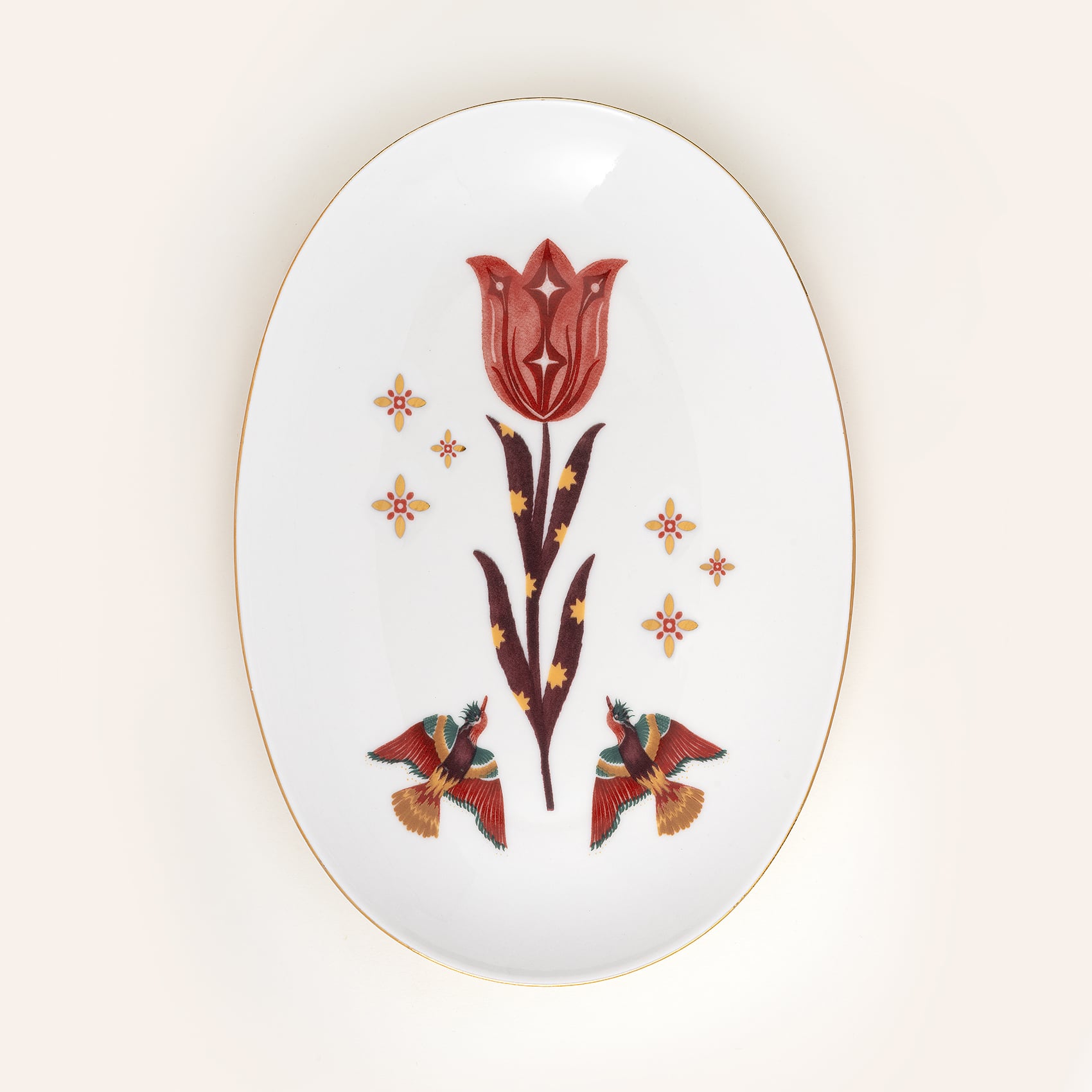 Zsa Zsa Zsu’nun ilham dolu Maximalist koleksiyonunda yer alan Gediz porselen oval tabak, geleneksel estetiği çağdaş bir yorumla buluştururken, renklerin uyumu ve deseninin detaylarındaki inceliğiyle adeta bir sanat eserini andırıyor. Hem estetik hem de işlevsel özellikleriyle ilk bakışta dikkat çeken bu tabak, yemek sunumlarınıza zarif bir dokunuş katmak, servis anlarınızı daha da şık hale getirmek üzere tasarlandı. Kendine özgü stiliyle benzersiz bir zarafet sunan Gediz porselen oval tabak Türkiye’de üretilmiştir.