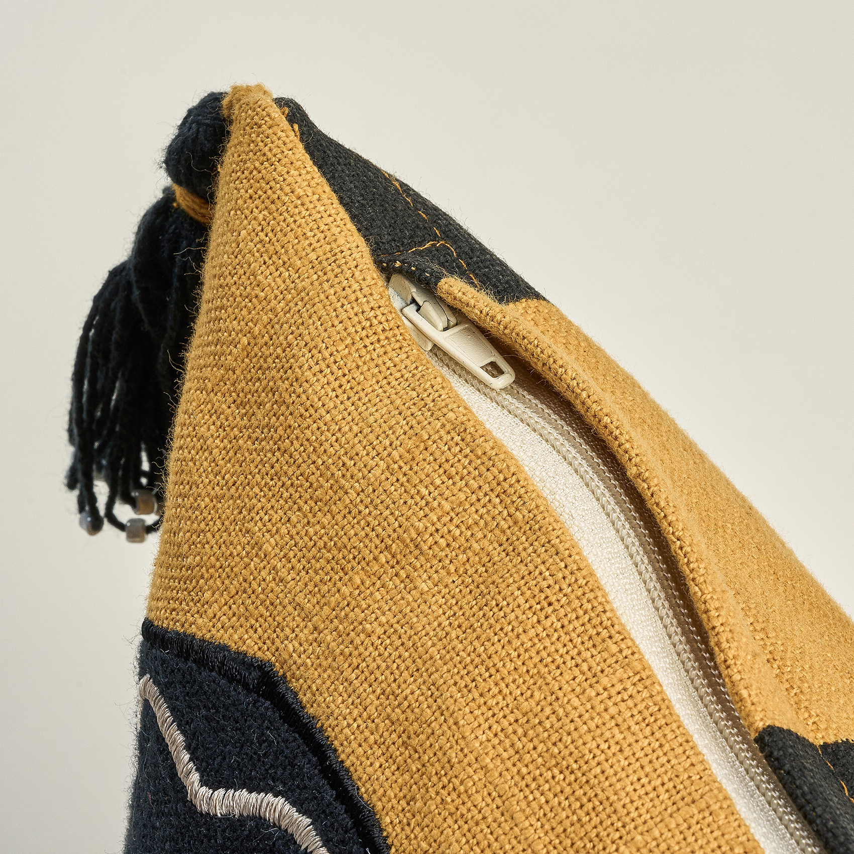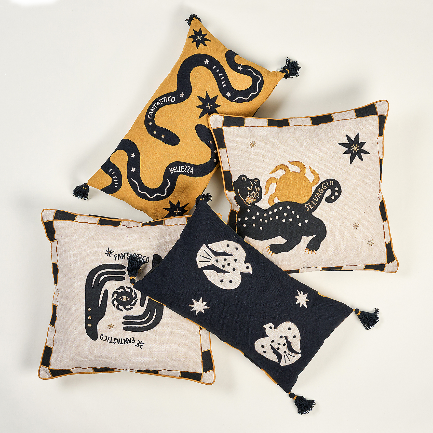 Ghuni kırlent, Bold koleksiyonunun cesur enerjisini %100 pamuk kumaşın üzerinde yaşatan özel bir tasarım. Aplike desenlere baktığında, sanki her an hareket edecekmiş gibi duran canlı bir ifade karşılıyor seni; köşelerdeki püsküllere iliştirilen minik boncuklar ise tasarıma hafifçe göz kırpan bir detay ekliyor. Kırlenti eline aldığında boncukların çıkardığı ince ses beklenmedik bir sıcaklık yayıyor. Yumuşak pamuk dokusu bu enerjiyi zarif bir hisle tamamlıyor ve Ghuni bulunduğu ortama renk, özgünlük ve yaratıcı bir canlılık taşıyarak her seferinde kendine özgü bir karakter sunuyor. Hindistan’da usta artizanlar tarafından üretildi; yalnızca kuru temizleme yapılmalıdır.
