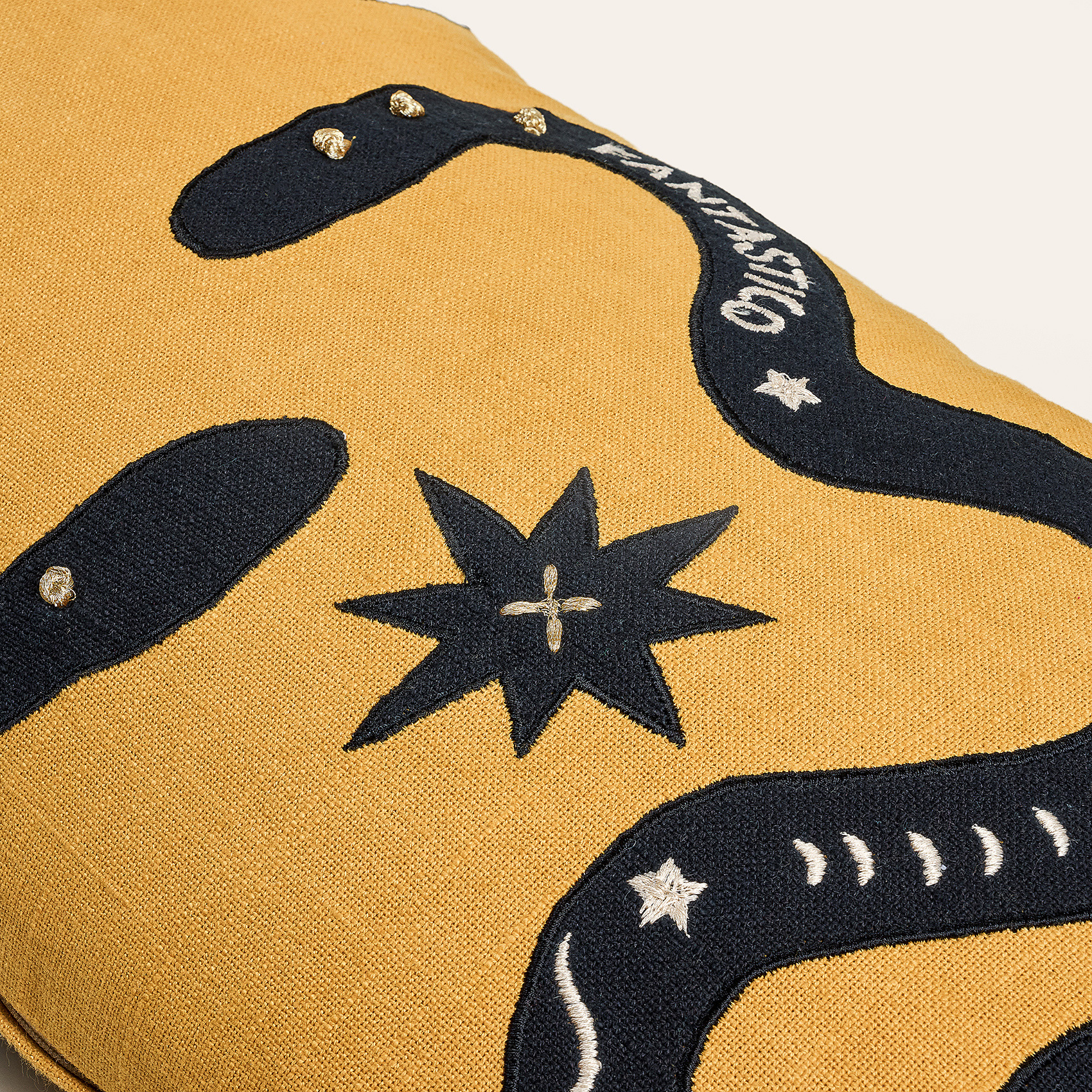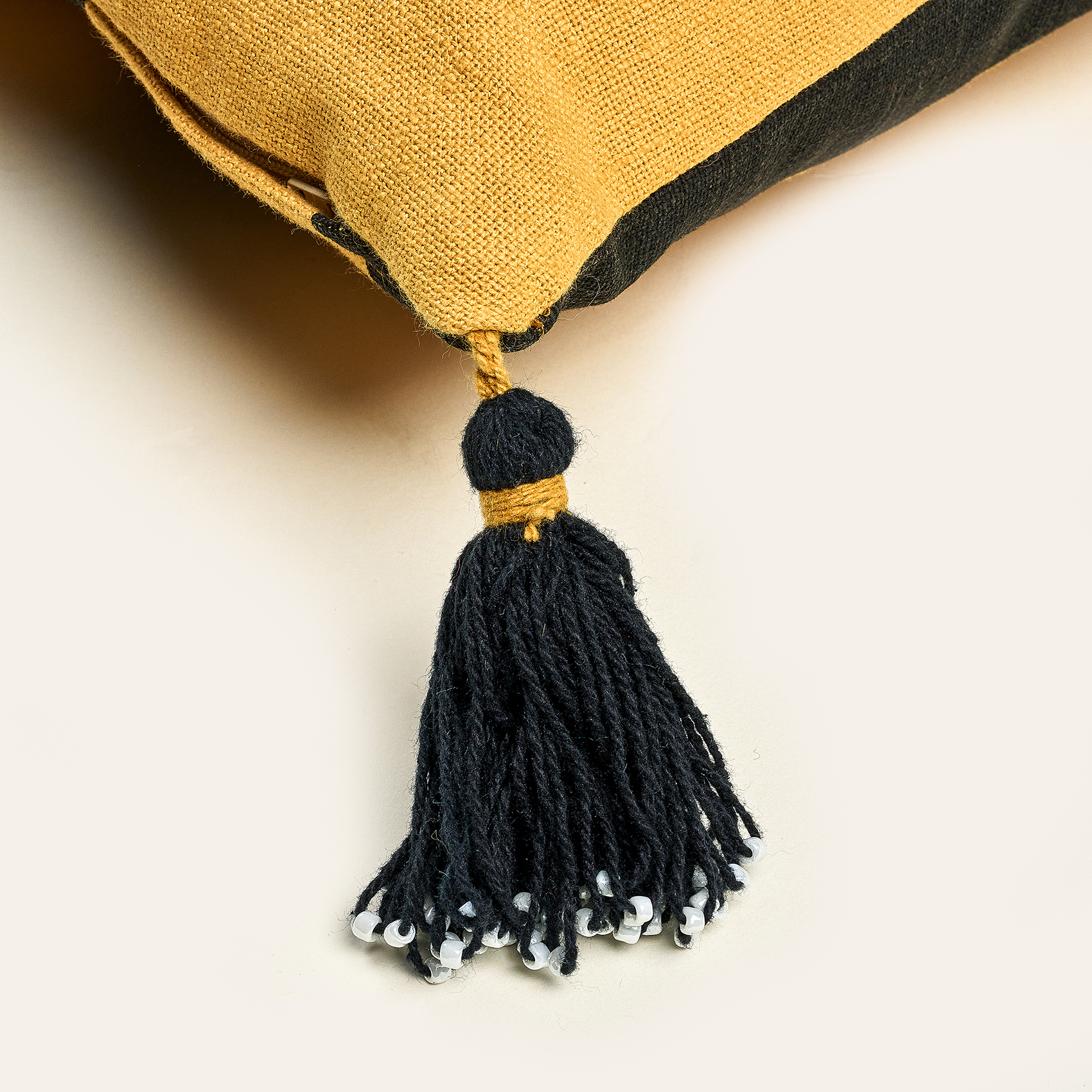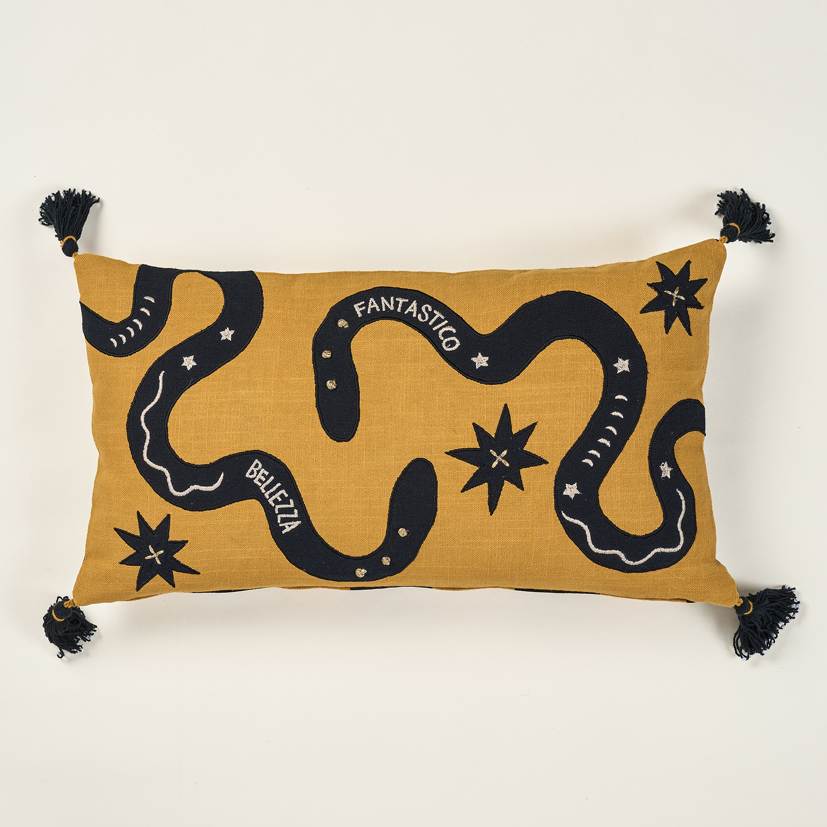 Ghunı Aplikeli Pamuk Dolgulu Kırlent 30x55 Cm Sarı