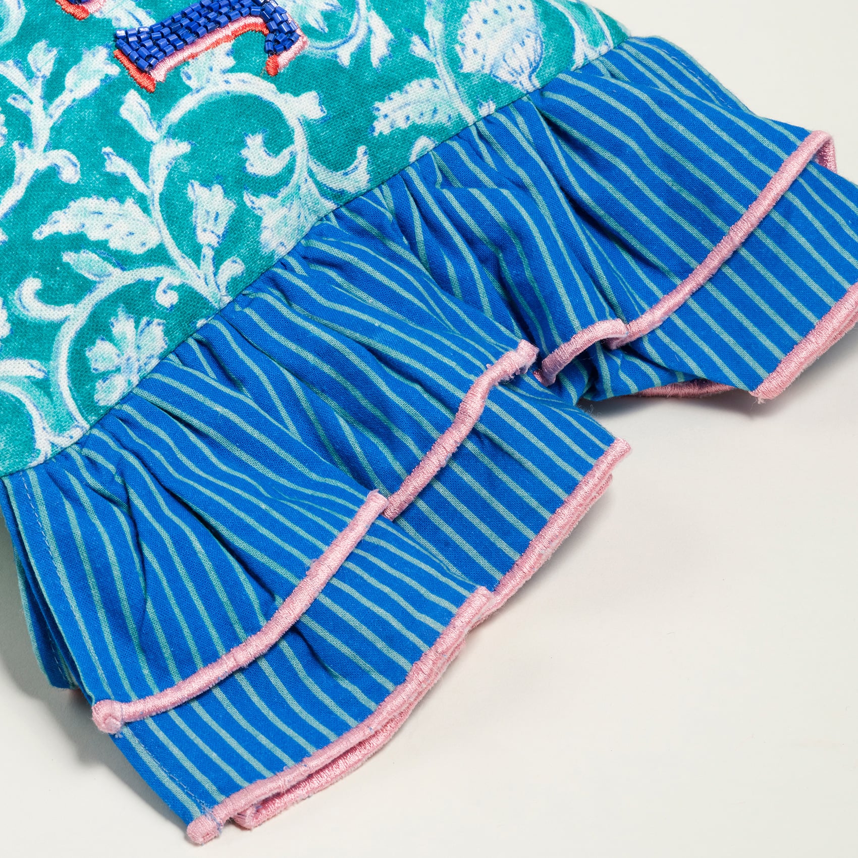 Ghunı Fırfırlı Nakışlı Pamuk Dolgulu Kırlent 20x55 Cm Mavi