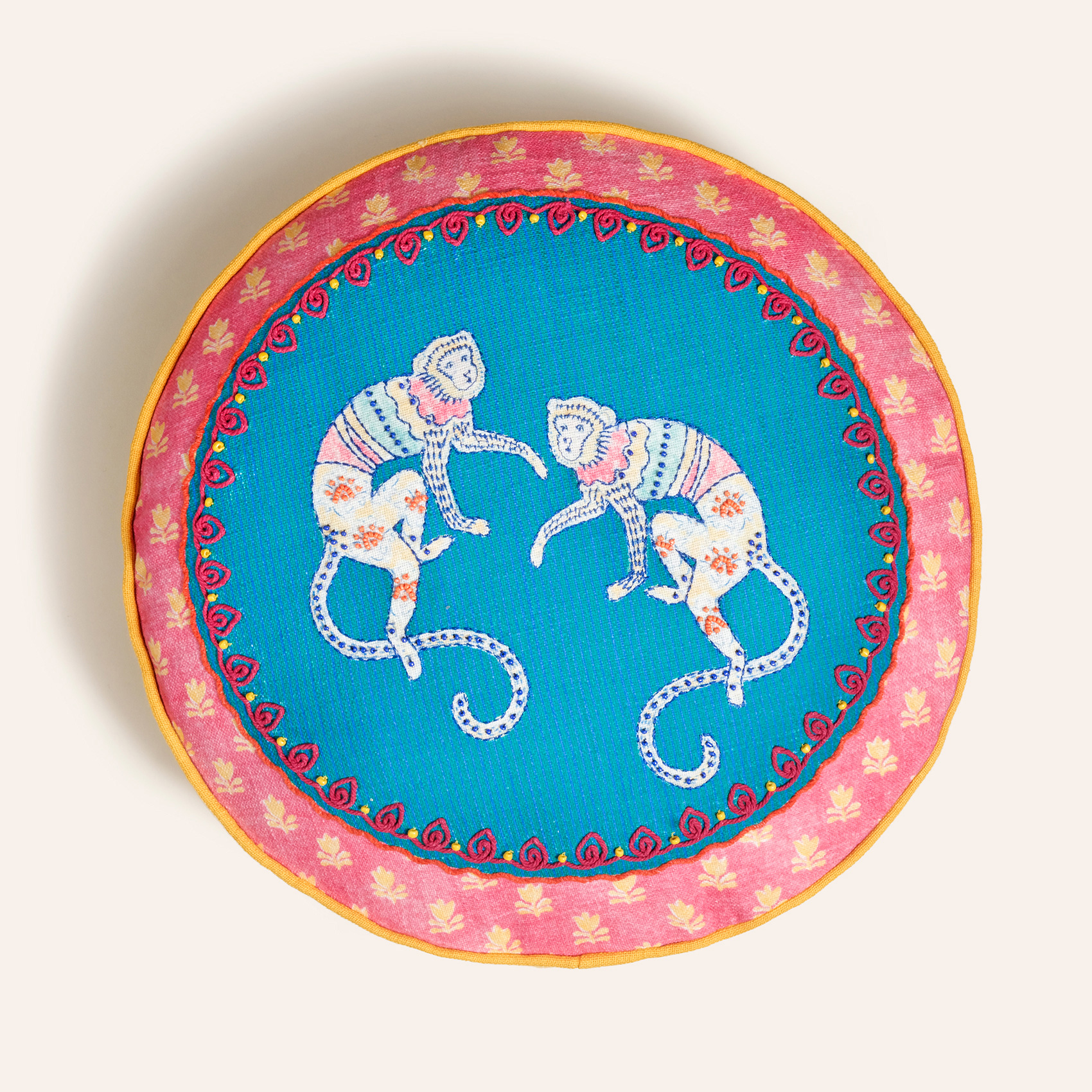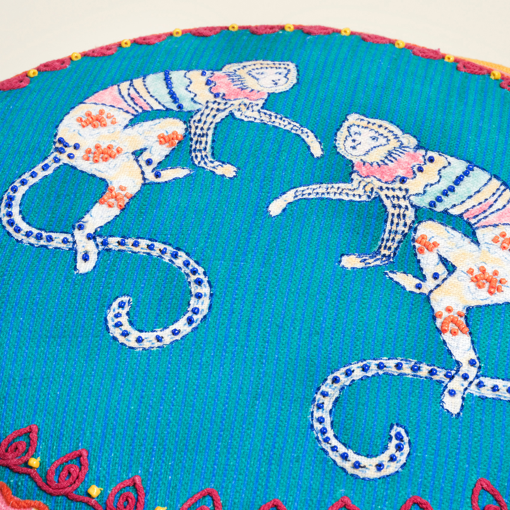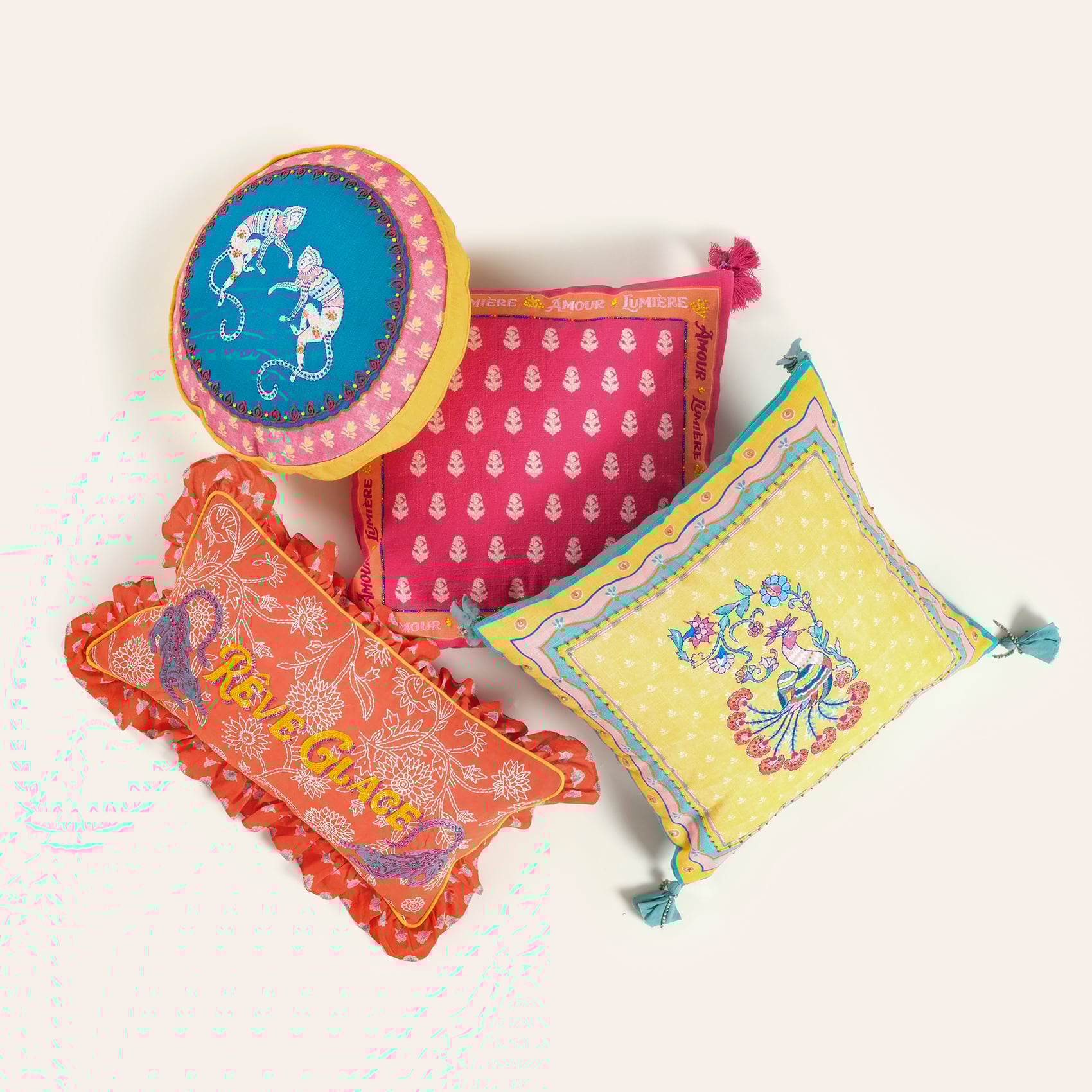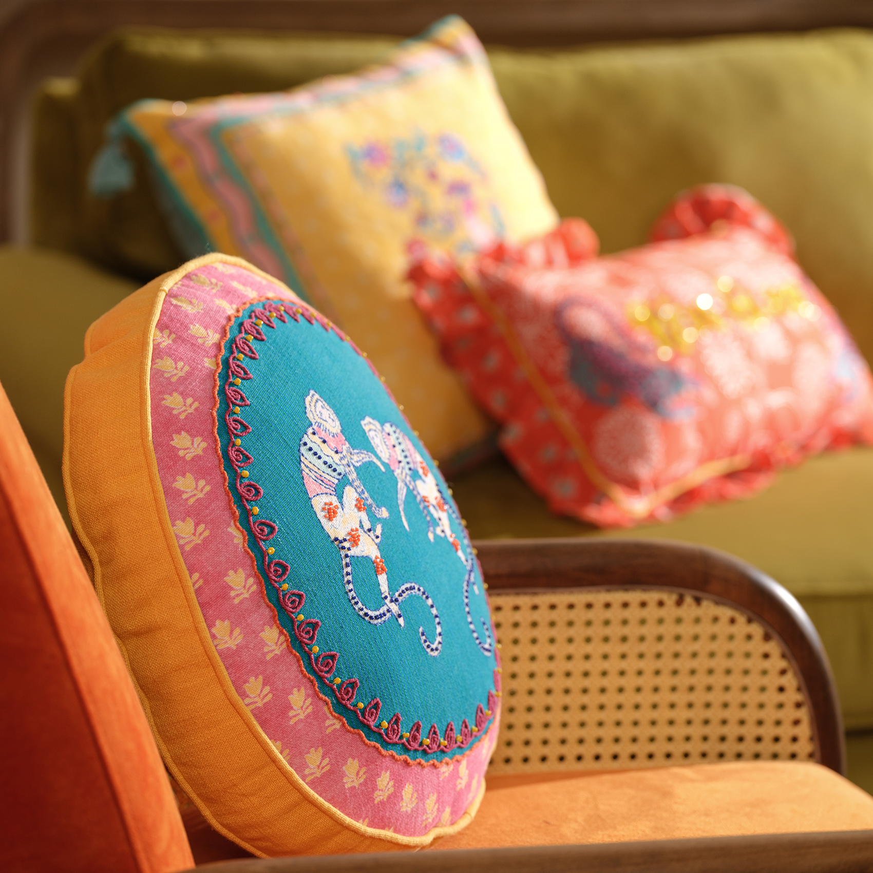 Kim bilir ne konuşuyorlar? Belki biraz dedikodu, belki de dekorasyona neşe katmanın en yaratıcı yolları üzerine tatlı bir sohbet... 40 cm çapındaki yuvarlak Ghuni nakışlı kırlent, hem otantik hem de fazlasıyla stil sahibi. Ama en önemlisi, karakter dolu ve sevimliliğini gizlemeye hiç niyeti yok. Tasarımı Zsa Zsa Zsu ekibinin hayal gücünde doğdu, detayları Hindistan’daki artizanların zarif işçiliğiyle tamamlandı. %100 pamuk kumaştan üretildi. Heritage koleksiyonunun ilham veren dünyasından gelen bu parça, evinize oyunbaz bir yorum katmak için sabırsızlanıyor.