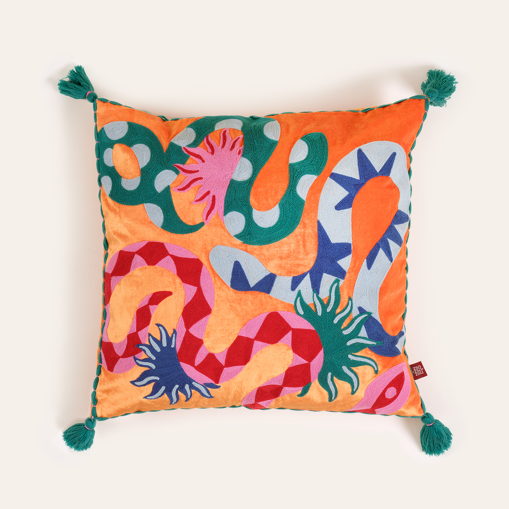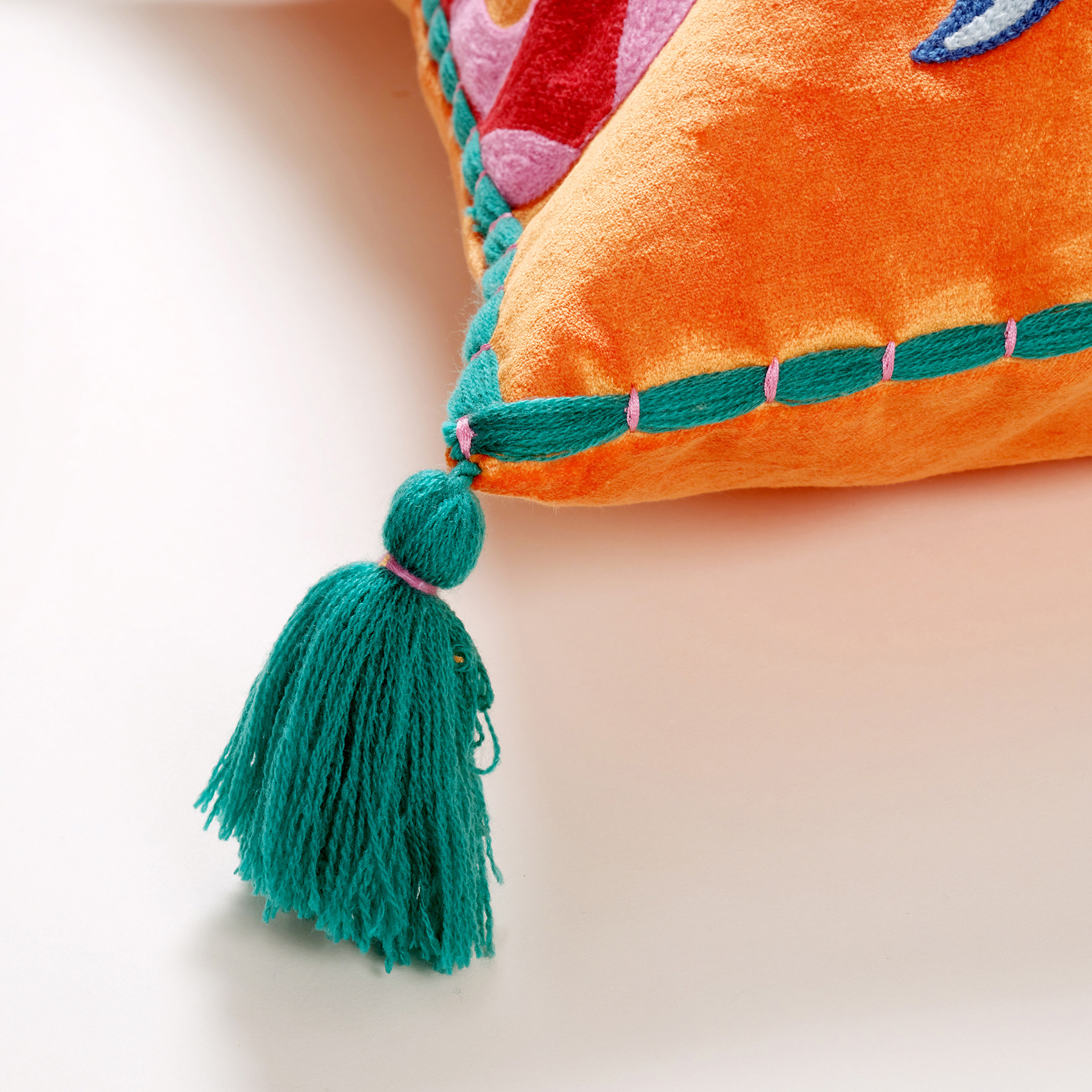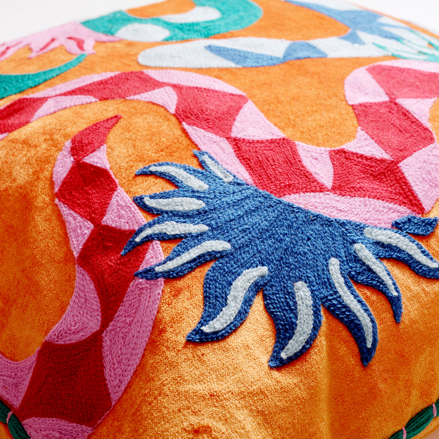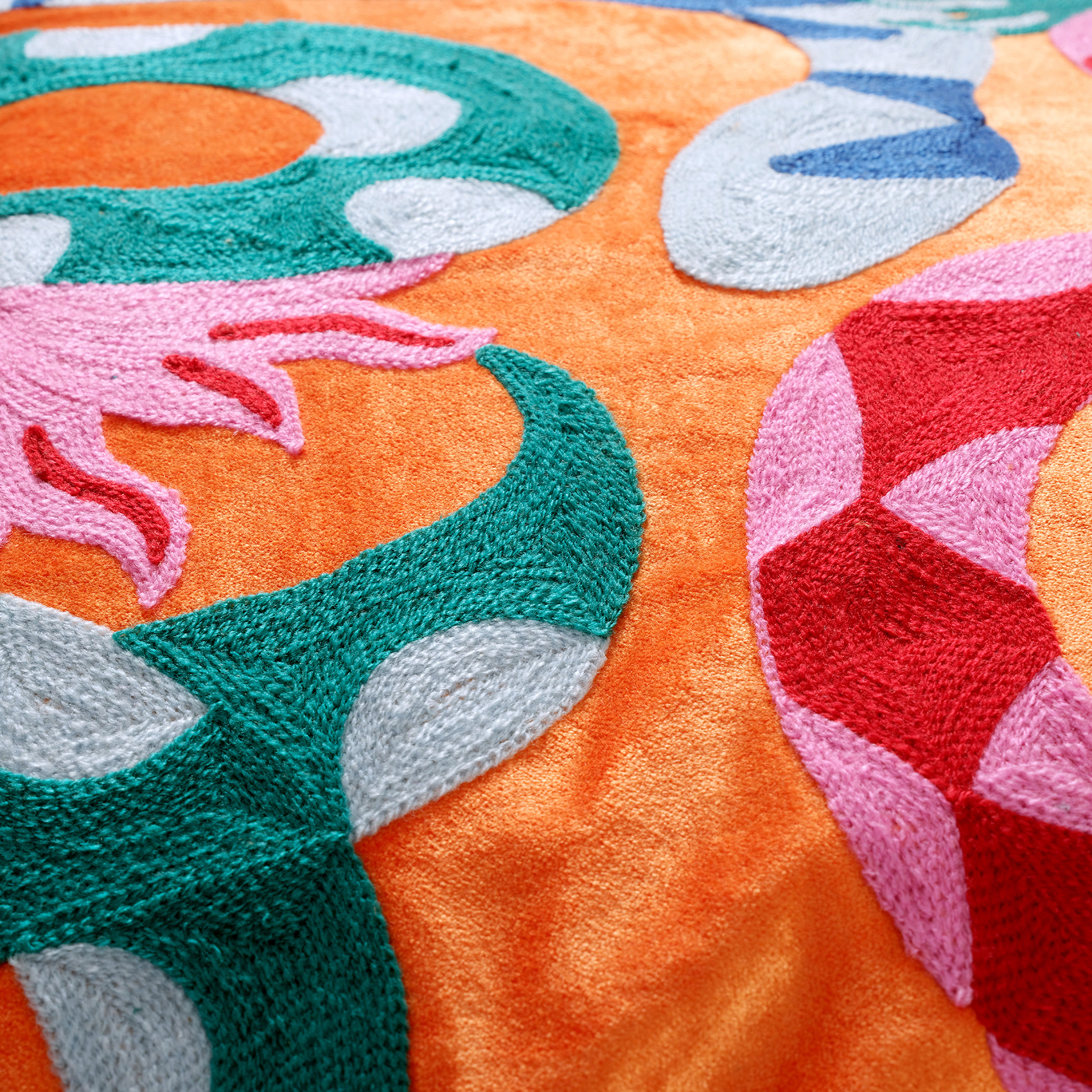 Ghunı Nakışlı Viskon Pamuk Kadife Dolgulu Kırlent 50x50 Cm Turuncu
