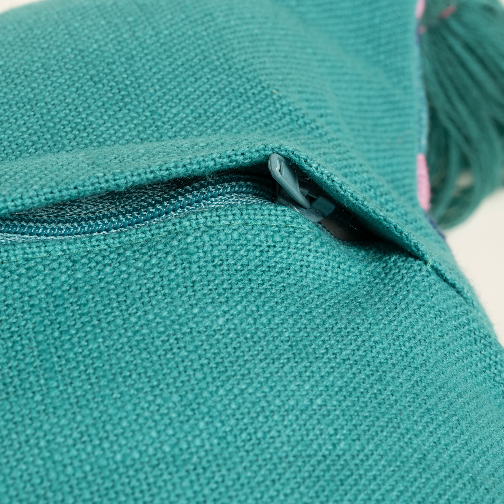 Ghunı Püsküllü Nakışlı Pamuk Dolgulu Kırlent 30x55 Cm Yeşil
