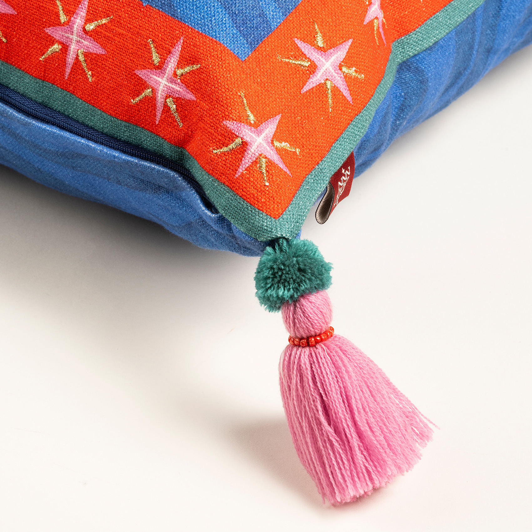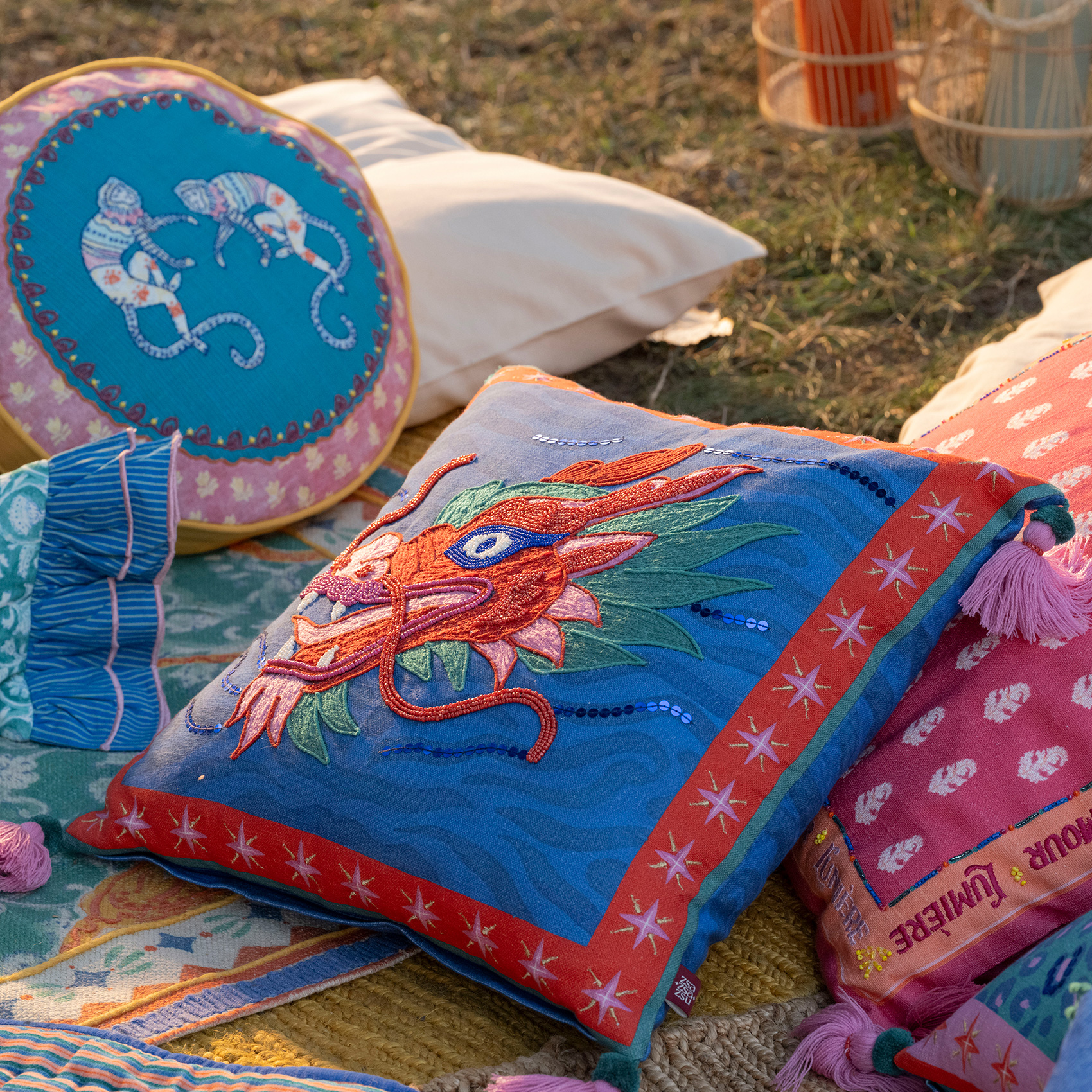 Ghuni, Maximalist koleksiyonun hayal gücünü harekete geçiren dünyasından geliyor. Figüratif nakışlar, boncuk süslemeler ve püsküllerle bezenmiş bu tasarım, mekâna anında hareket katıyor. Zsa Zsa Zsu’nun yaratıcı ekibi tarafından tasarlandı, Hindistan’daki usta zanaatkârların özeniyle üretildi. Yüzeyi %100 pamuk, dolgusu yumuşak ve konforlu. Ghuni sıradan bir kırlent değil. Bulunduğu her köşeye oyunbazlık, stil ve yüksek enerji taşıyor.