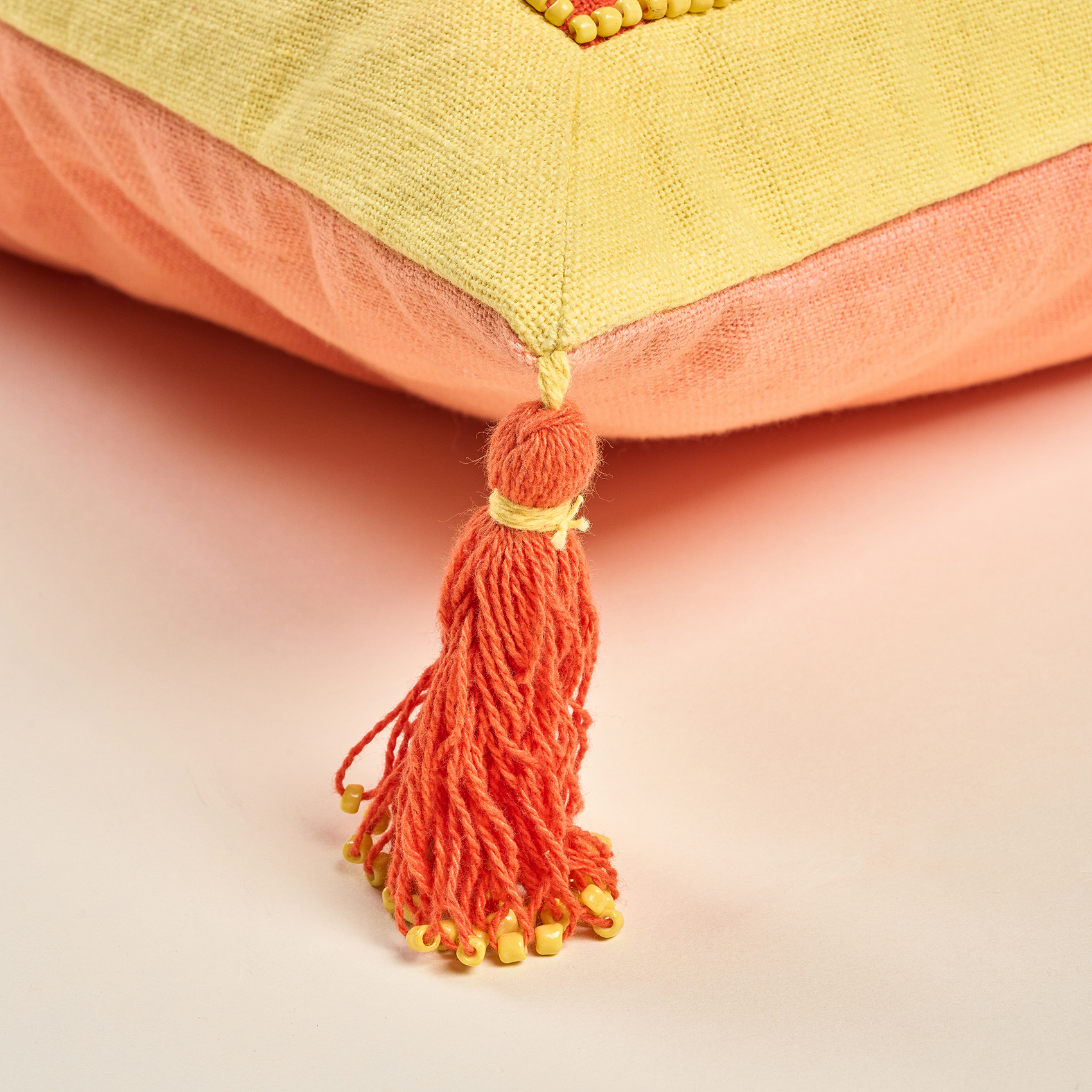 Heritage koleksiyonunun sıcak tonlarla bezeli ruhu, Ghuni kırlentin turuncu pamuk yüzeyinde canlı bir sahne gibi beliriyor. %100 pamuk dokunun doğal hissi, el işçiliği nakışlarla birleşerek tasarıma hem kültürel bir derinlik hem de güçlü bir ifade kazandırıyor. Merkezdeki kompozisyon, geleneksel motiflerin modern bir yorumla yeniden doğmuş hali gibi; köşelerdeki püsküller ise kırlentin enerjisini yumuşak ve ritmik bir harekete dönüştürüyor. Kanepeye, koltuğa ya da sakin bir köşeye bırakıldığında bulunduğu alanı sıcaklık, renk ve sofistike bir karakterle dolduruyor. Hindistan’da usta artizanlar tarafından üretilmiştir; kuru temizleme yapılmalıdır.