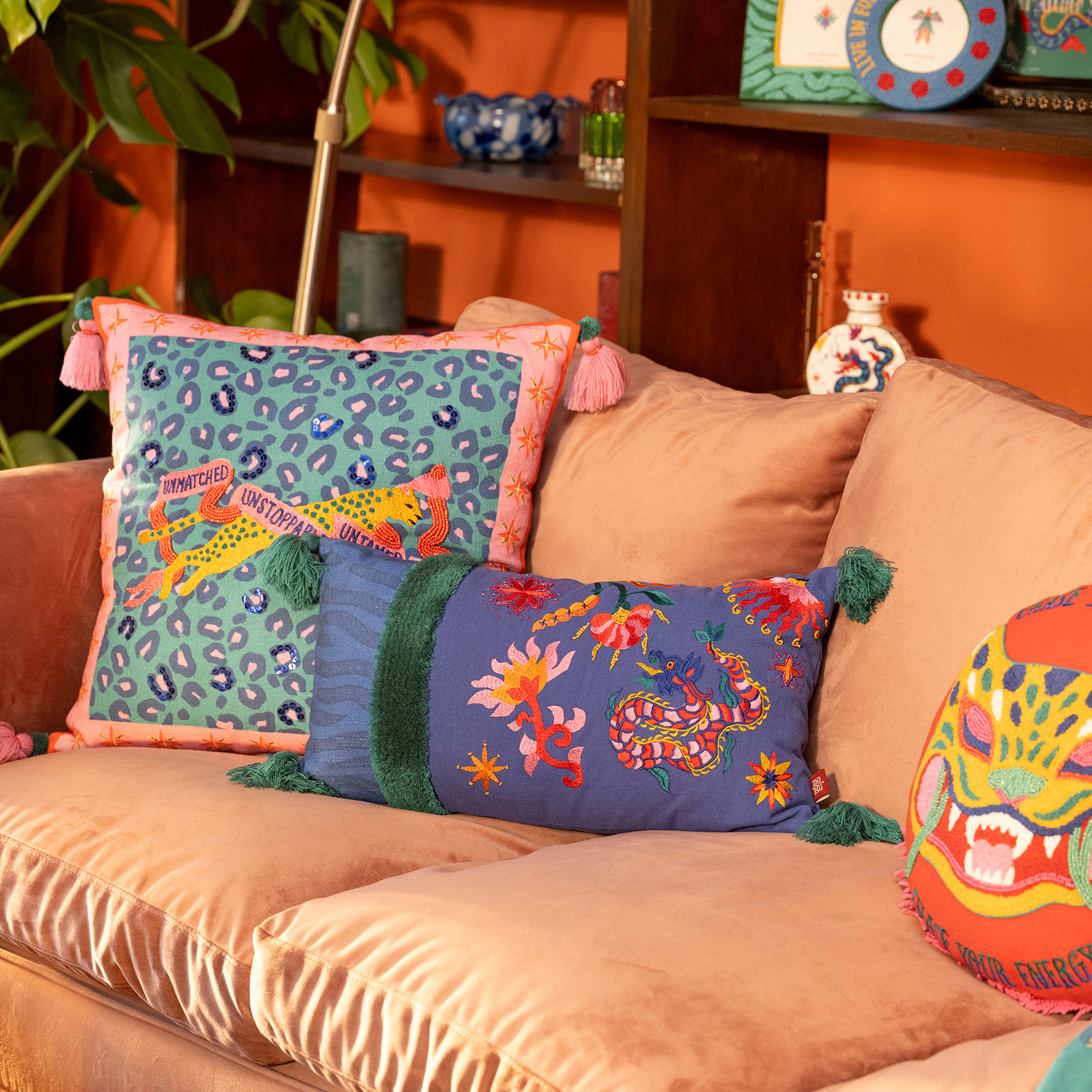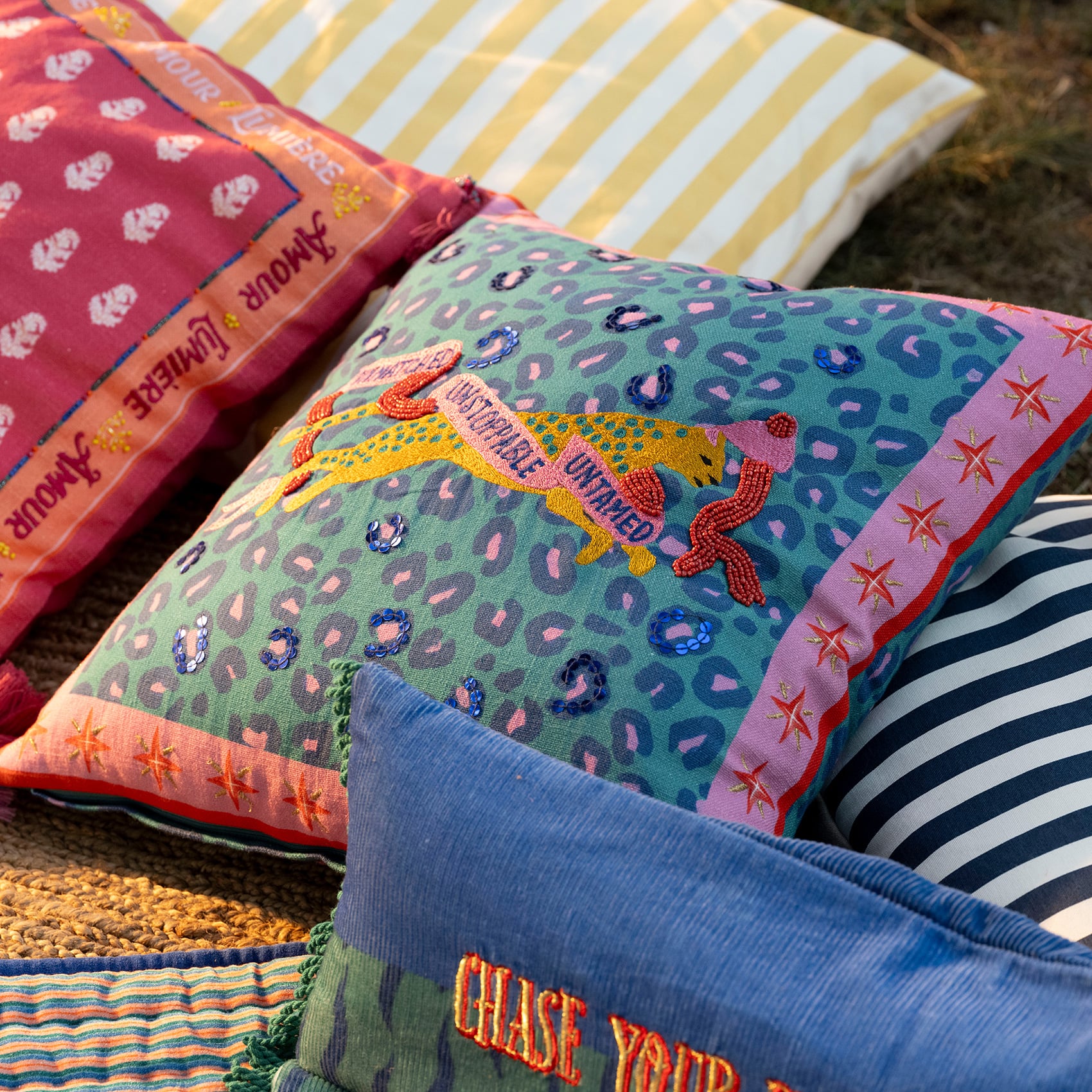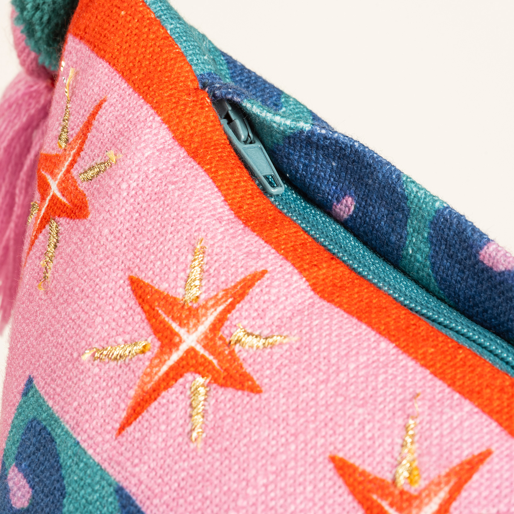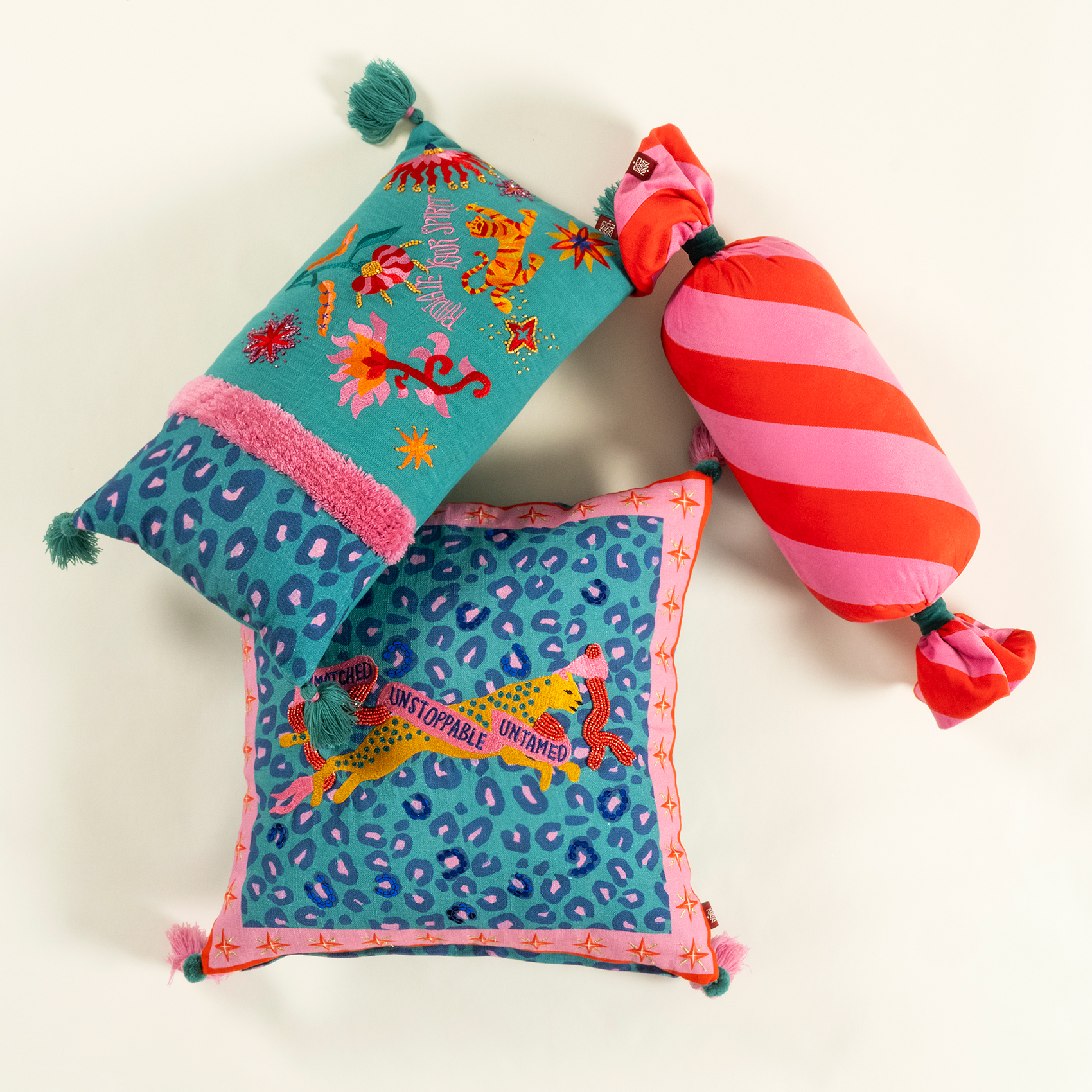 Ghuni, Maximalist koleksiyonun hayal gücünü harekete geçiren dünyasından geliyor. Figüratif nakışlar, boncuk süslemeler ve püsküllerle bezenmiş bu tasarım, mekâna anında hareket katıyor. Zsa Zsa Zsu’nun yaratıcı ekibi tarafından tasarlandı, Hindistan’daki usta zanaatkârların özeniyle üretildi. Yüzeyi %100 pamuk, dolgusu yumuşak ve konforlu. Ghuni sıradan bir kırlent değil. Bulunduğu her köşeye oyunbazlık, stil ve yüksek enerji taşıyor.