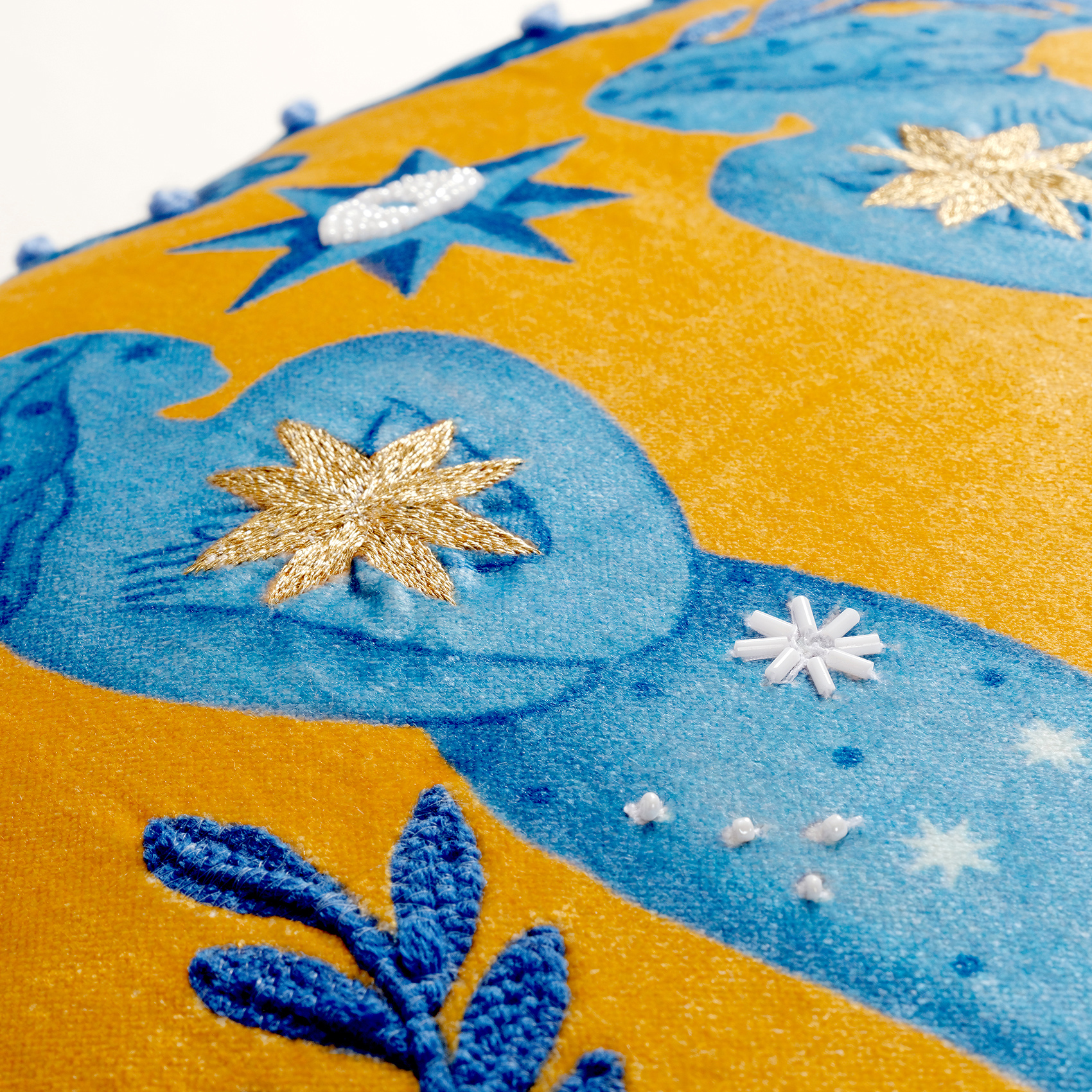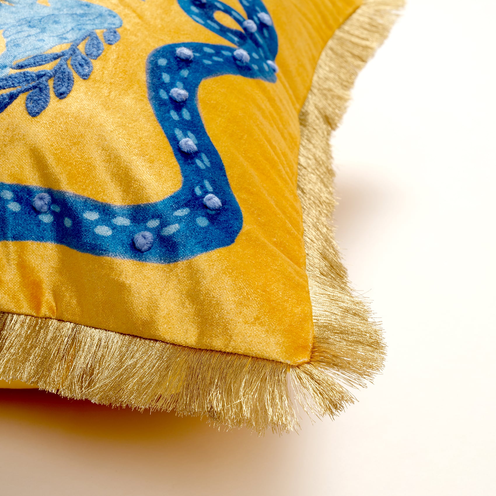 Ghunı Püsküllü Nakışlı Viskon Pamuk Kadife Dolgulu Kırlent 50x50 Cm Sarı