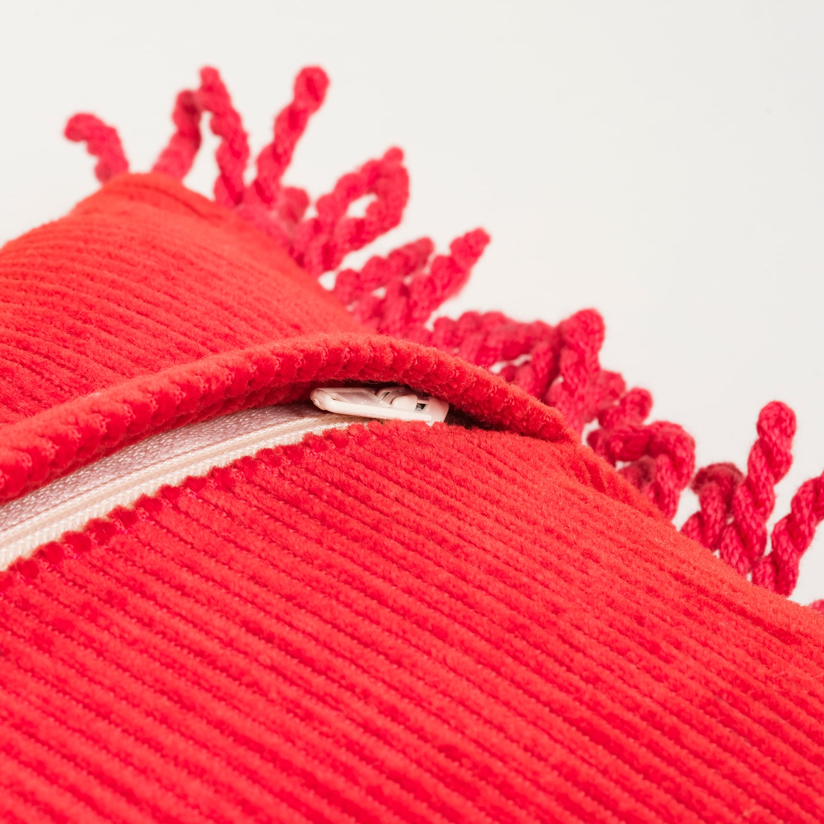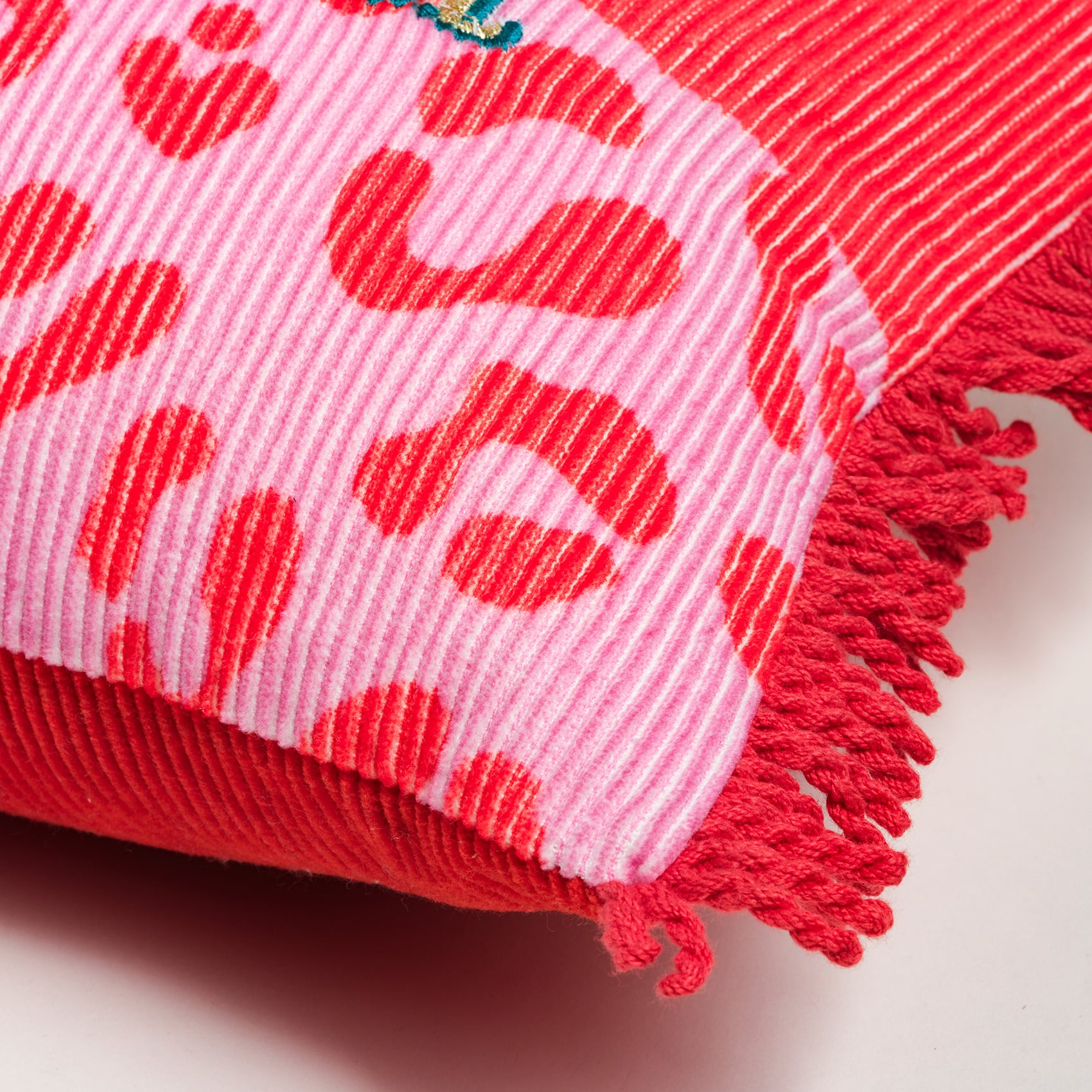Ghunı Saçaklı Nakışlı Pamuk Dolgulu Kırlent 25x50 Cm Kırmızı - Pembe